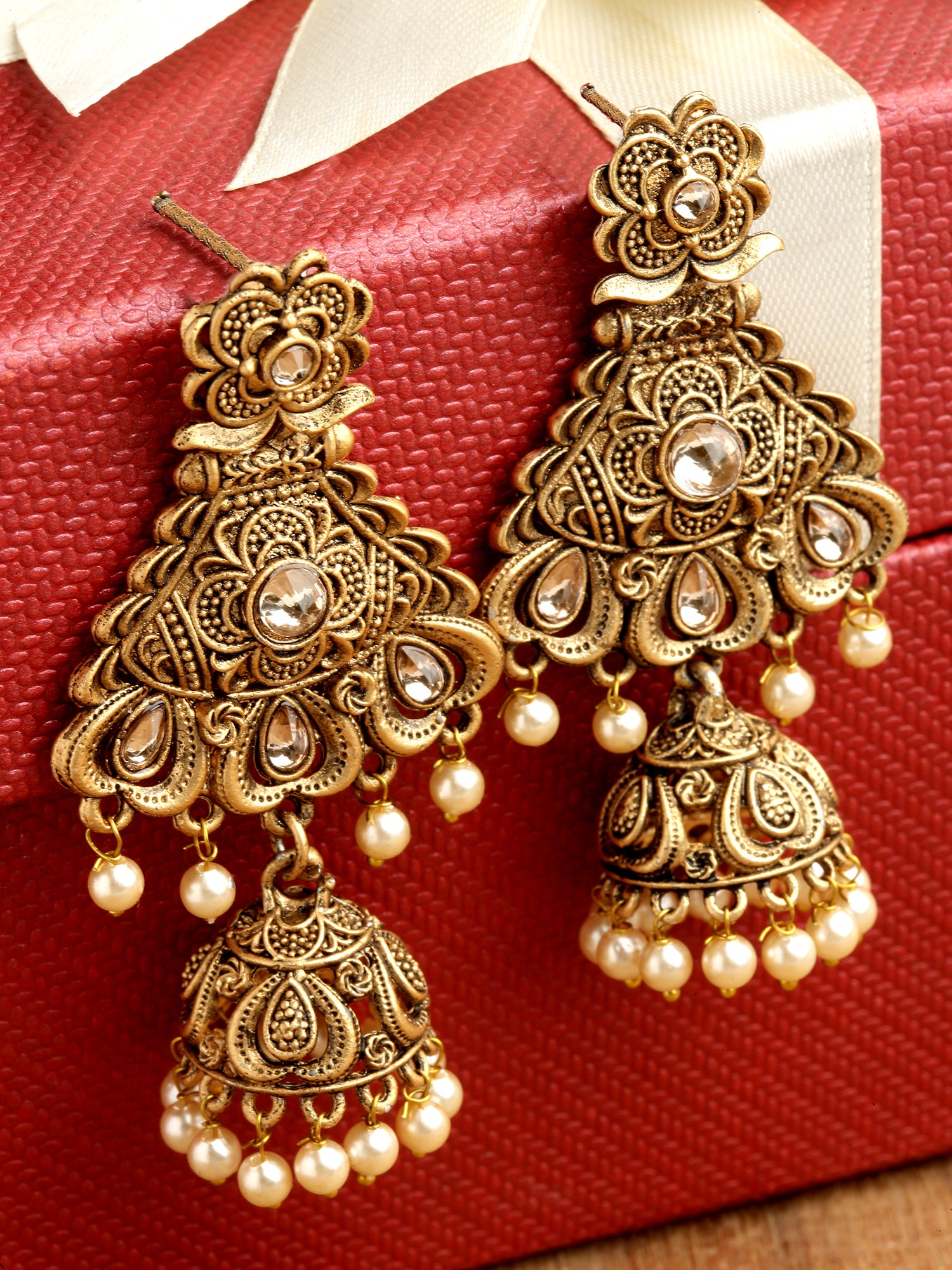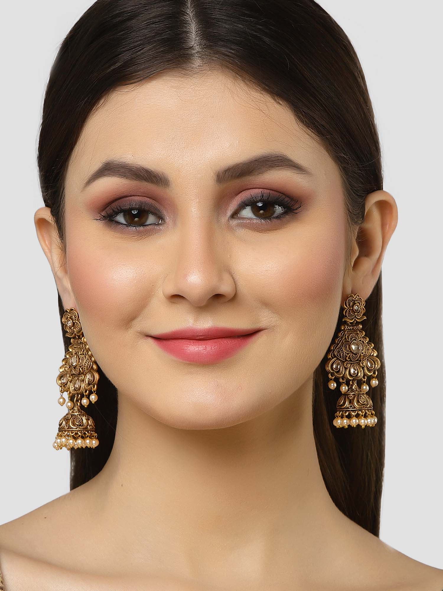 Karatcart Gold Plated Kundan Studded Dangler Jhumki Earrings for Women