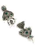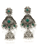 Karatcart Oxidised Silver Green Stone Studded Dangler Jhumki Earrings for Women