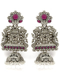 Karatcart Oxidised Silver Peacock Red Stone Studded Dangler Jhumki Earrings for Women
