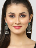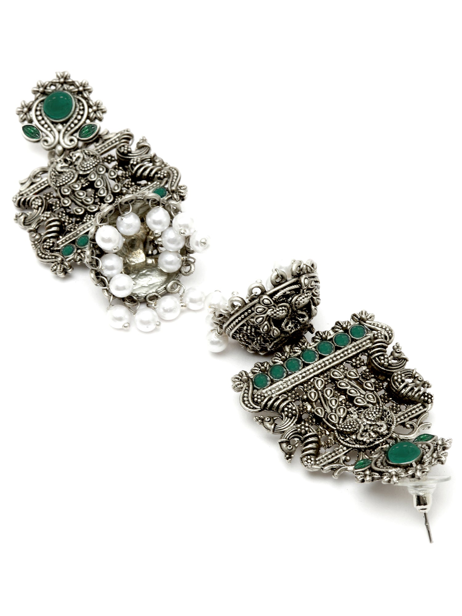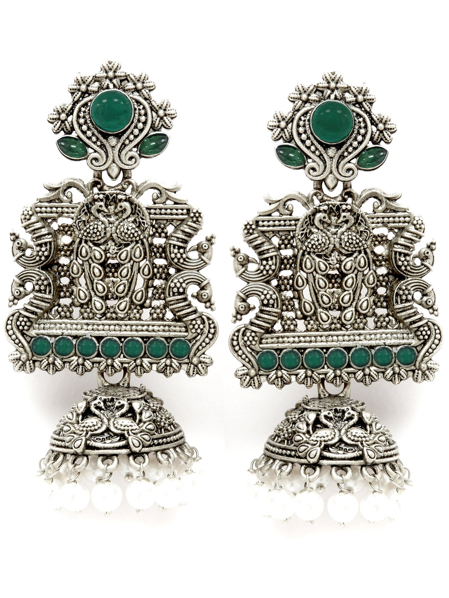 Karatcart Oxidised Silver Peacock Green Stone Studded Dangler Jhumki Earrings for Women