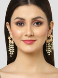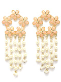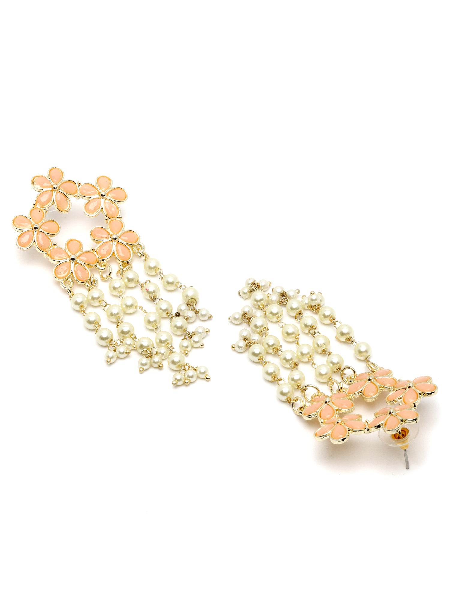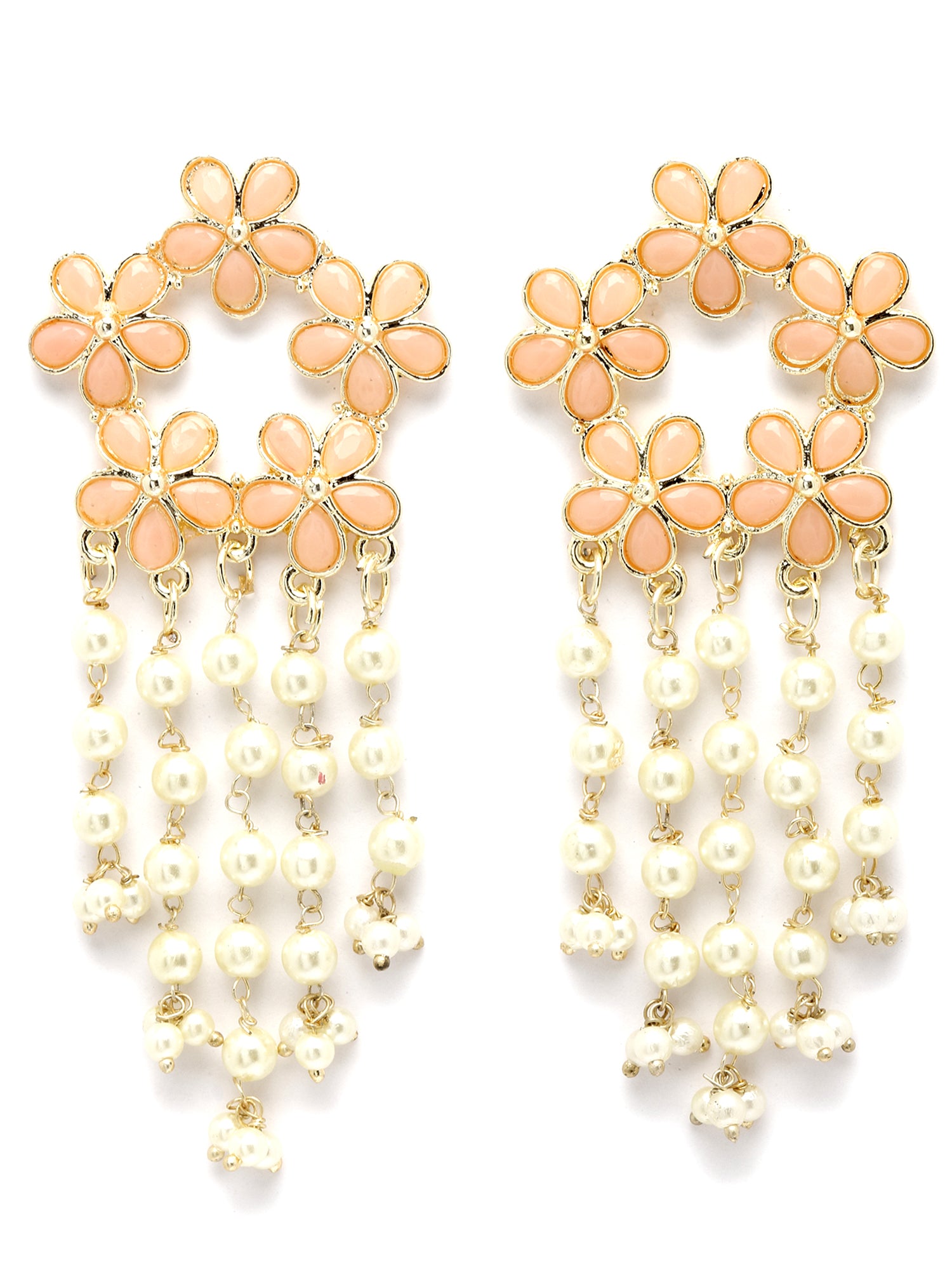 Karatcart Gold Plated Floral Design Peach Kundan Pearl Tassel Earrings for Women