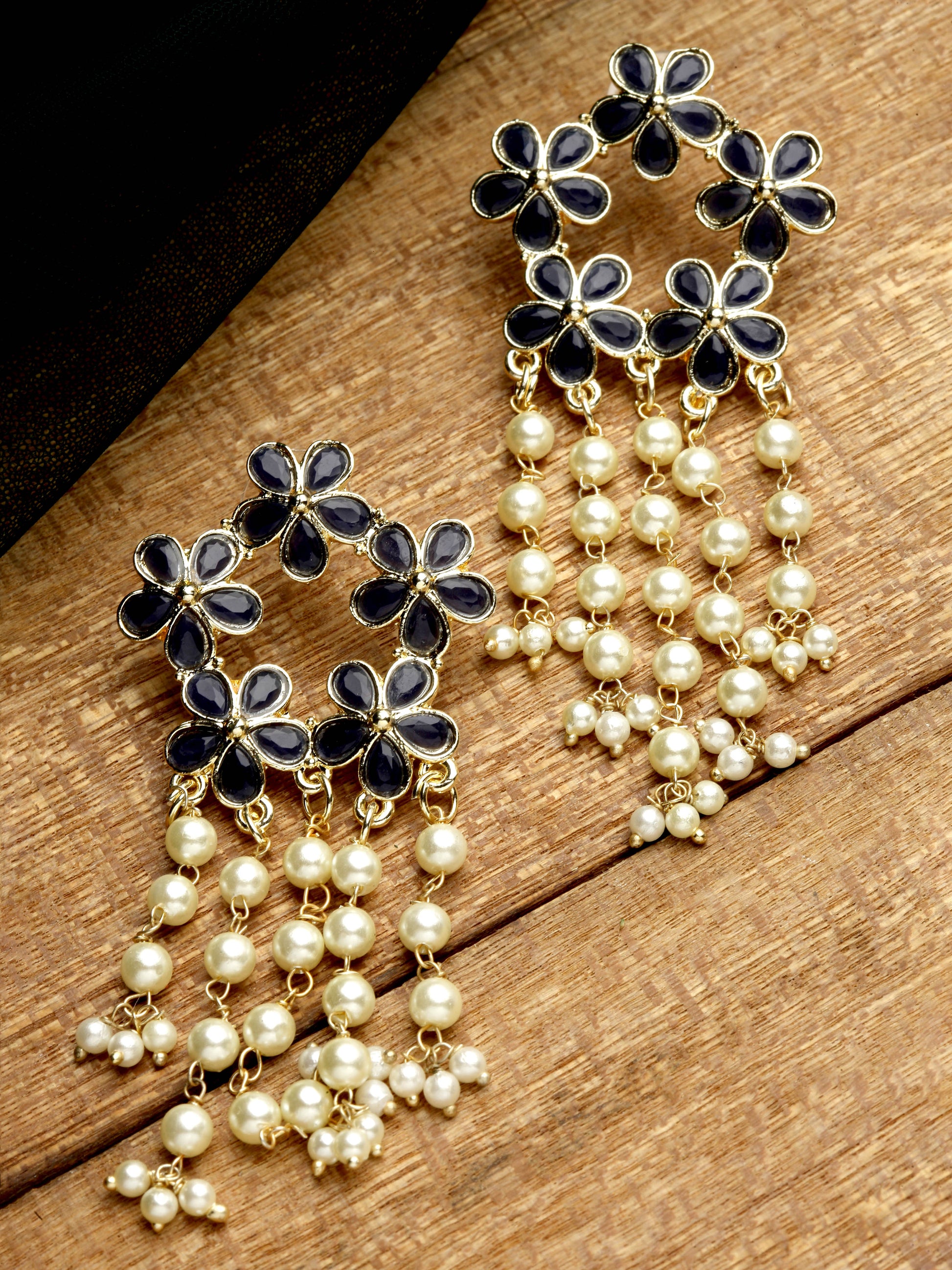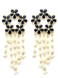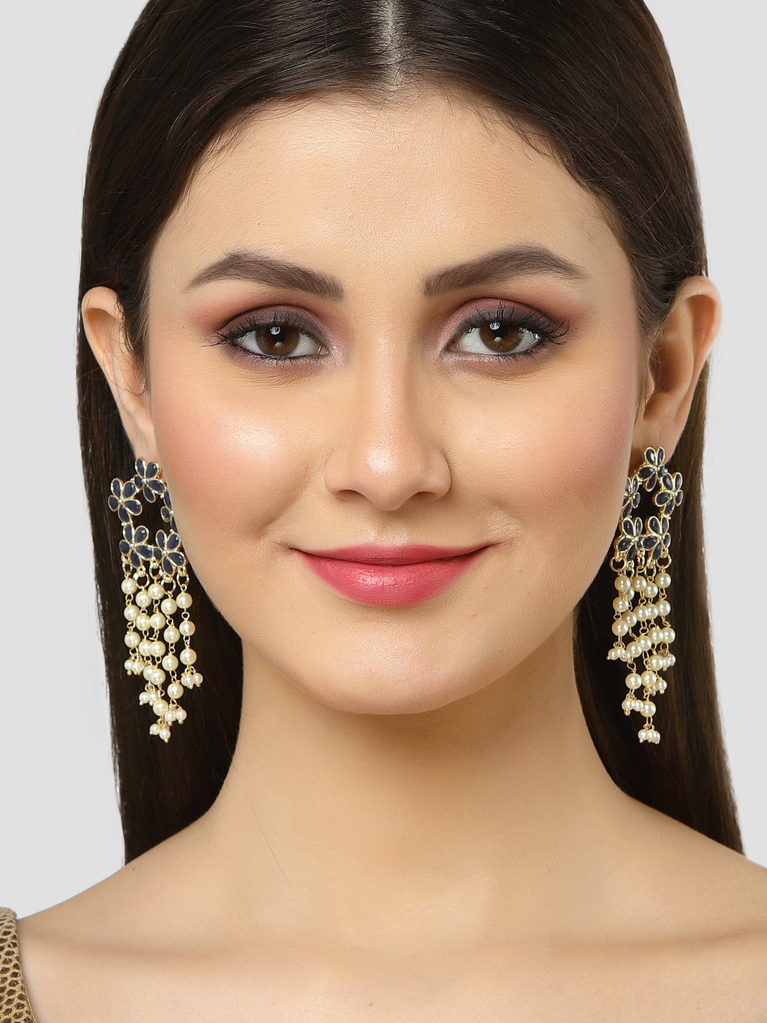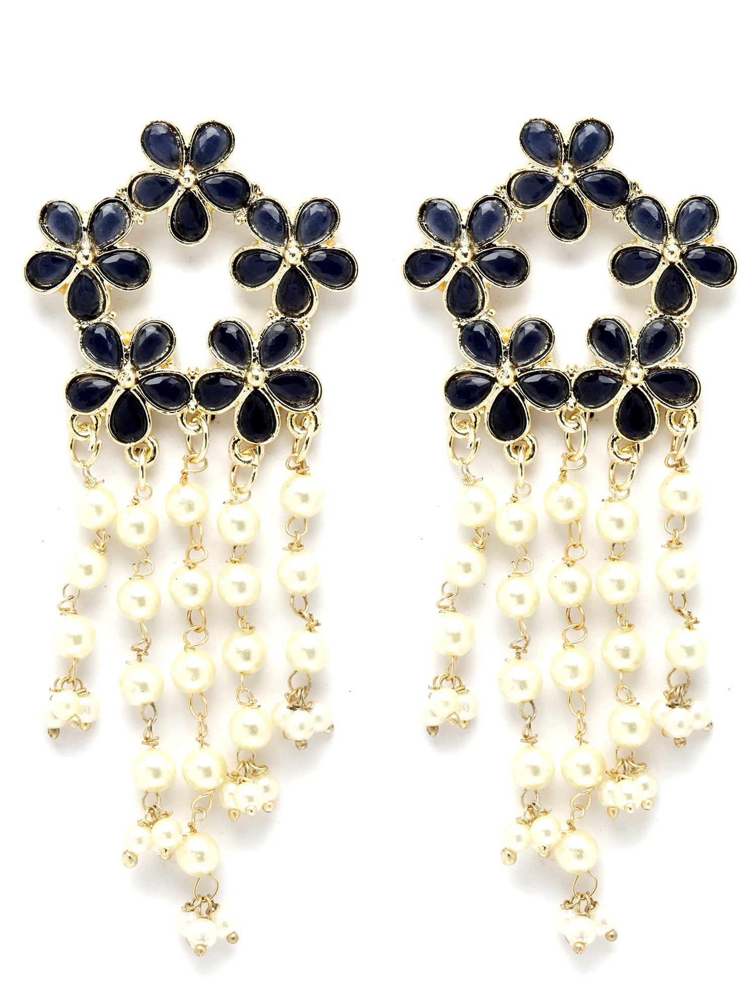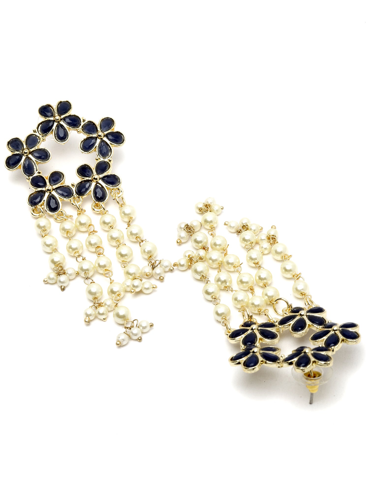 Karatcart Gold Plated Floral Design Blue Kundan Pearl Tassel Earrings for Women