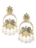 Karatcart Gold Plated Pearl Studded Grey Meena Dangler Earrings for Women