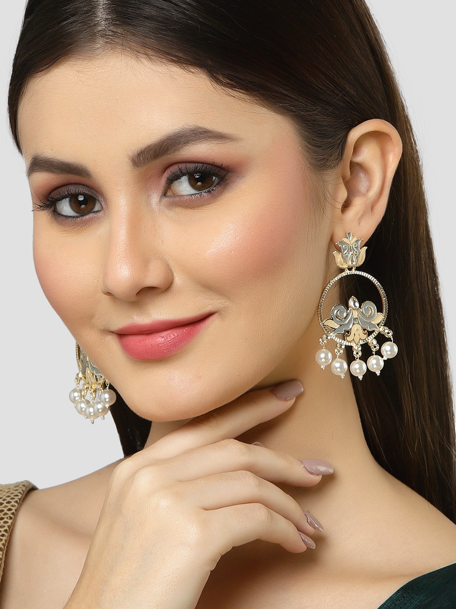 - This is a Grey Earrings by Brand Karatcart which has Enamel stones.This is Gold Plated. We at KARATCART understand your desire to look the best on any day & we thrive in making any day an occasion. Every individual at Karatcart carries a passion for jewellery and it reflects in our beautiful designs as well as in our breathtaking craftsmanship. We create unique jewellery so you can make heads turn..
