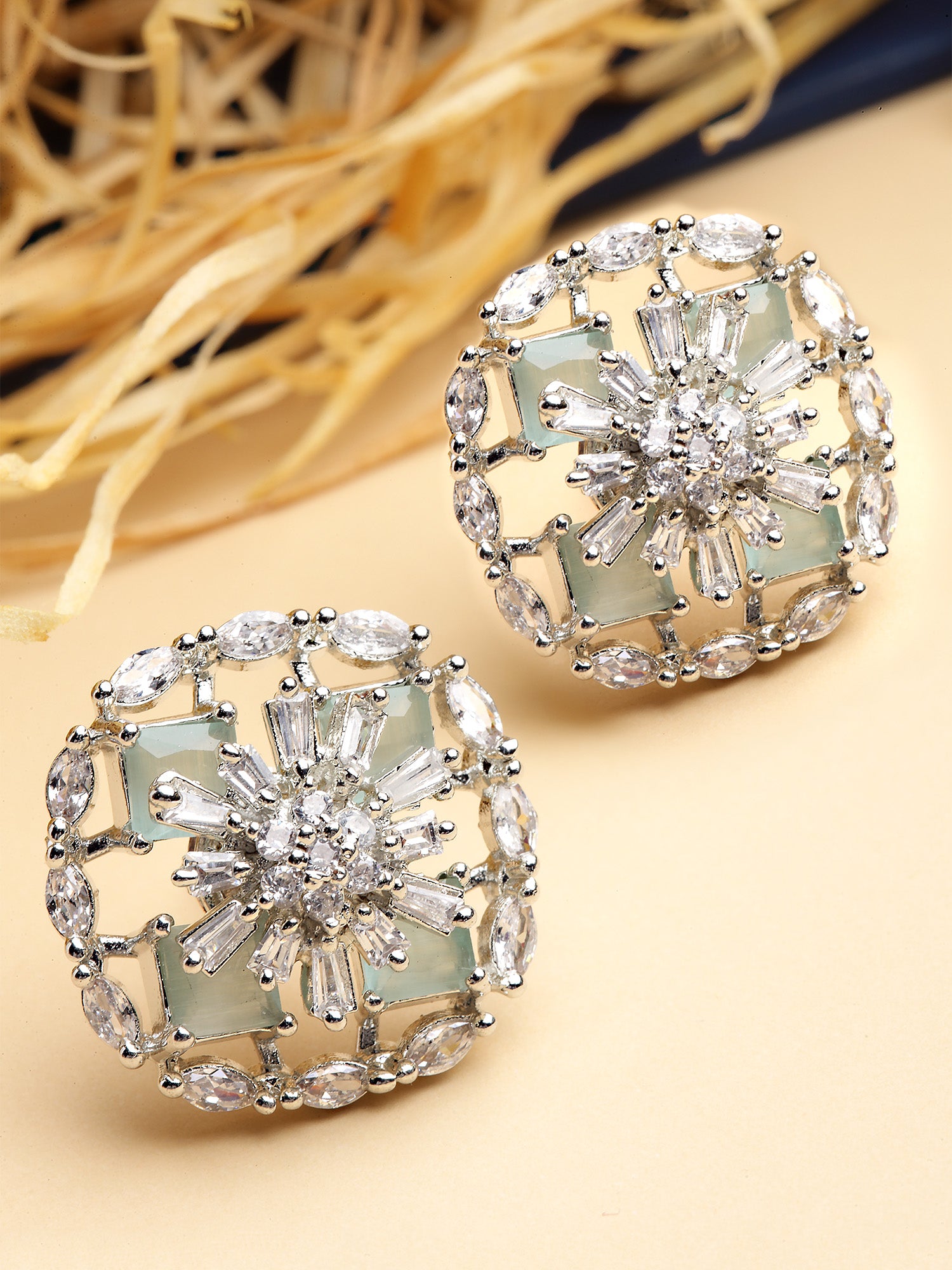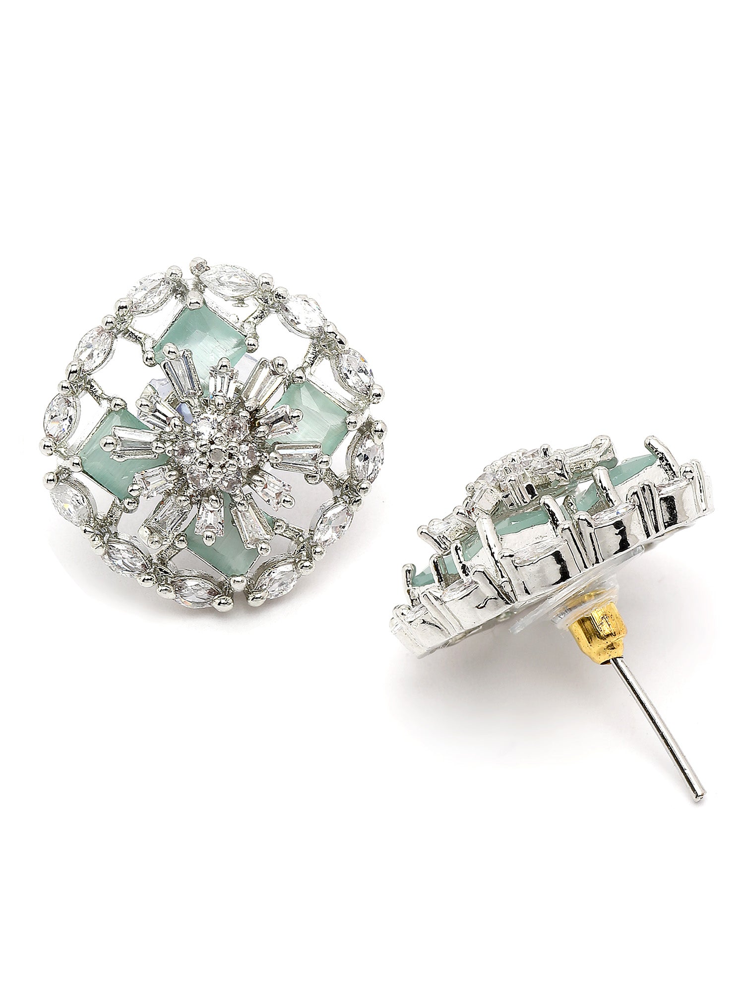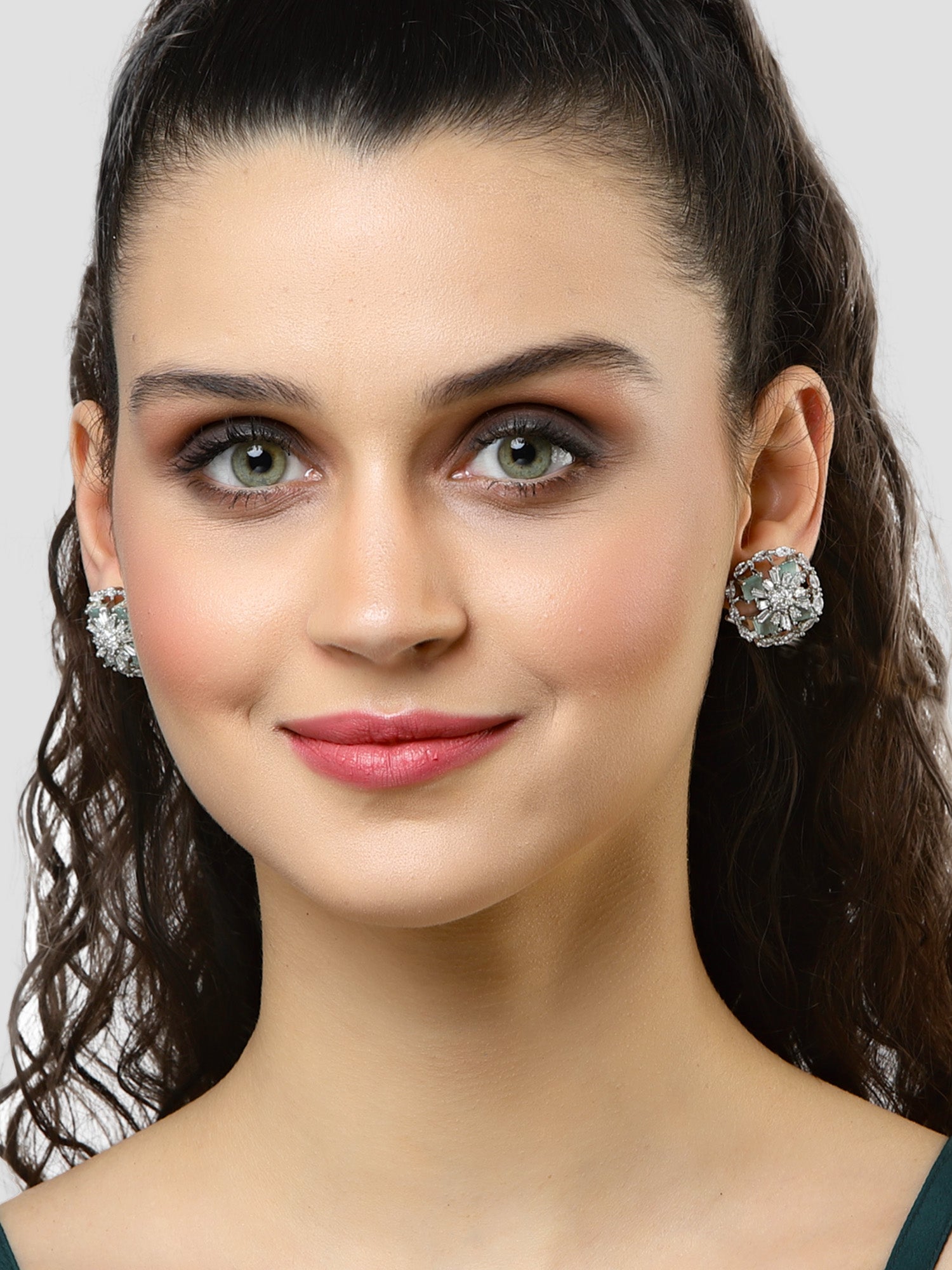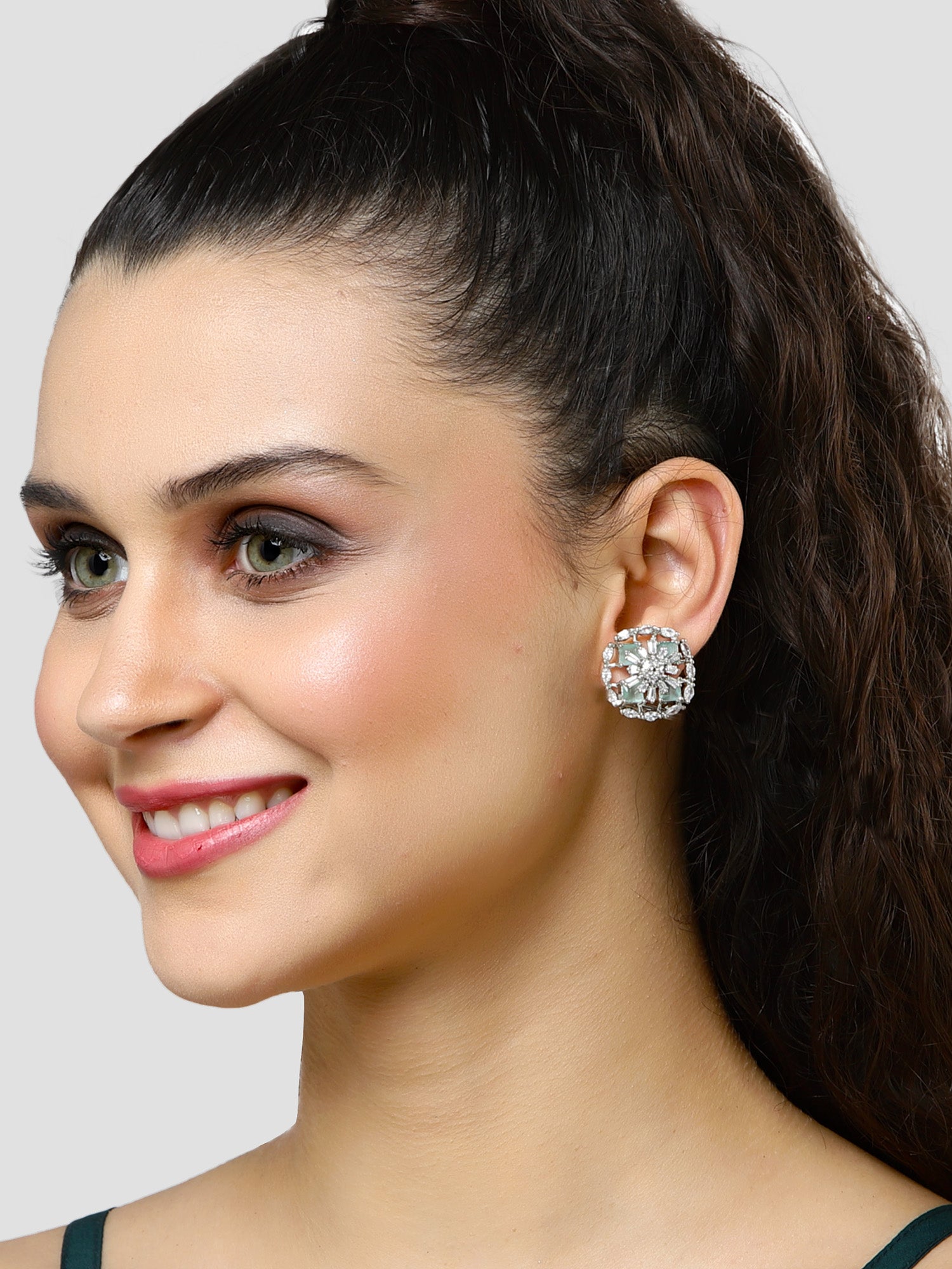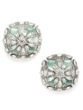 Karatcart Silver Tone Lime Green Cubic Zirconia Stud Earrings for Women