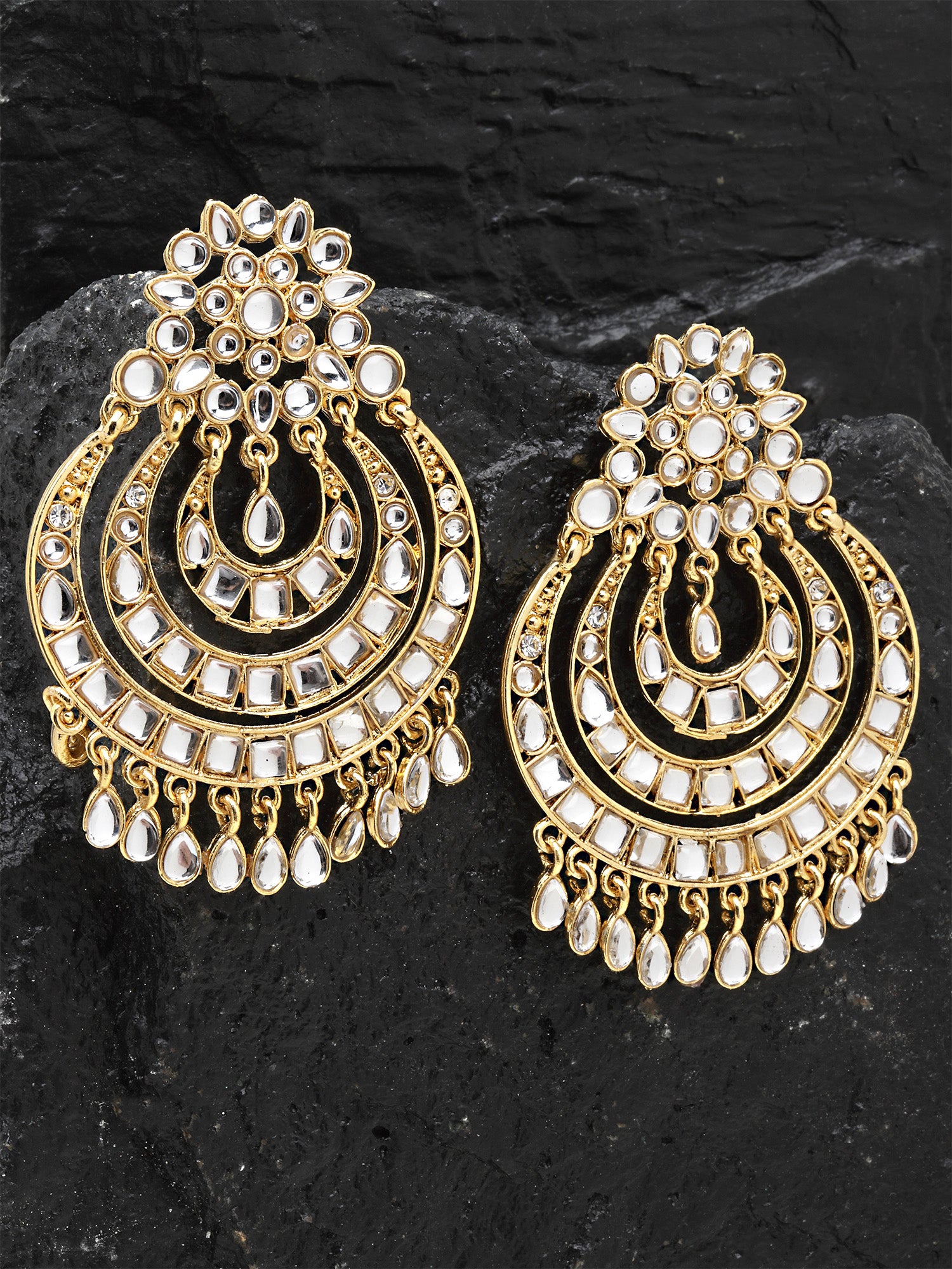 - This is a Gold Earrings by Brand Karatcart which has Mirror stones.This is Gold Plated. We at KARATCART understand your desire to look the best on any day & we thrive in making any day an occasion. Every individual at Karatcart carries a passion for jewellery and it reflects in our beautiful designs as well as in our breathtaking craftsmanship. We create unique jewellery so you can make heads turn..