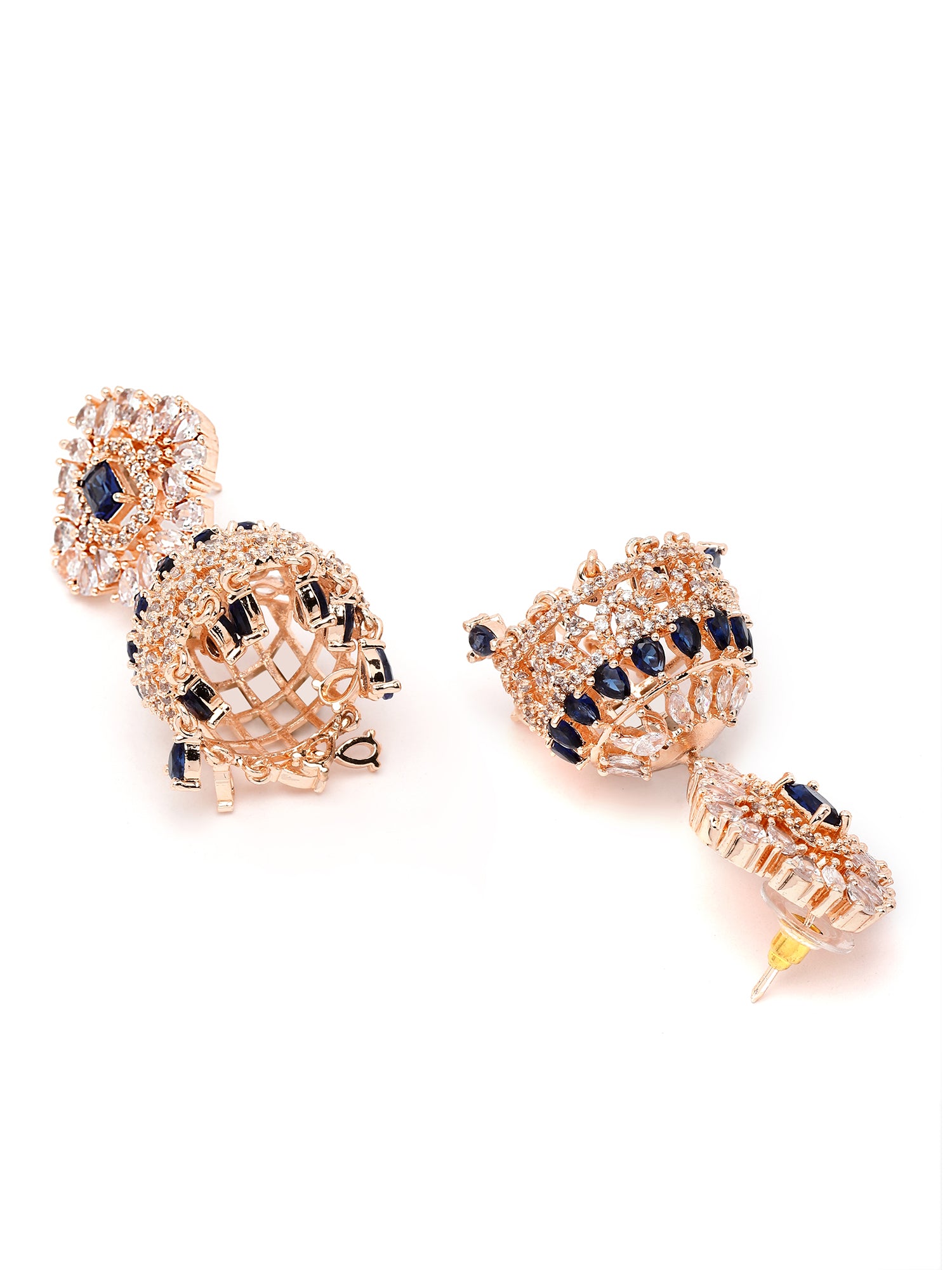 - This is a Blue Earrings by Brand Karatcart which has American Diamond stones.This is Rose Gold Plated. We at KARATCART understand your desire to look the best on any day & we thrive in making any day an occasion. Every individual at Karatcart carries a passion for jewellery and it reflects in our beautiful designs as well as in our breathtaking craftsmanship. We create unique jewellery so you can make heads turn..