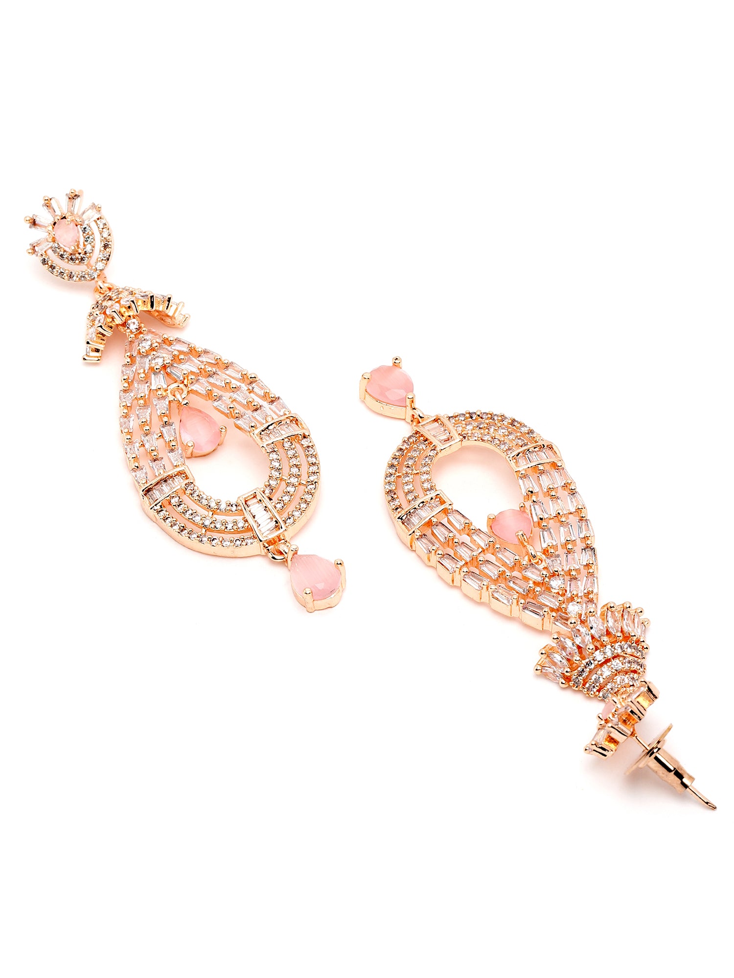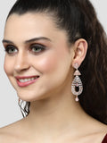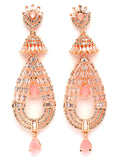 Karatcart Rose Gold Plated White Cubic Zirconia Studded Drop Shape Dangler Earrings for Women