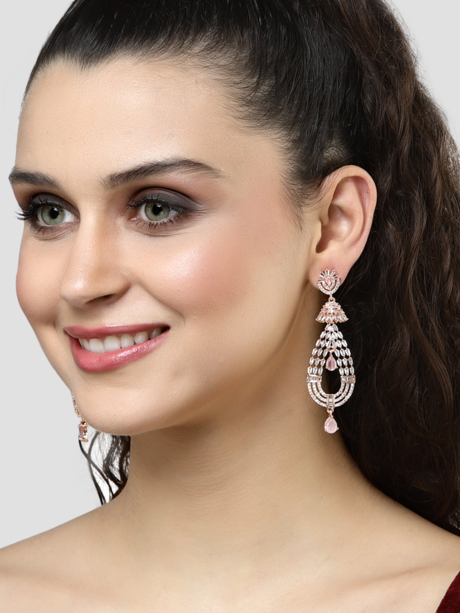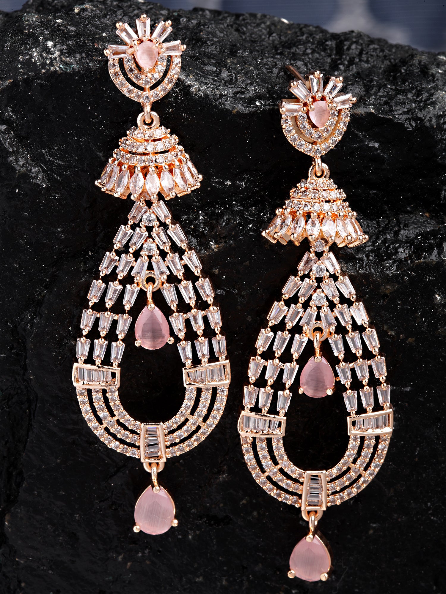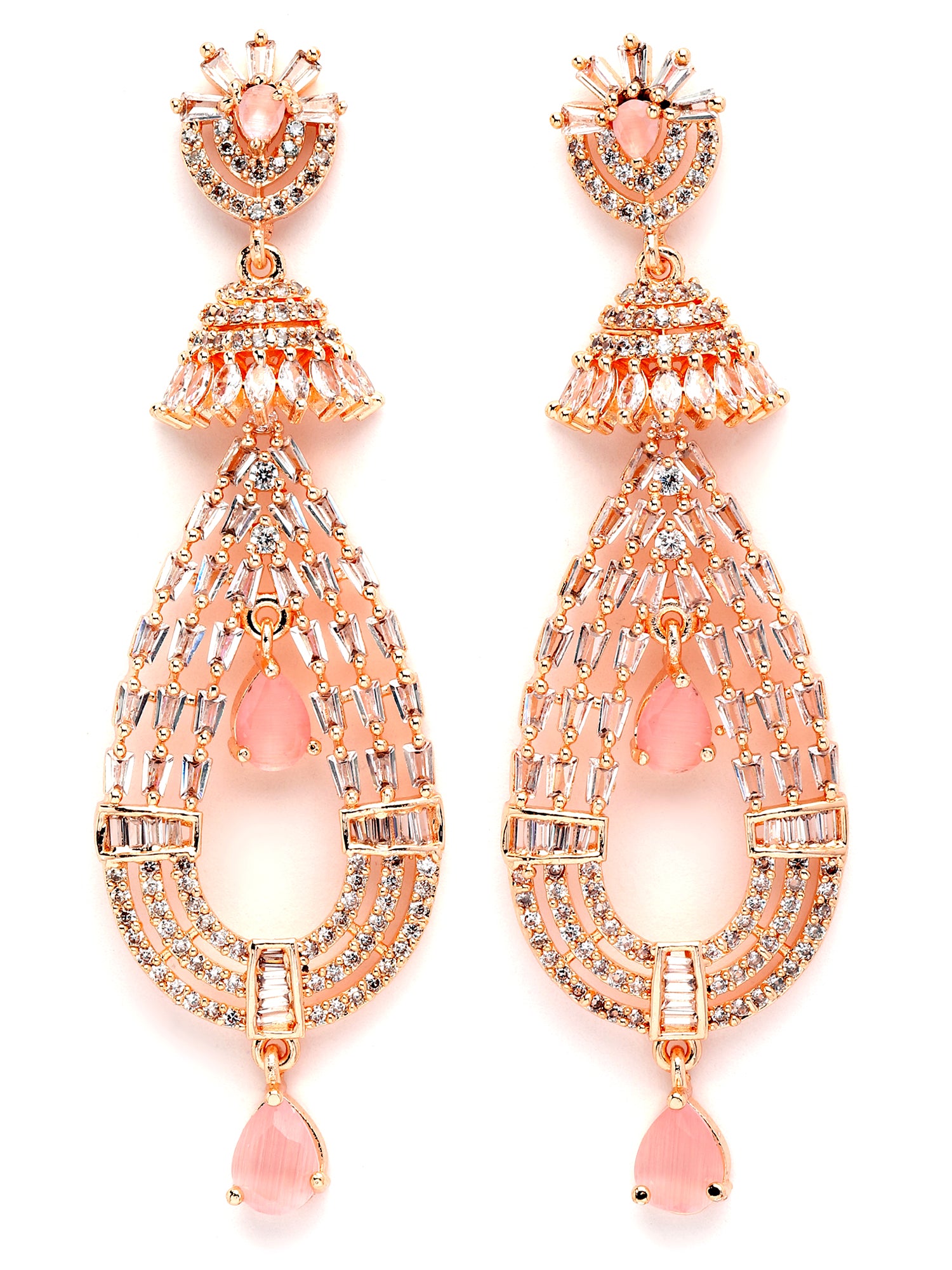 - This is a Rose Gold Earrings by Brand Karatcart which has American Diamond stones.This is Rose Gold Plated. We at KARATCART understand your desire to look the best on any day & we thrive in making any day an occasion. Every individual at Karatcart carries a passion for jewellery and it reflects in our beautiful designs as well as in our breathtaking craftsmanship. We create unique jewellery so you can make heads turn..