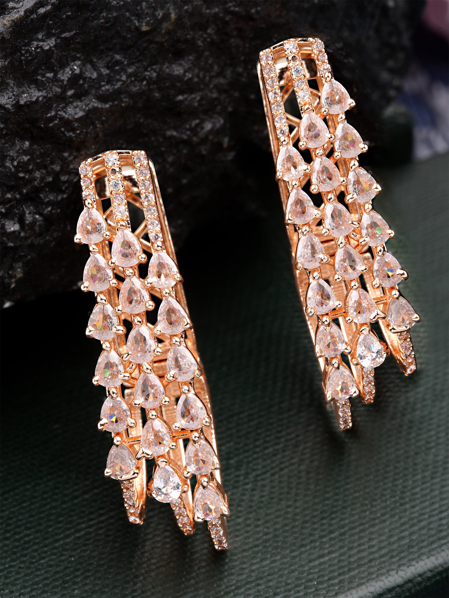 - This is a Rose Gold Earrings by Brand Karatcart which has American Diamond stones.This is Rose Gold Plated. We at KARATCART understand your desire to look the best on any day & we thrive in making any day an occasion. Every individual at Karatcart carries a passion for jewellery and it reflects in our beautiful designs as well as in our breathtaking craftsmanship. We create unique jewellery so you can make heads turn..