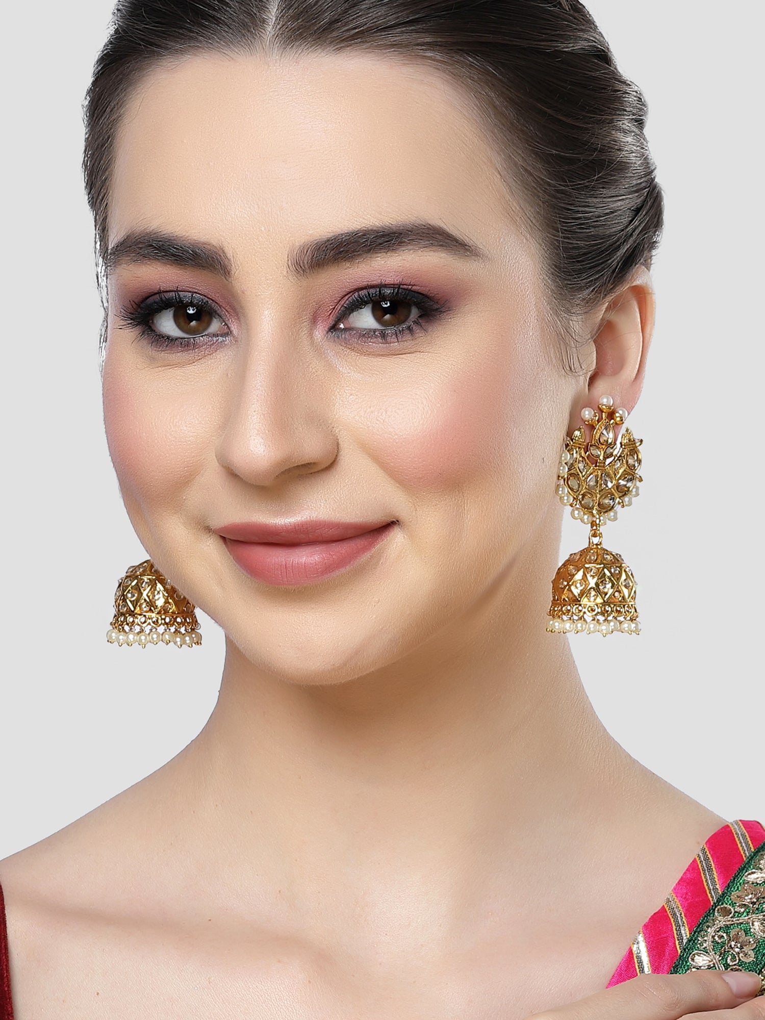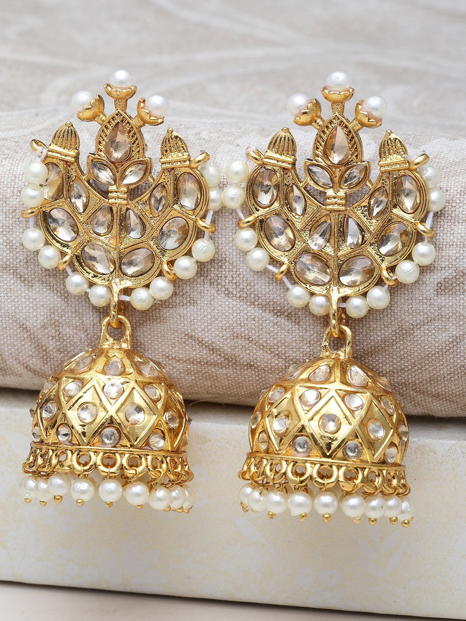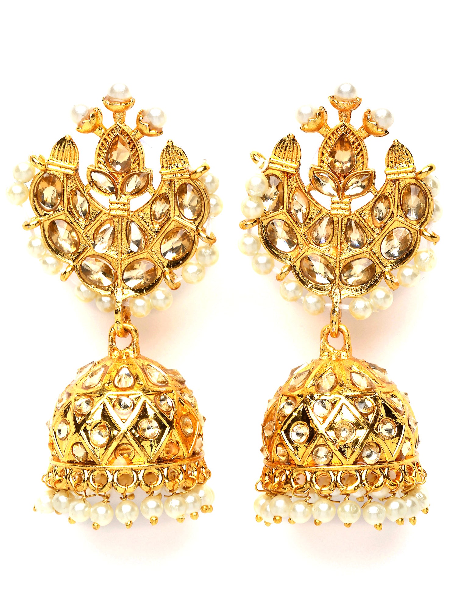 Karatcart Gold Plated Pearl and Kundan Studded Jhumki Earrings for Women
