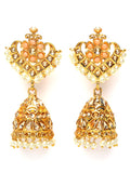 Karatcart Gold Plated Floral Design Peach Kundan Studded Jhumki Earrings for Women