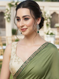 Karatcart Green Stone Studded Black Tone AD Earrings for Women