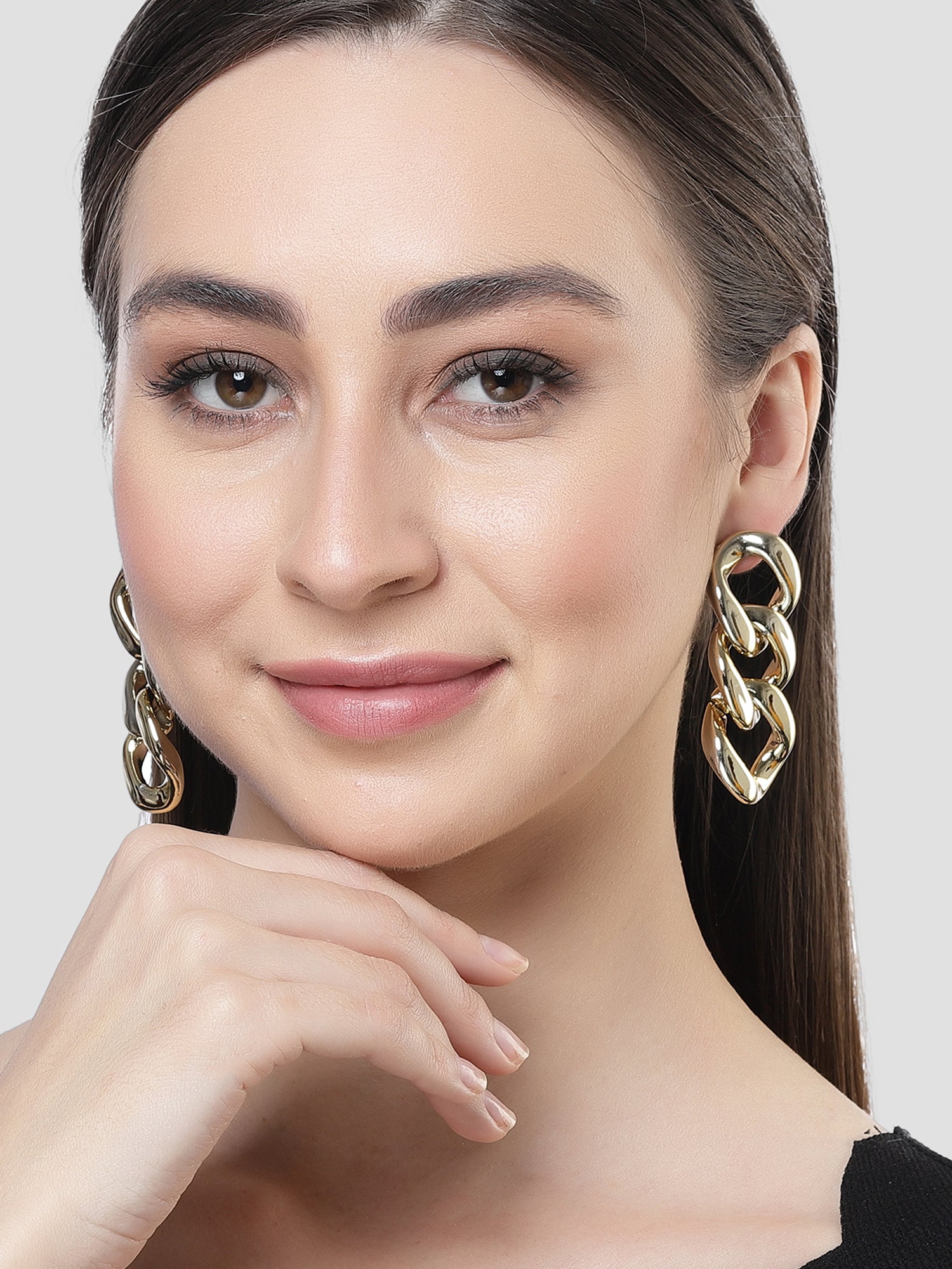 Bohey by KARATCART Gold Plated Chain Design Drop Earrings for Women