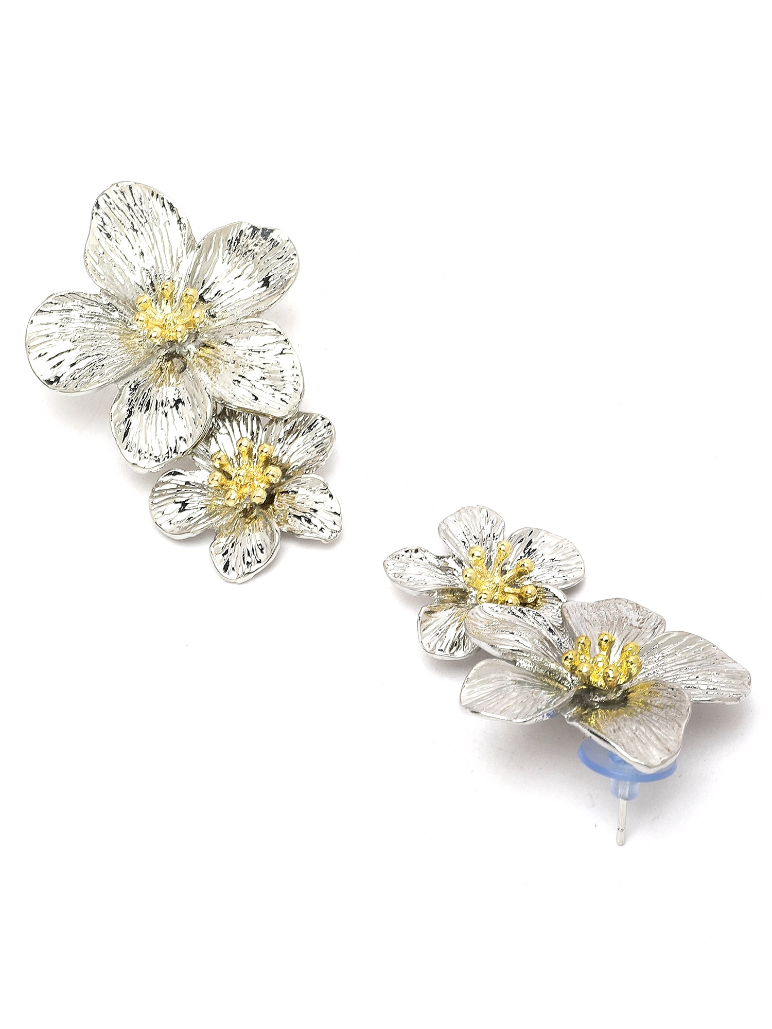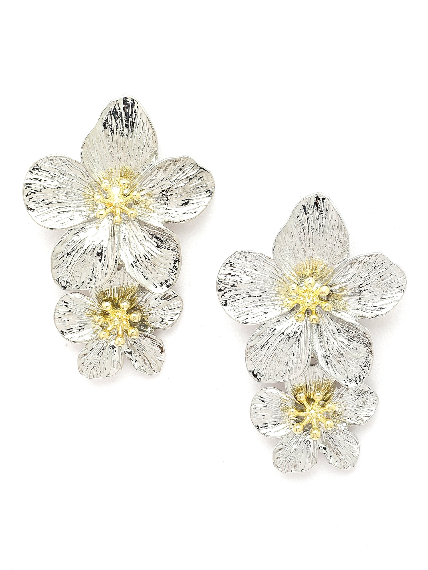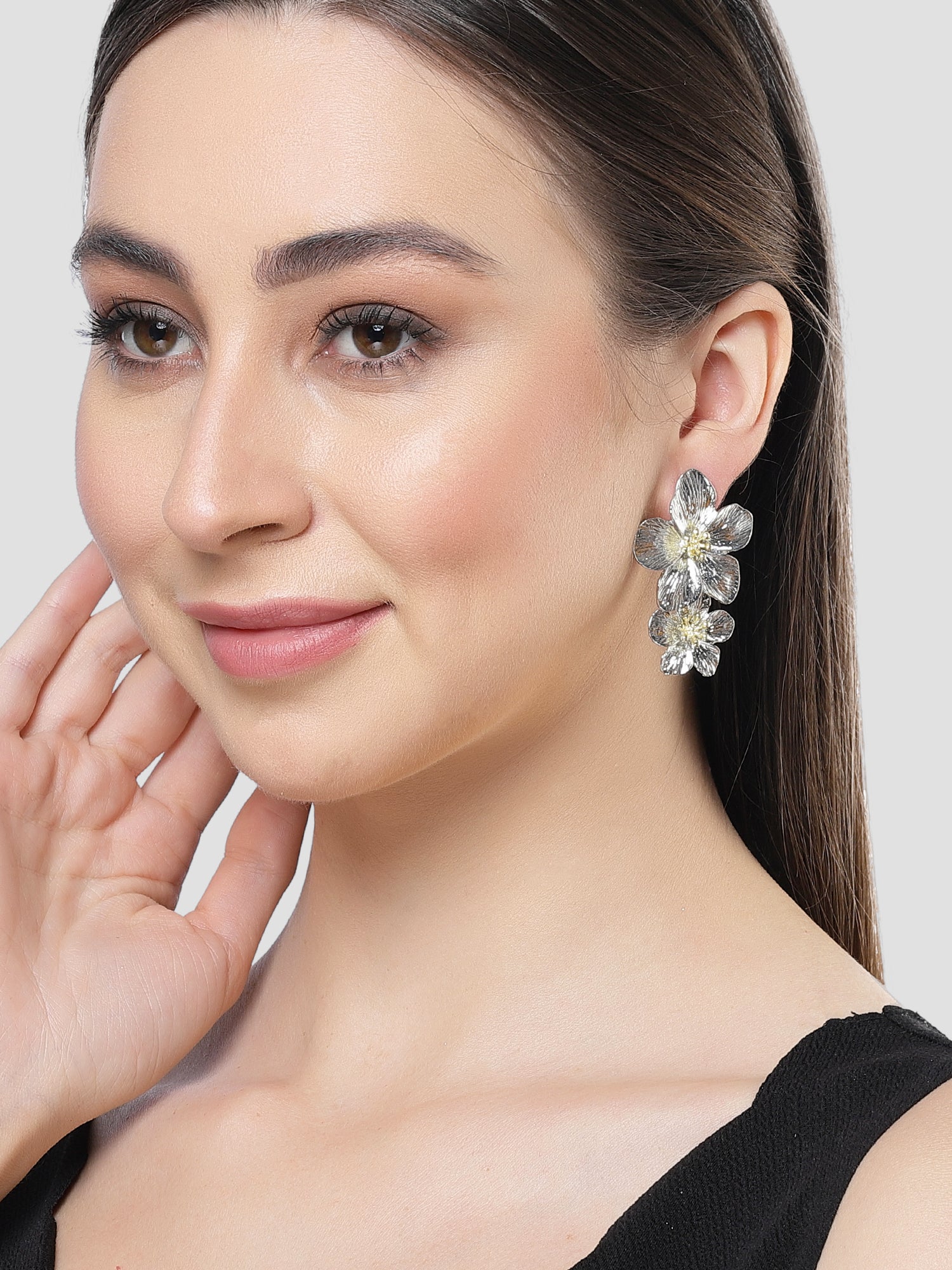 Bohey by KARATCART Dual Tone Floral Design Silver Finish Dangler Earrings for Women