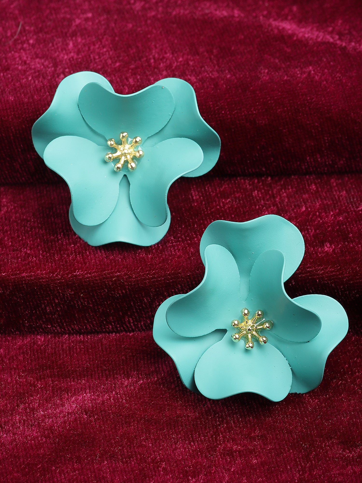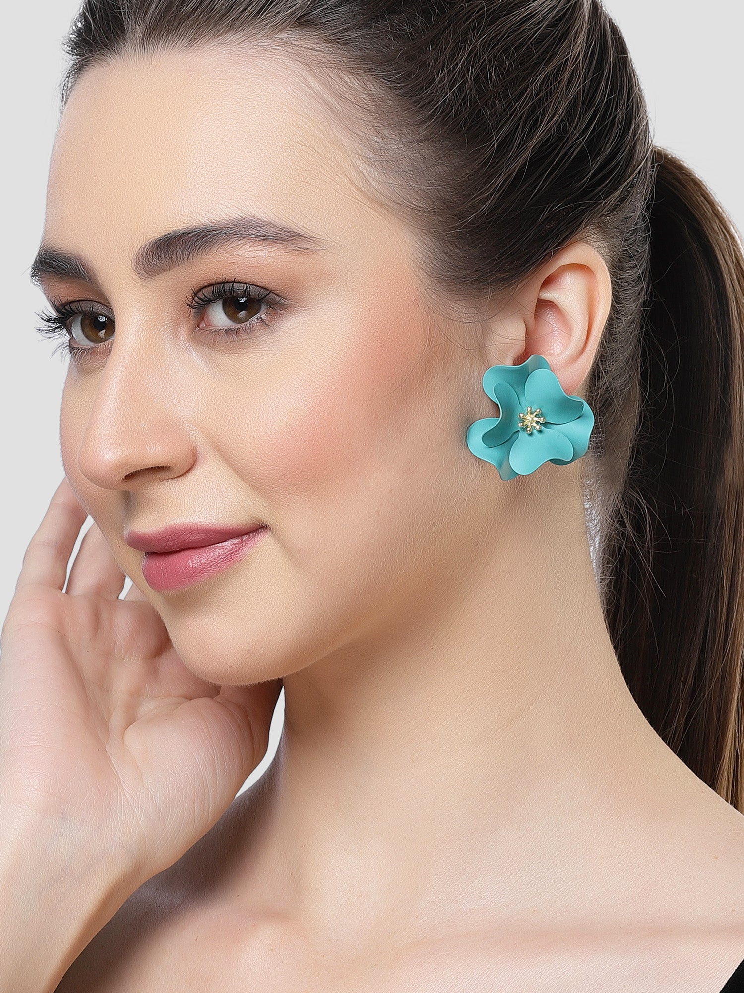 Bohey by KARATCART Light Blue Floral Design Stud Earrings for Women