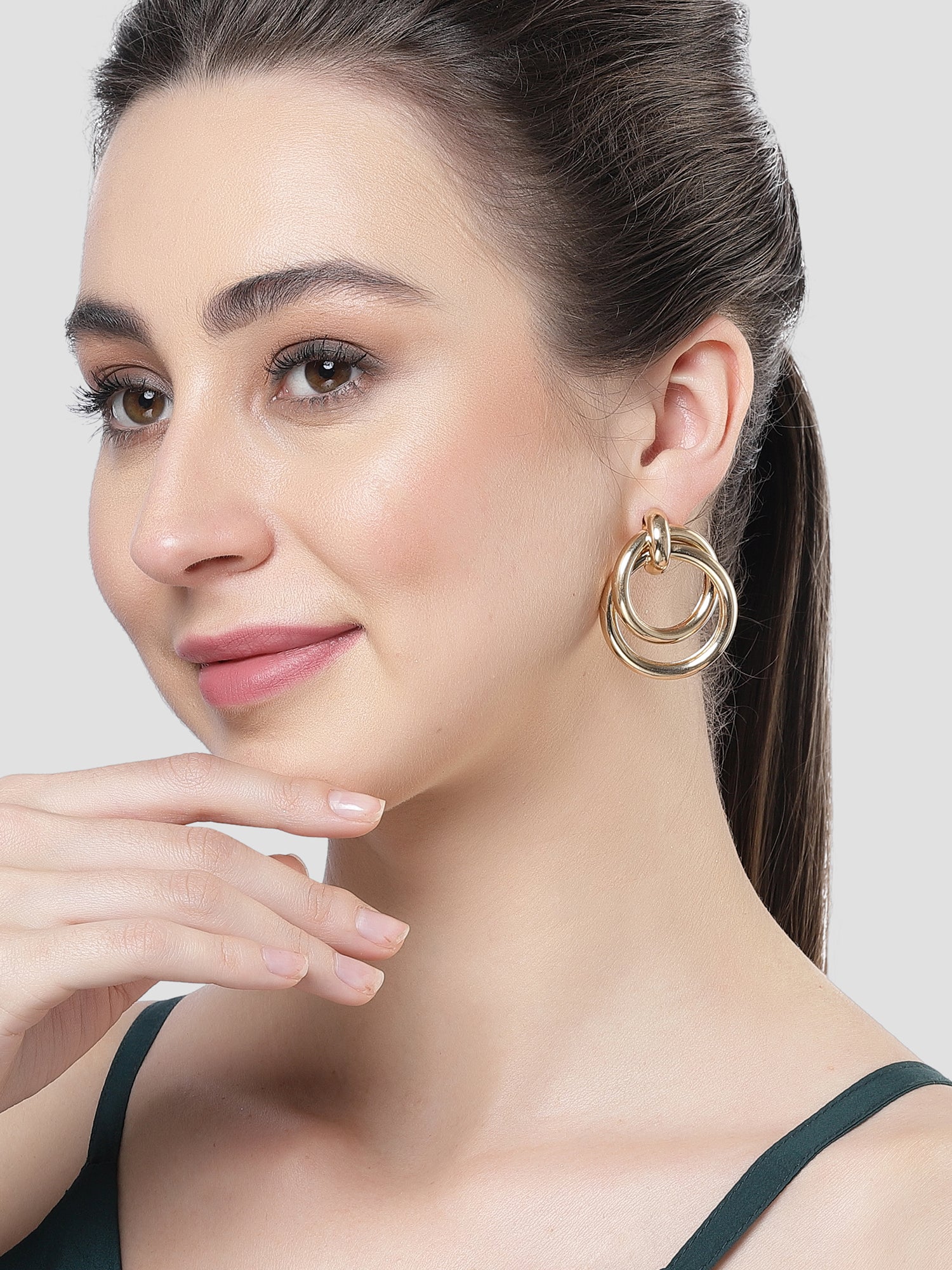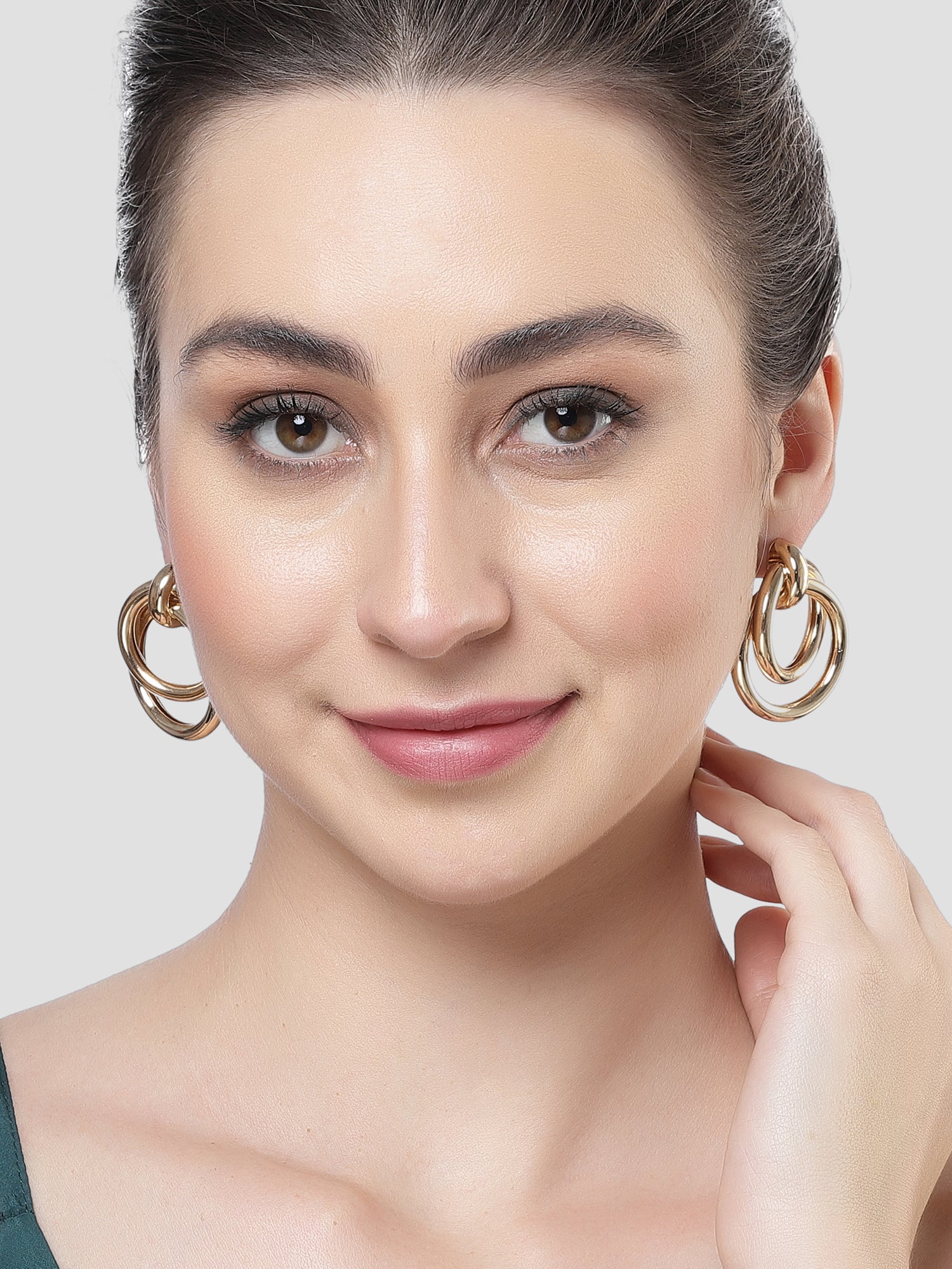 Bohey by KARATCART Gold Plated Large Double Hoop Earrings for Women