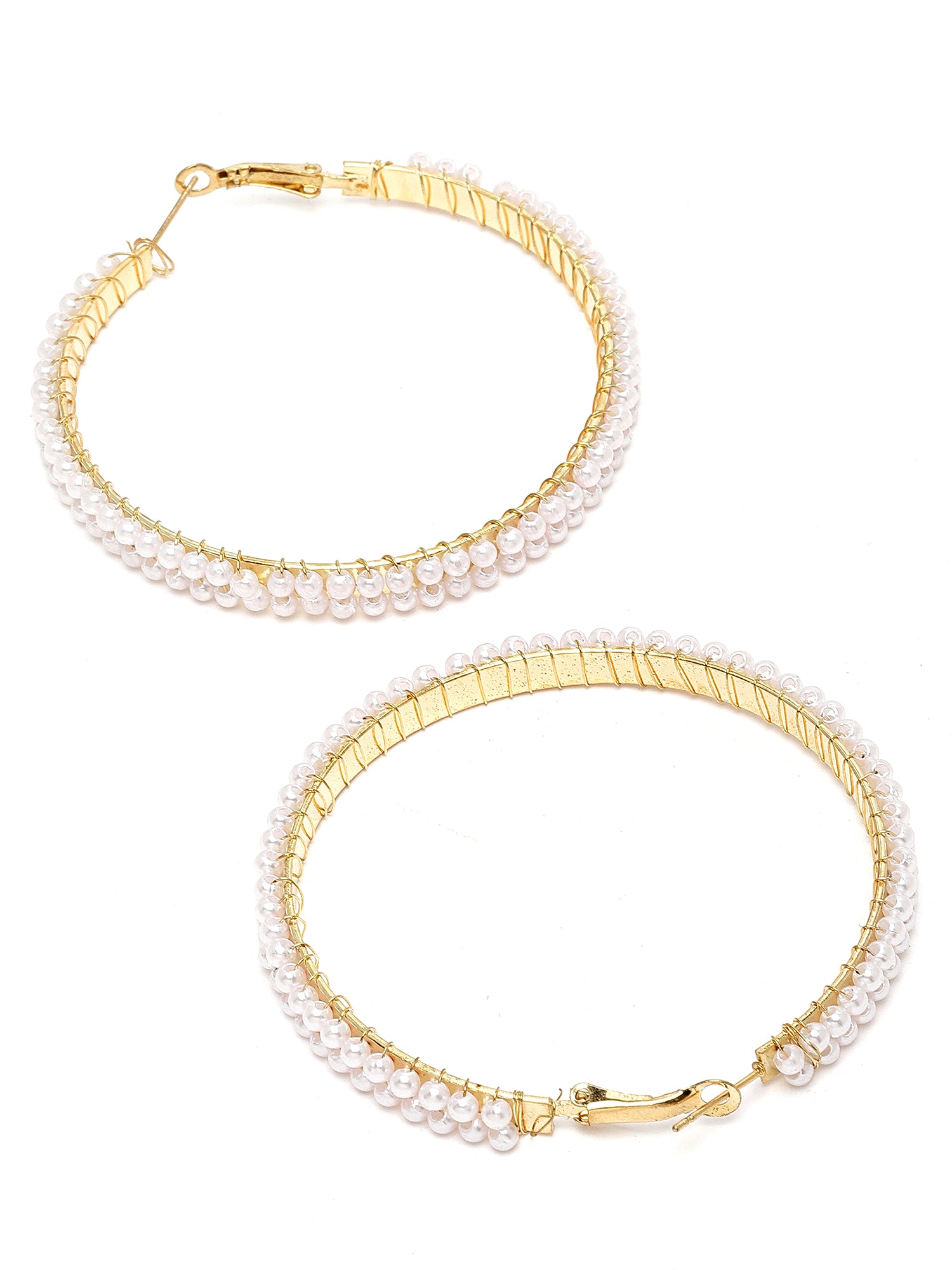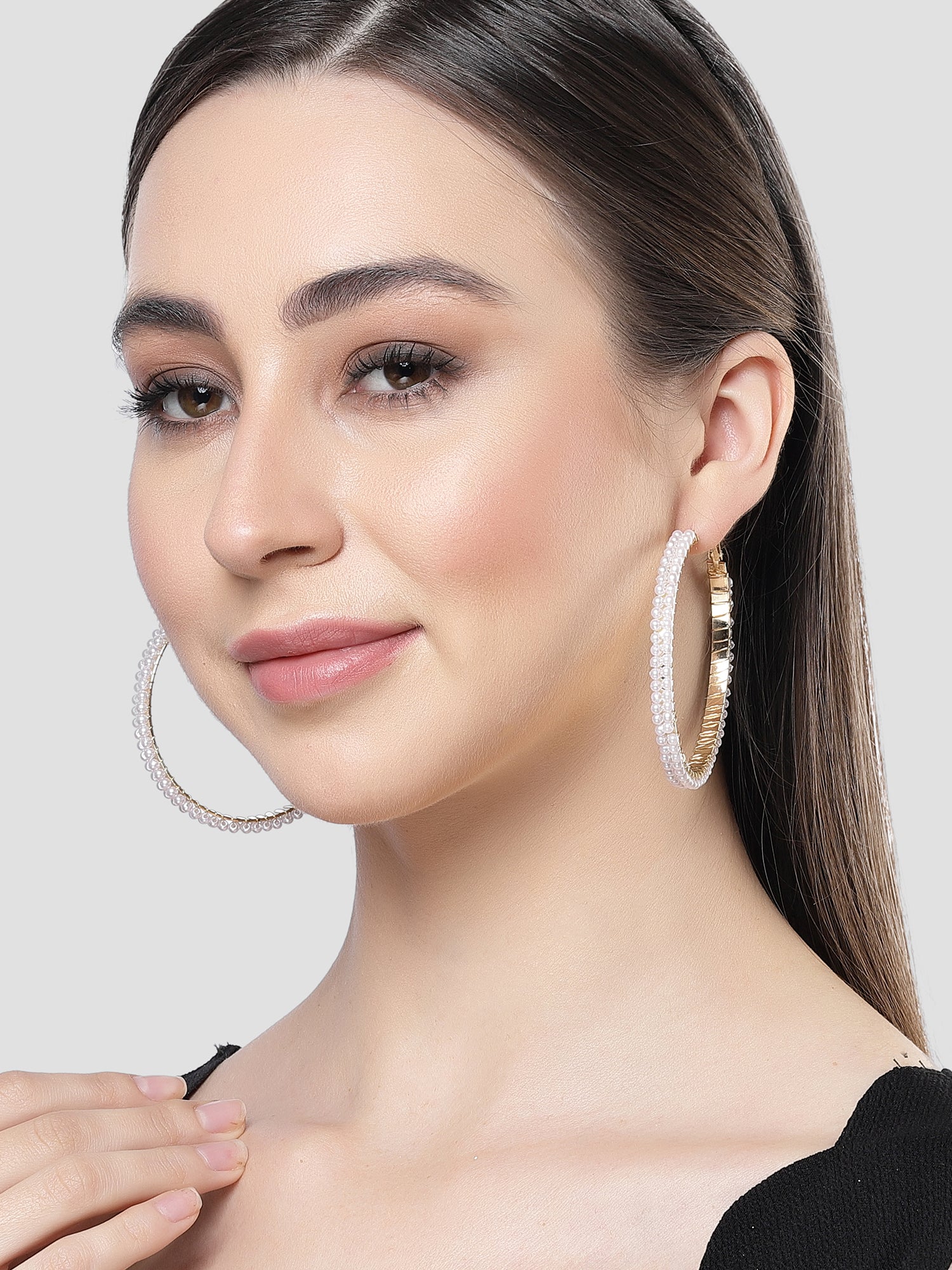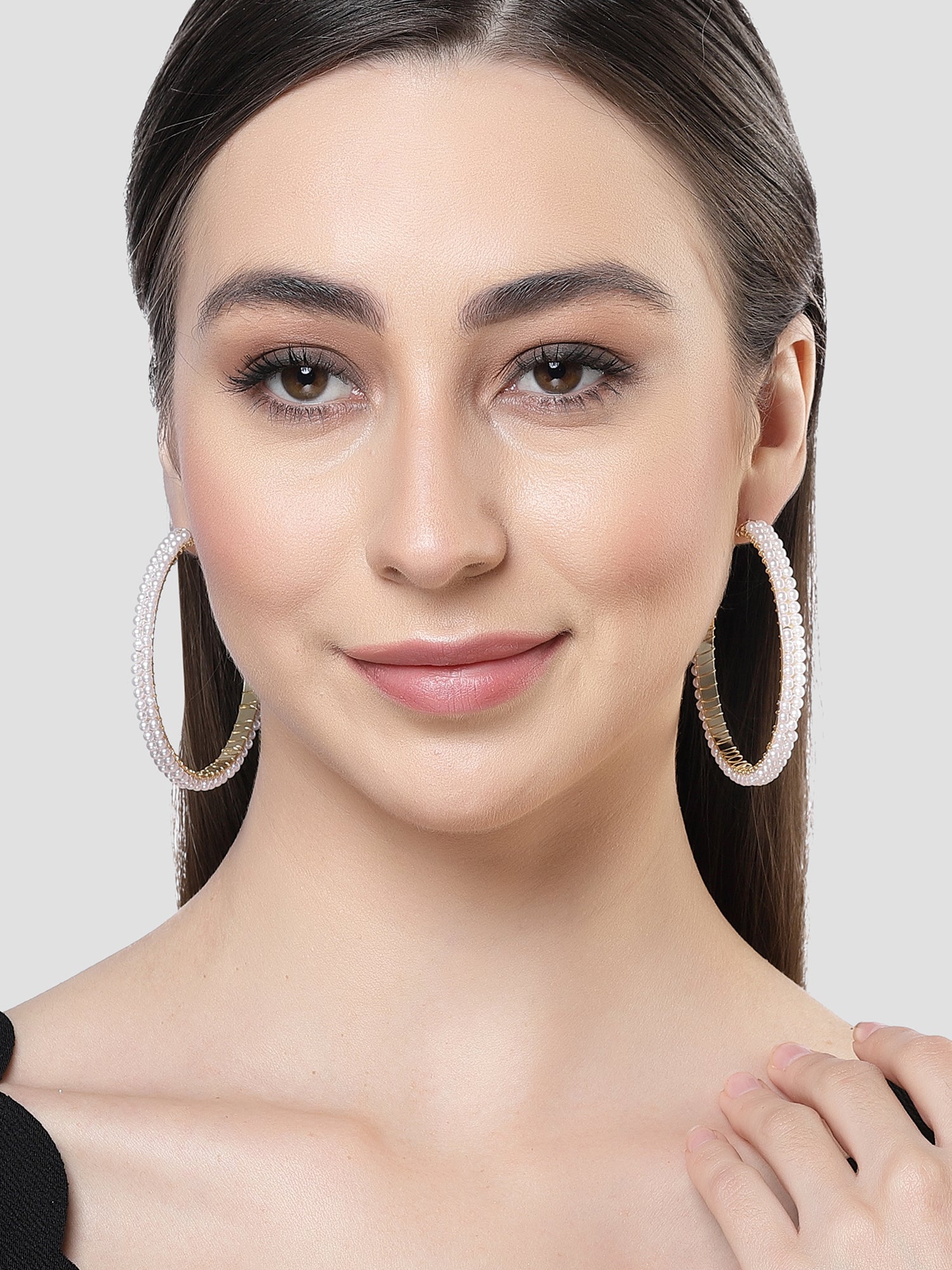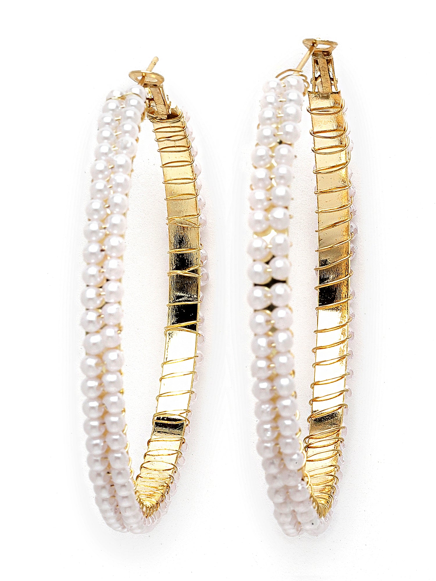Bohey by KARATCART Gold Plated Pearl Hoop Earrings for Women