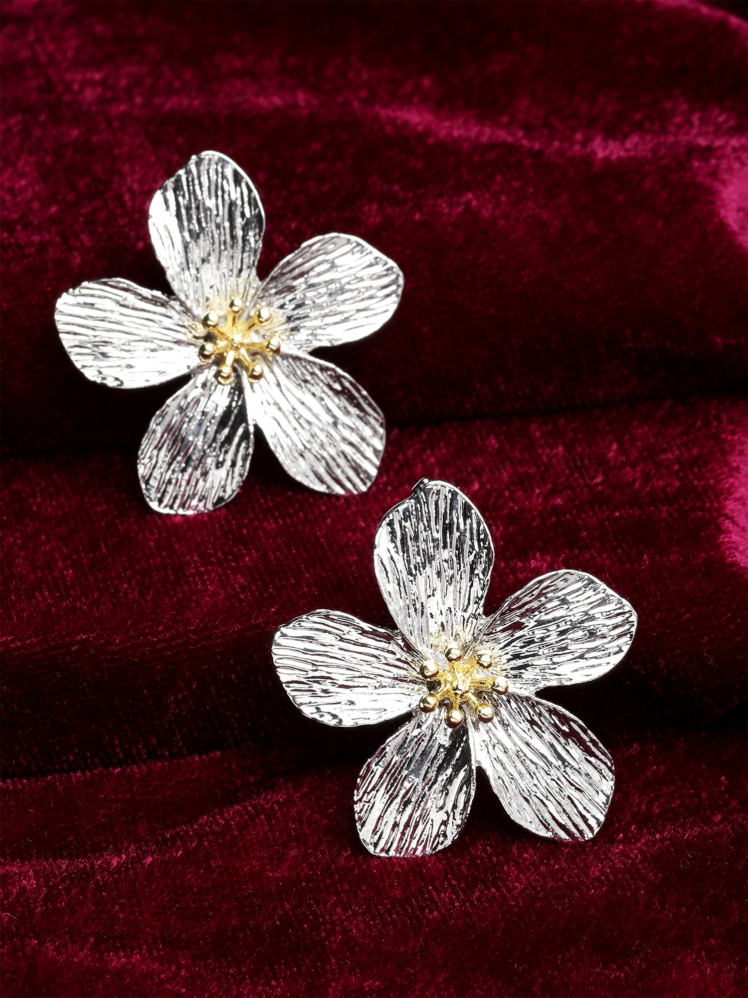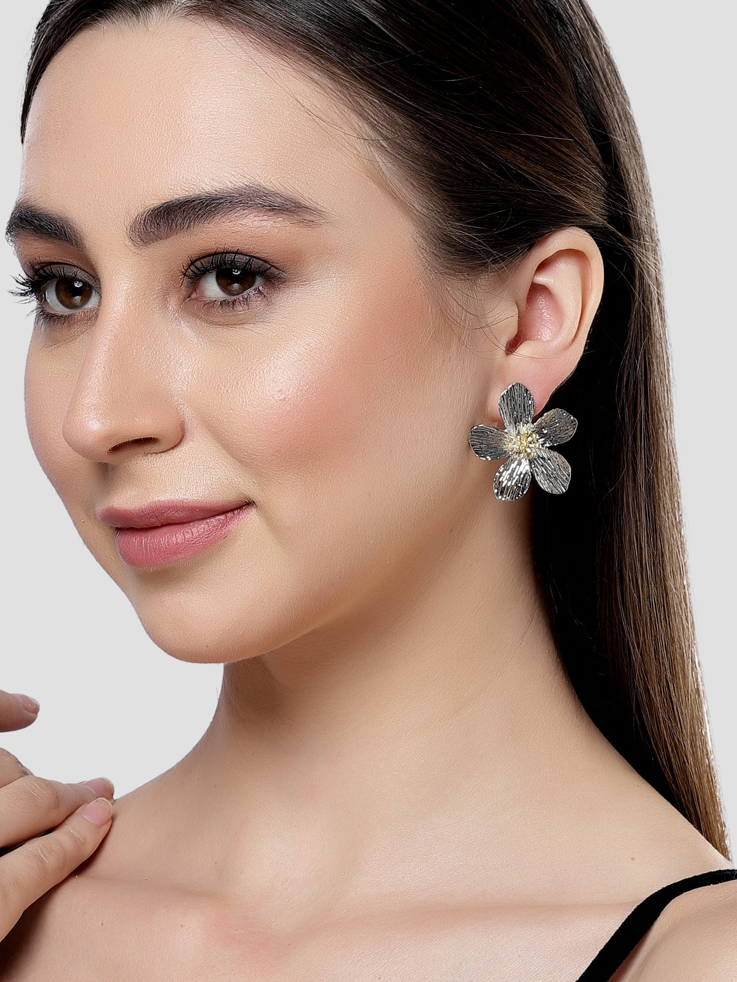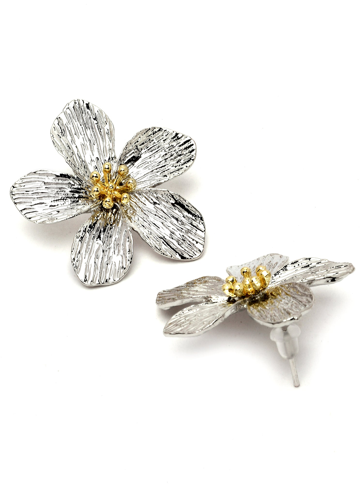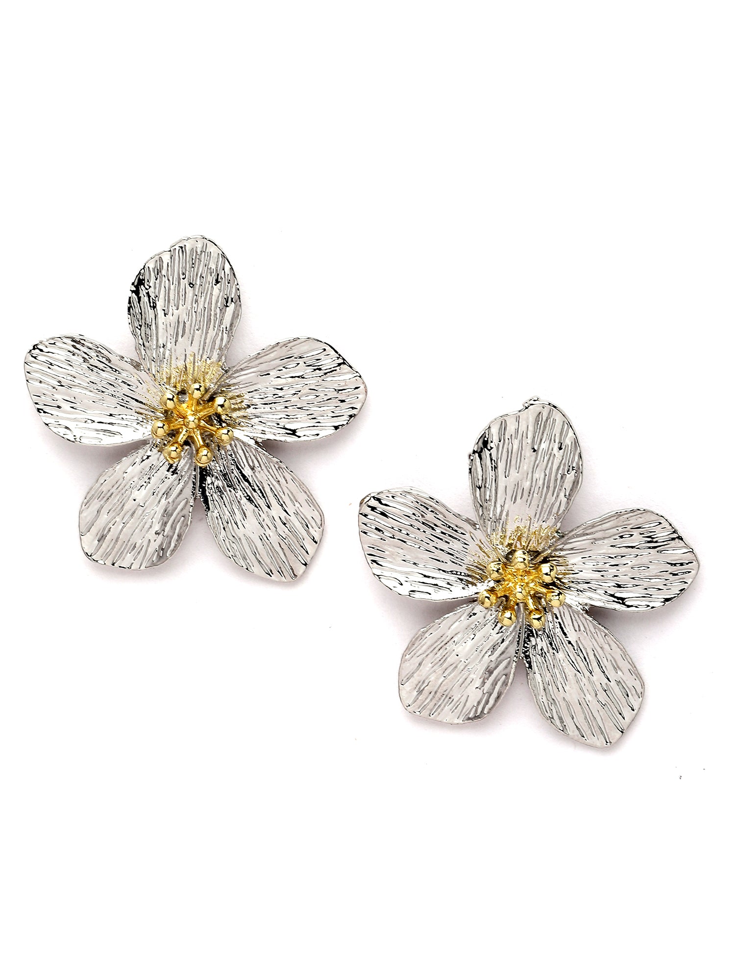 Bohey by KARATCART Silver Tone Metallic Finish Stud Earrings for Women