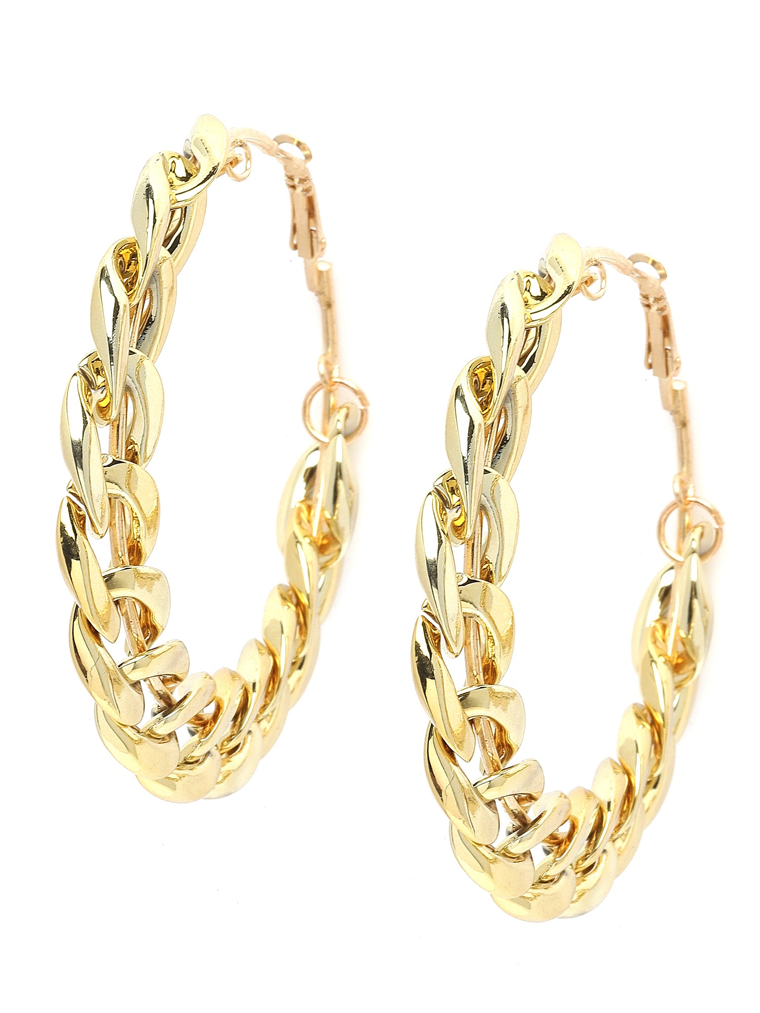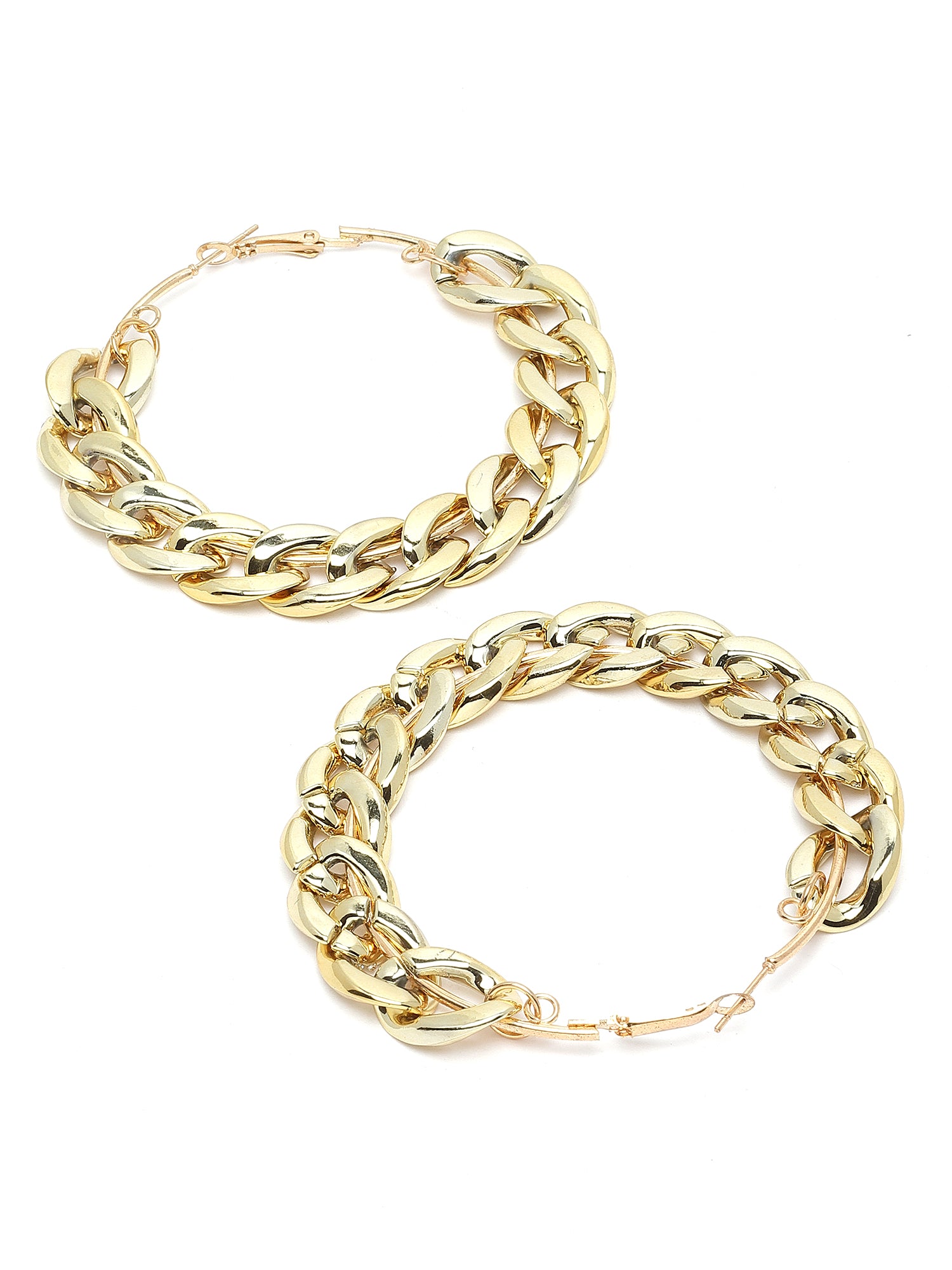 Bohey by KARATCART Gold Plated Large Chain Hoop Earrings for Women