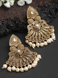 Karatcart Golden Pearl and Kundan Studded Gold Plated Dangler Earrings for Women