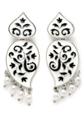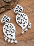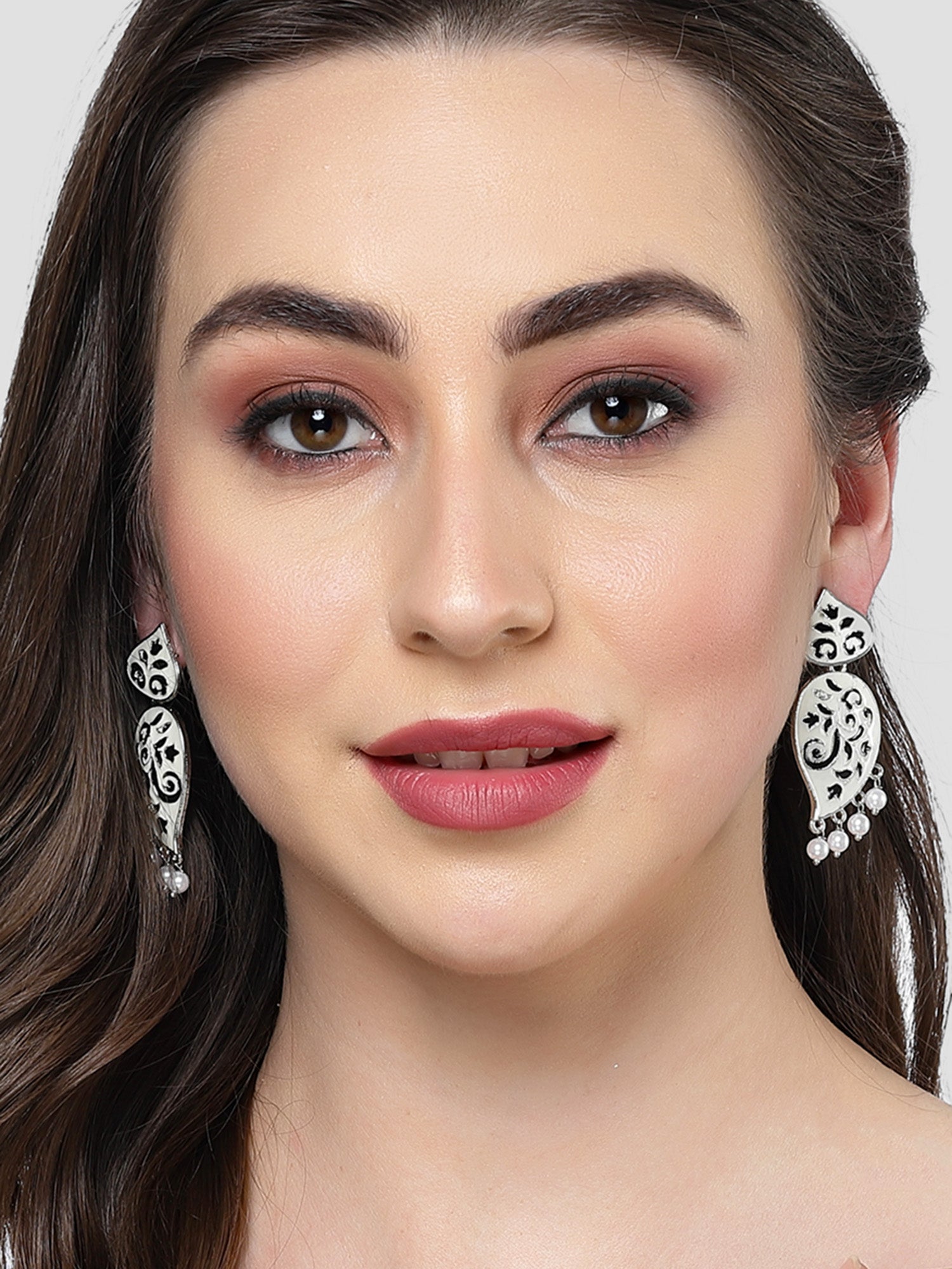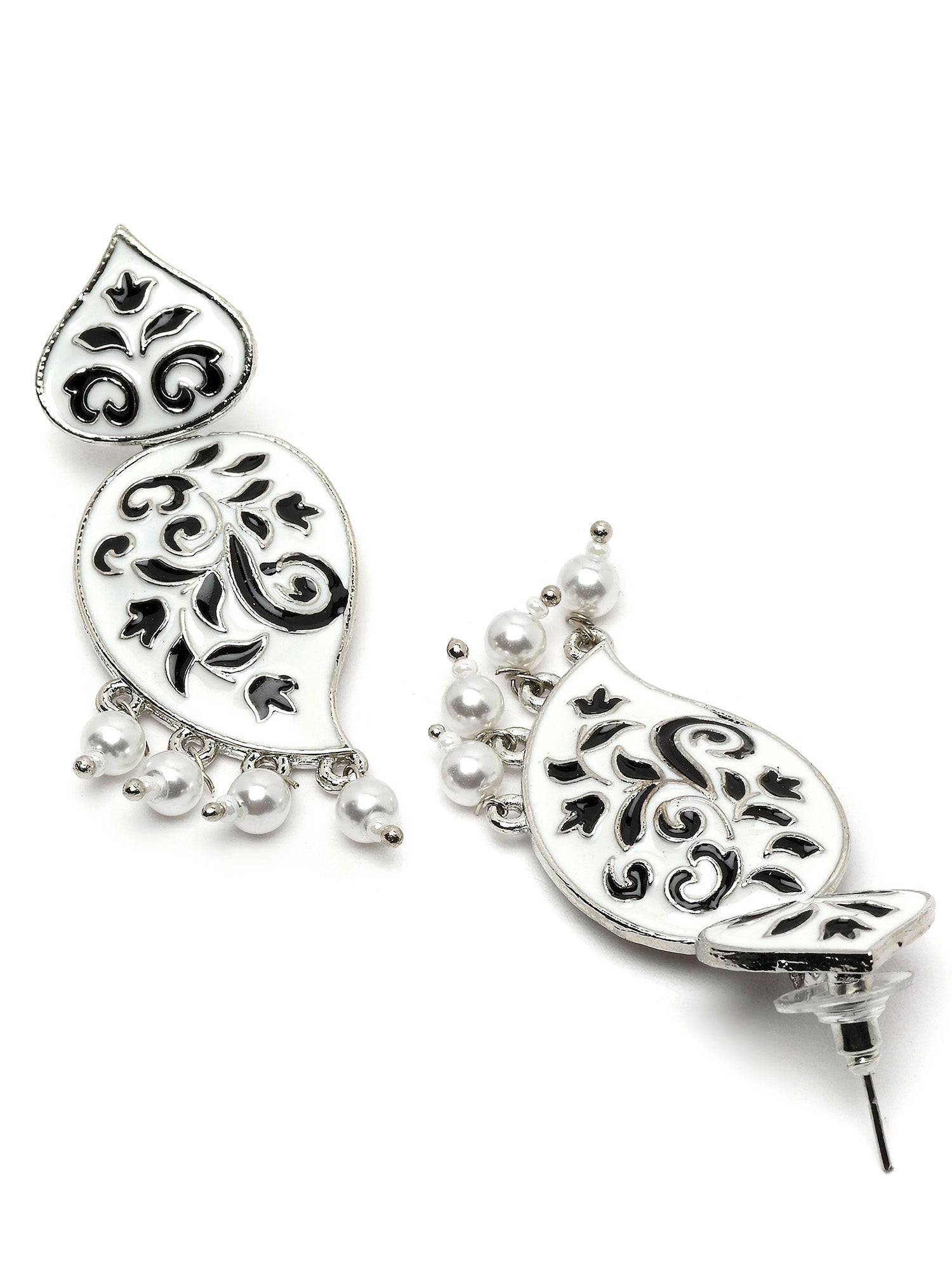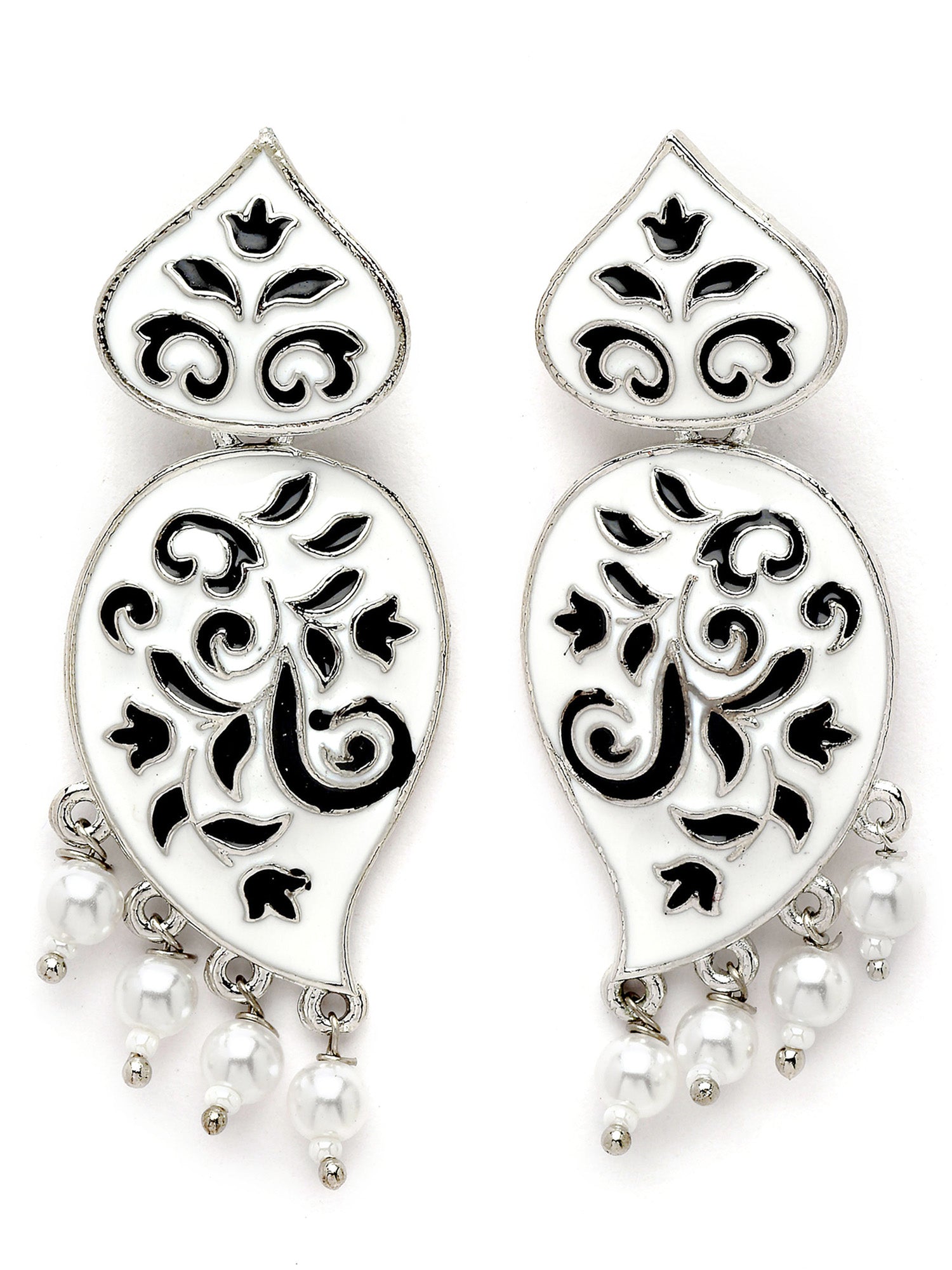 Karatcart Silver Tone White and Black Meena Drop Earrings for Women