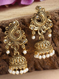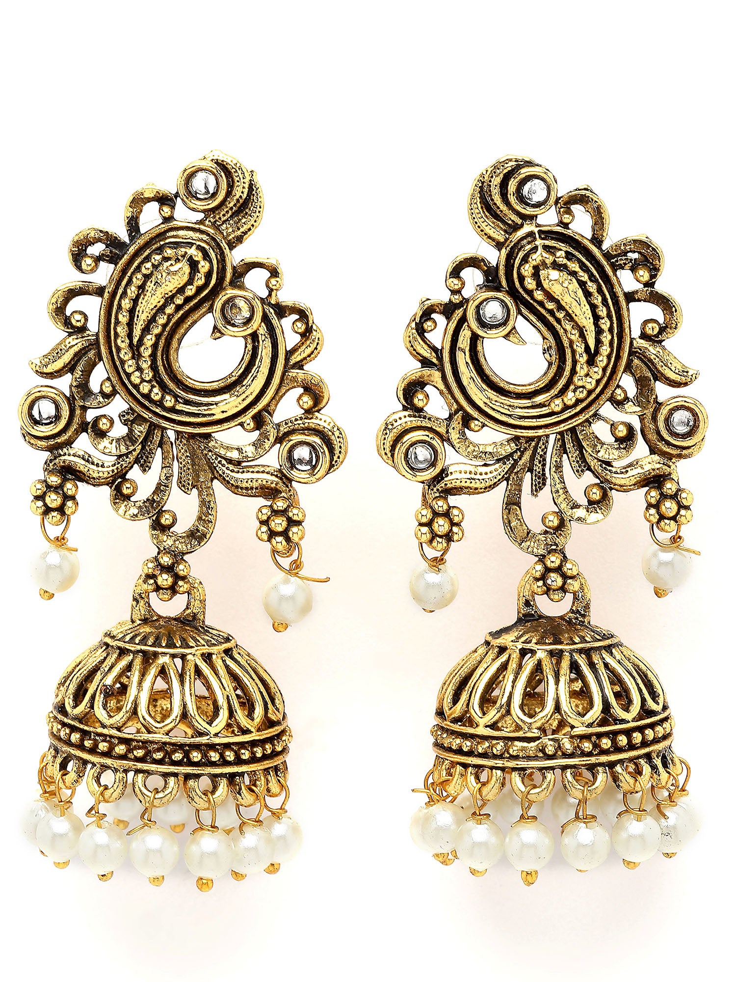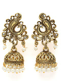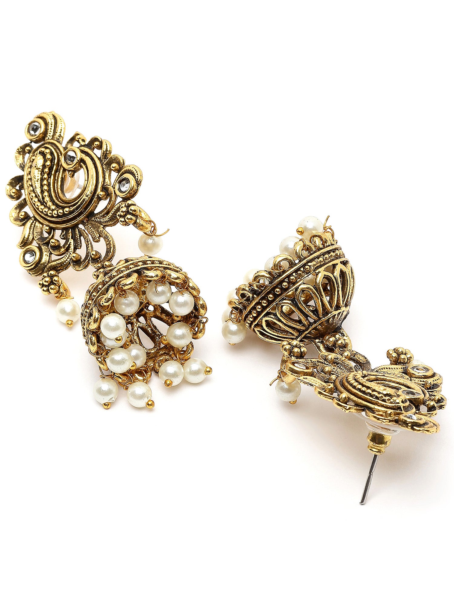 Karatcart Antique Gold Plated Pearl Studded Jhumki Earrings for Women
