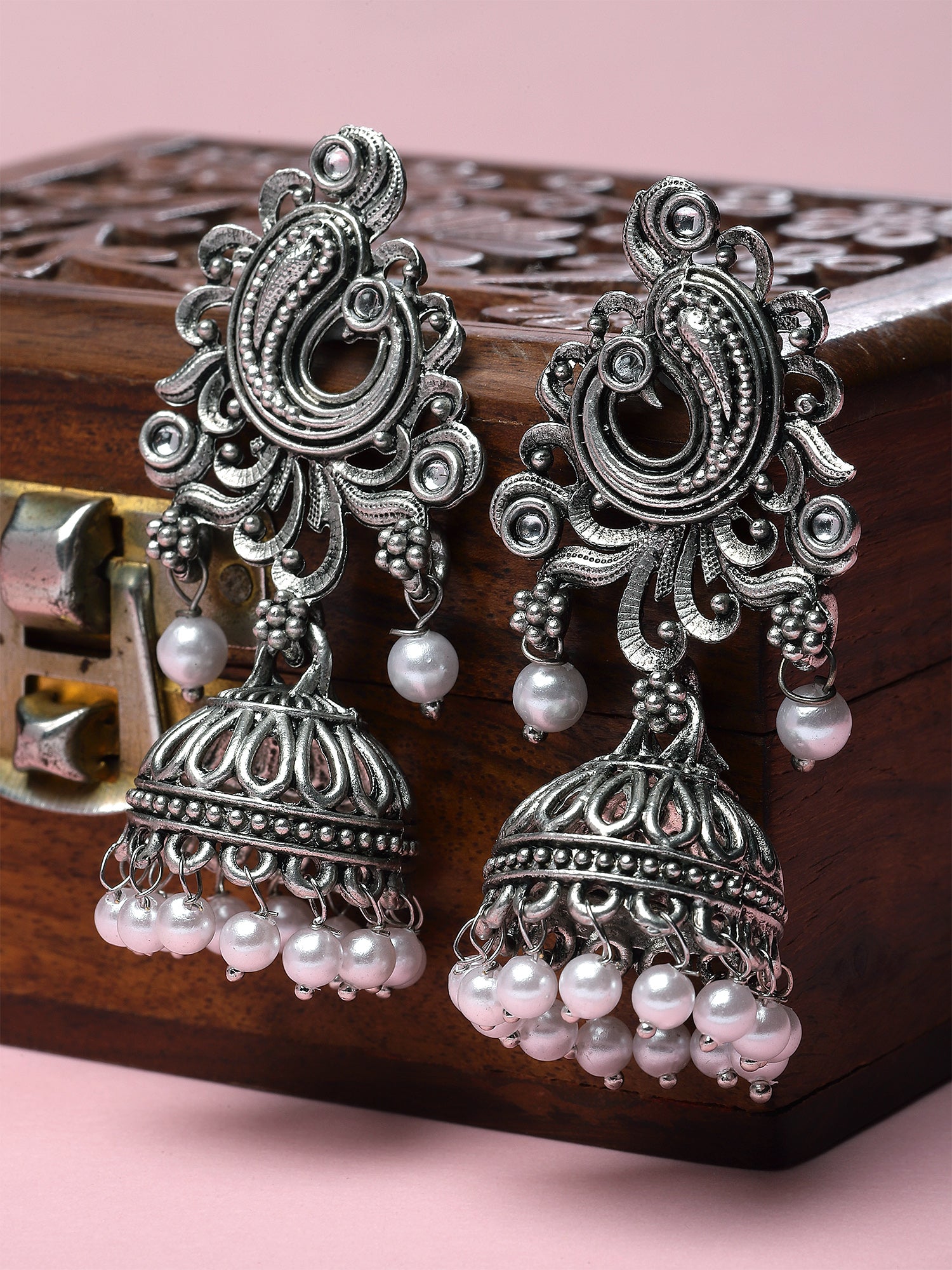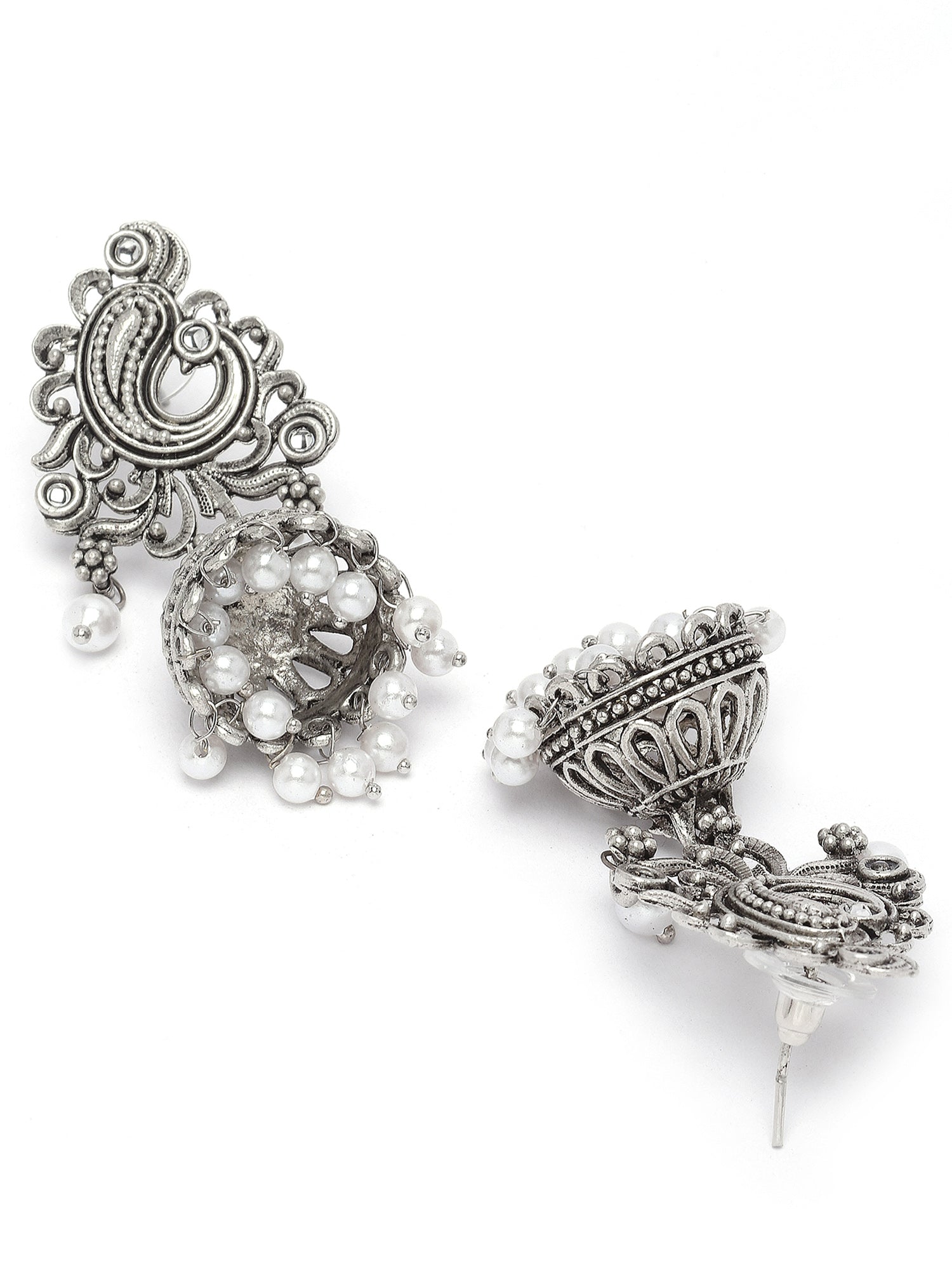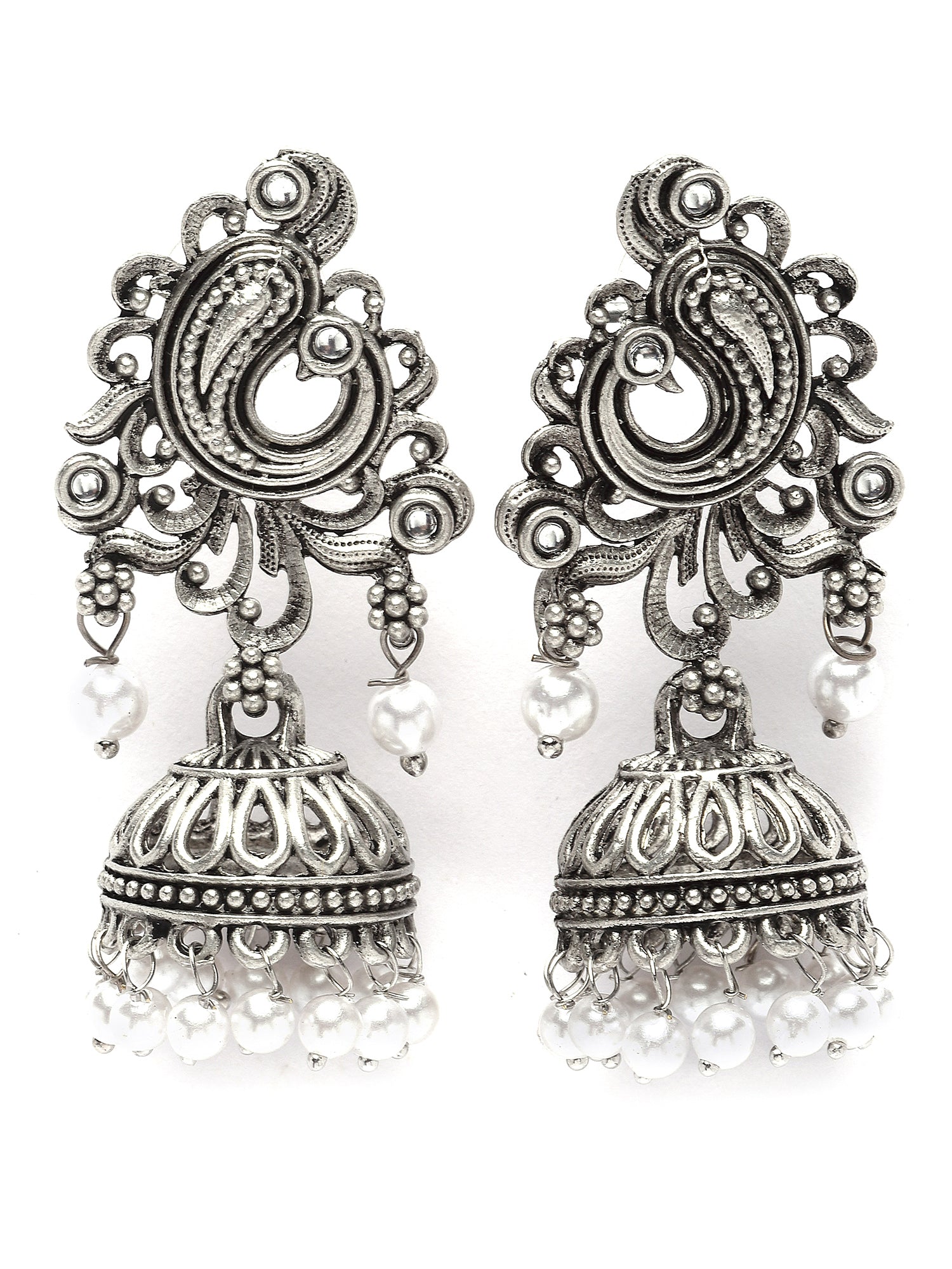 Karatcart Silver Plated Pearl Studded Jhumki Earrings for Women