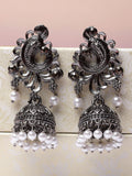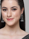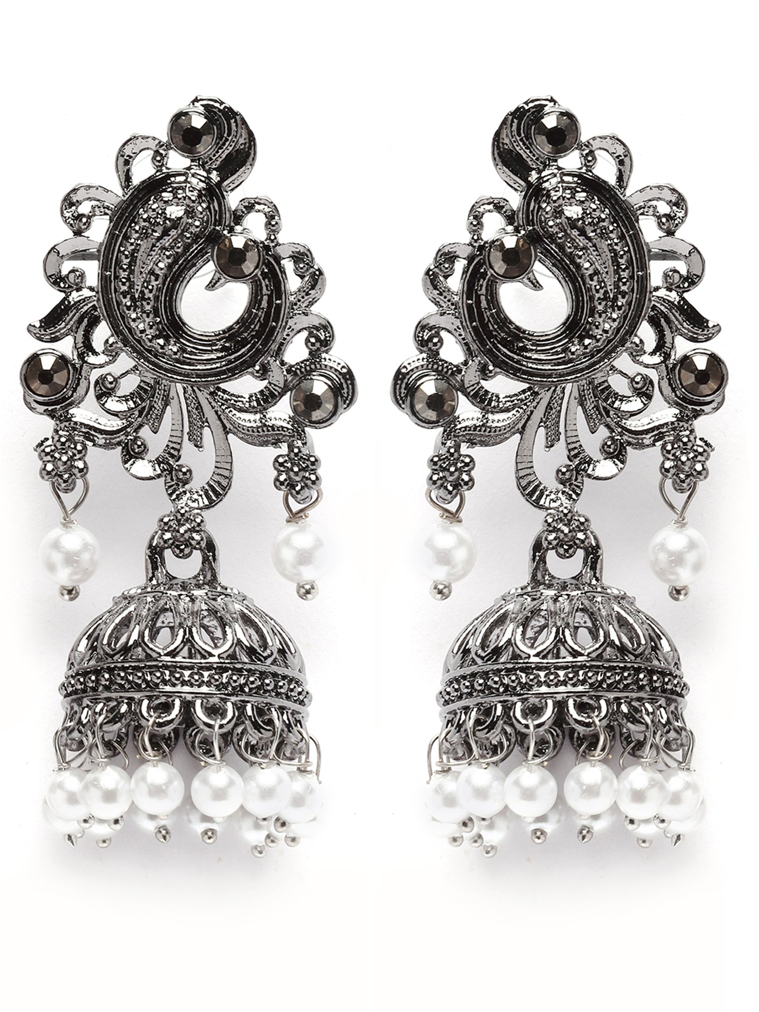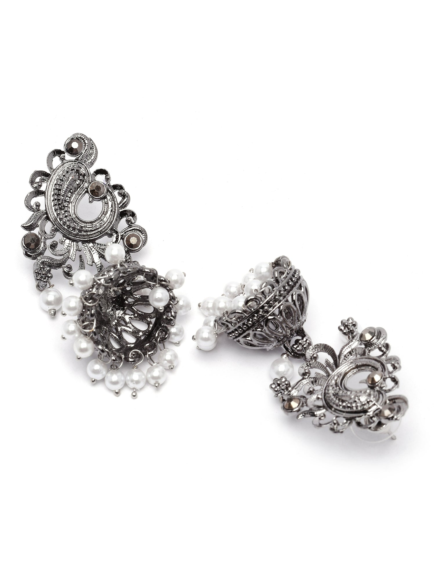 Karatcart Black Silver Plated Pearl Studded Jhumki Earrings for Women