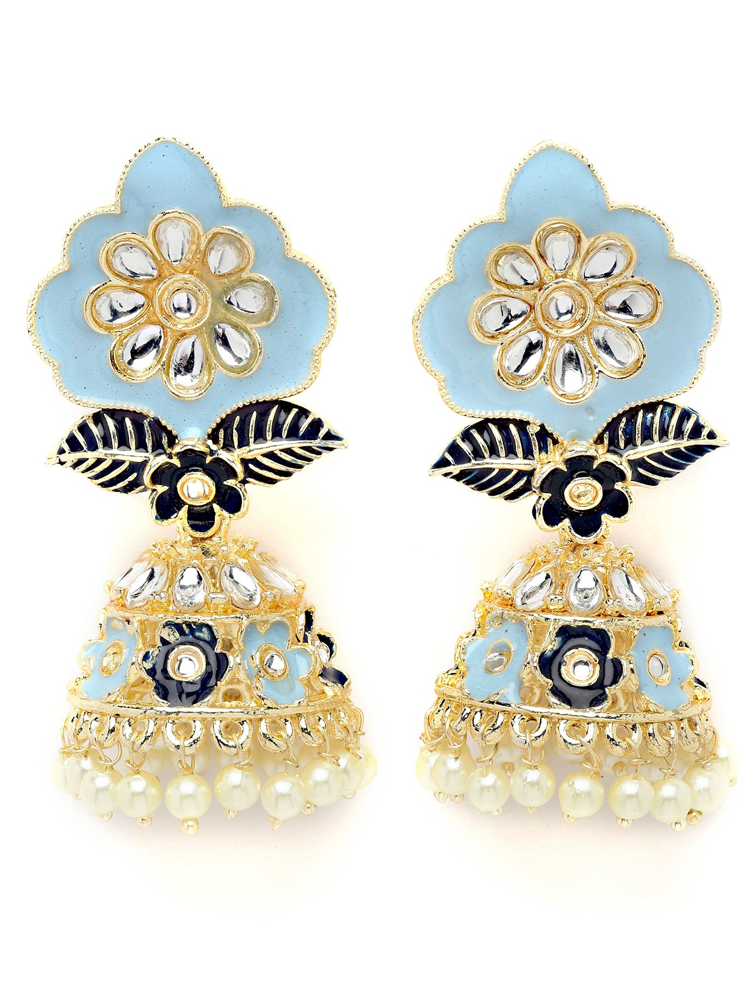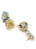 Karatcart Gold Plated Floral Design Blue Meena Jhumki Earrings for Women