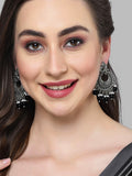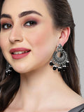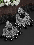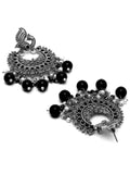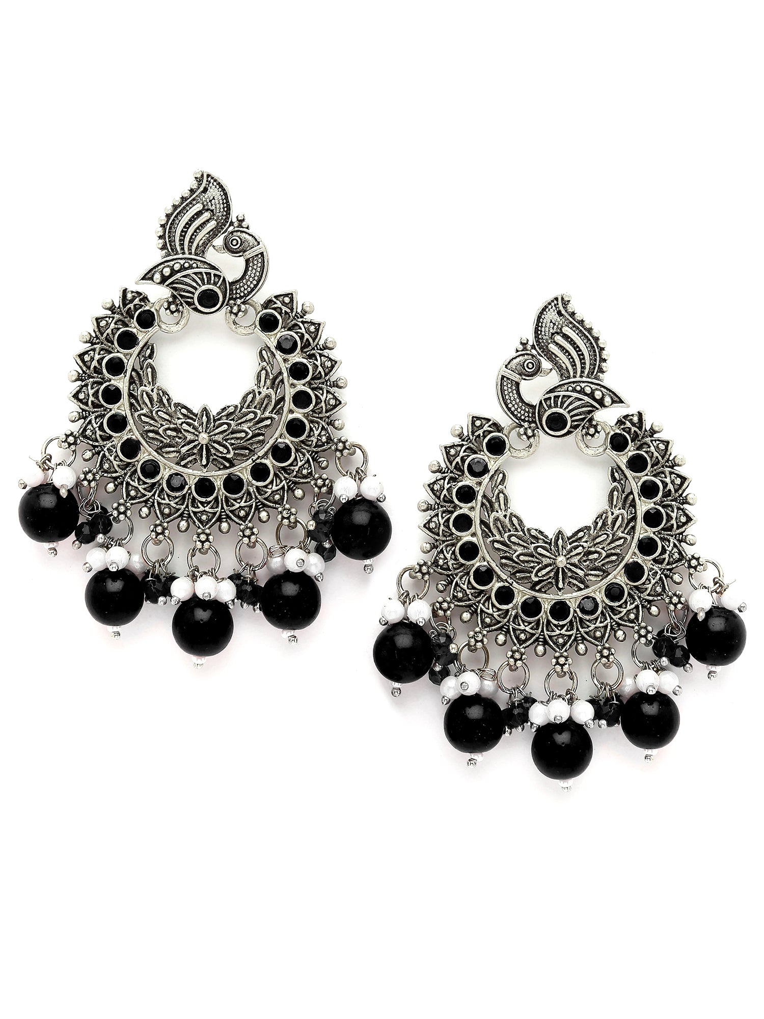 Karatcart Oxidised Silver Peacock Design Black Beads and Kundan Dangler Earrings for Women