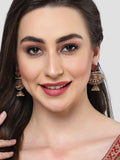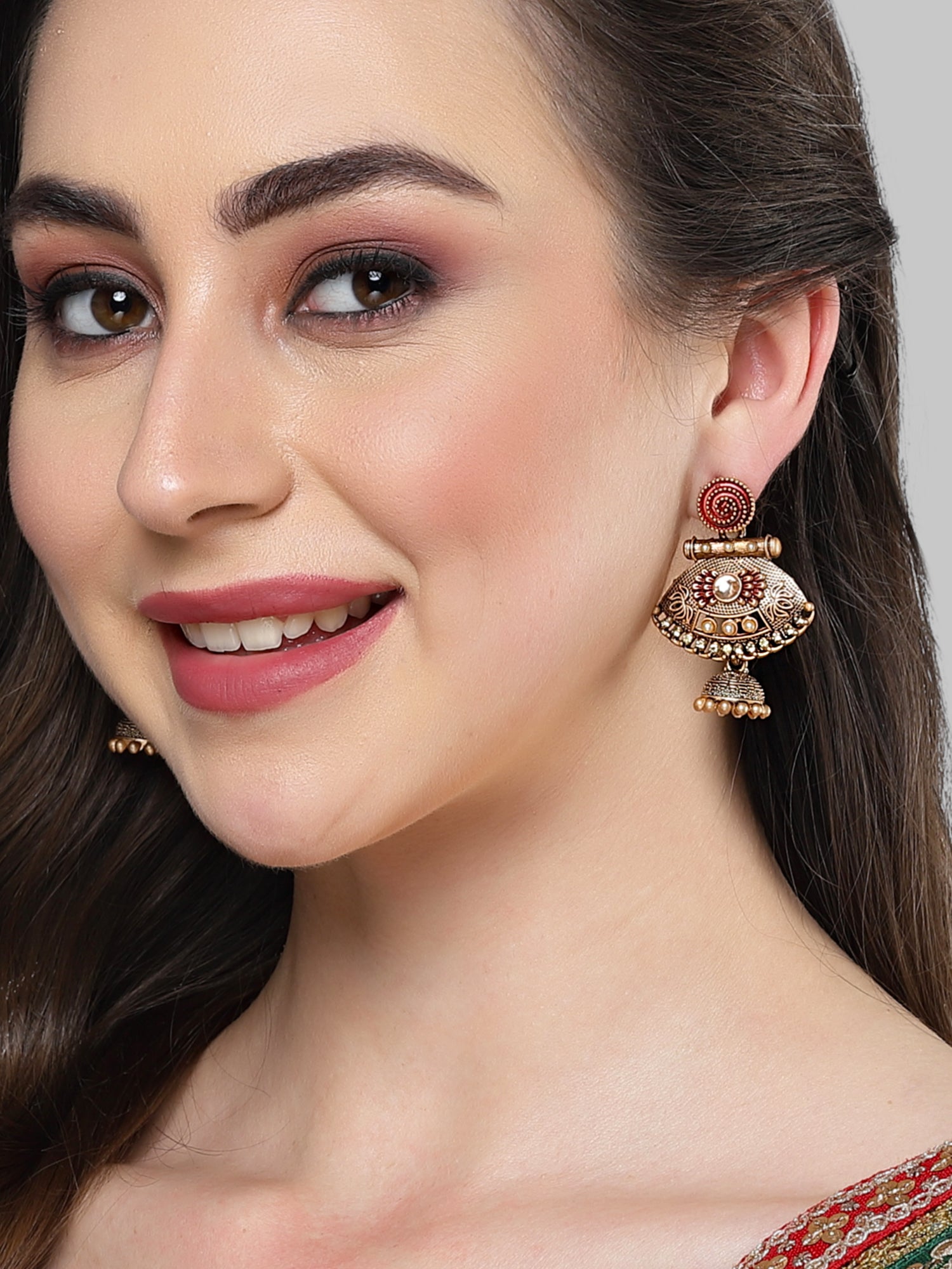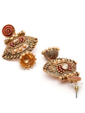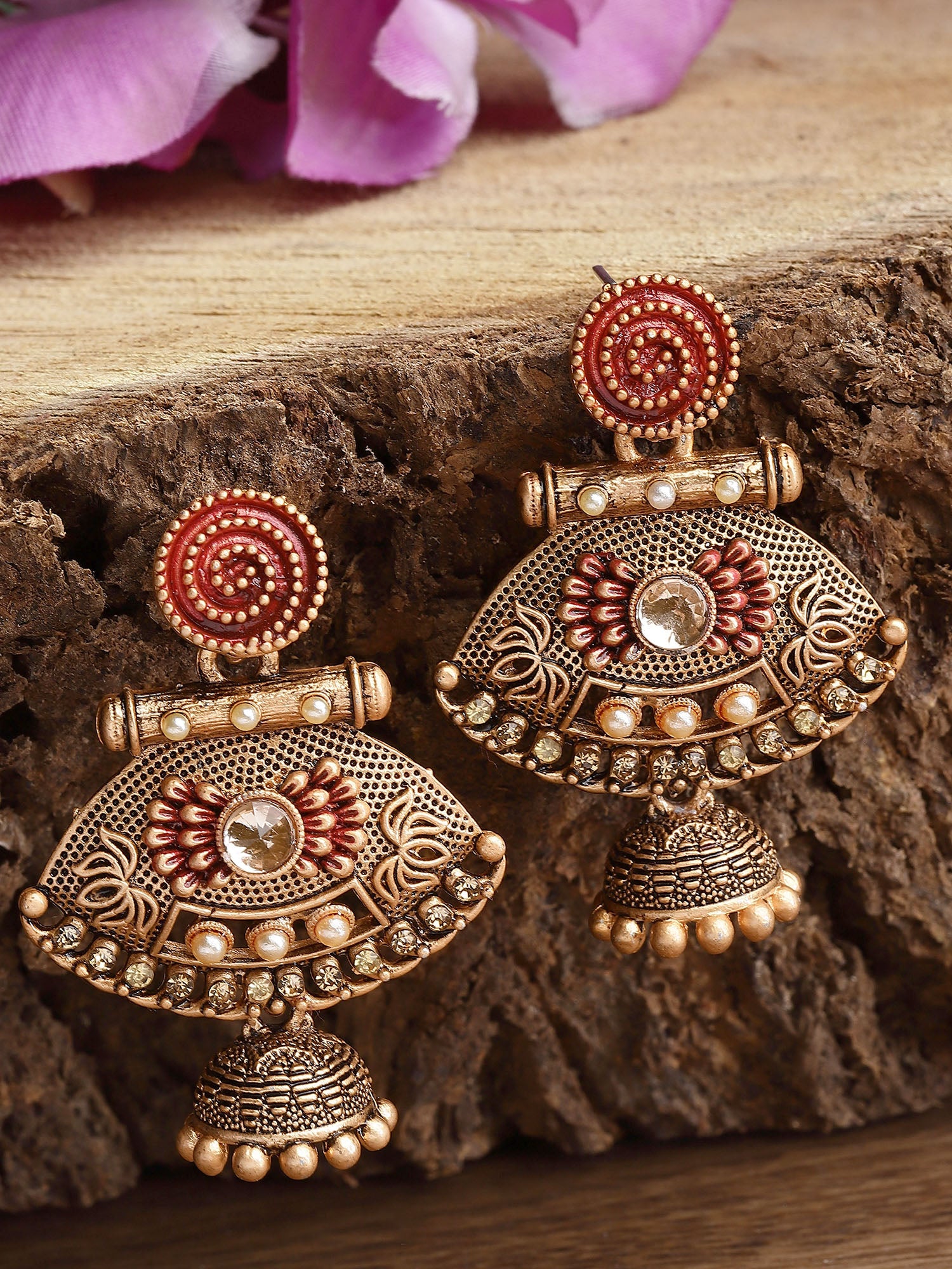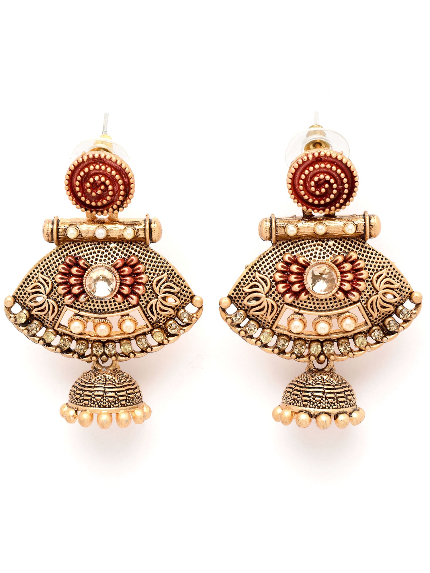 Karatcart Gold Plated Maroon Meena Pearl Kundan Drop Jhumki Earrings for Women