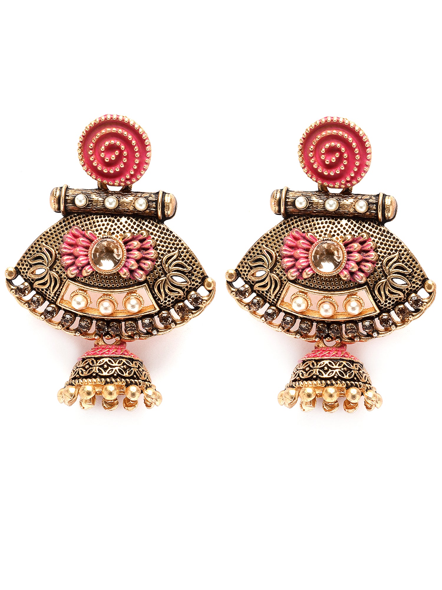 Karatcart Gold Plated Pink Meena Pearl Kundan Drop Jhumki Earrings for Women