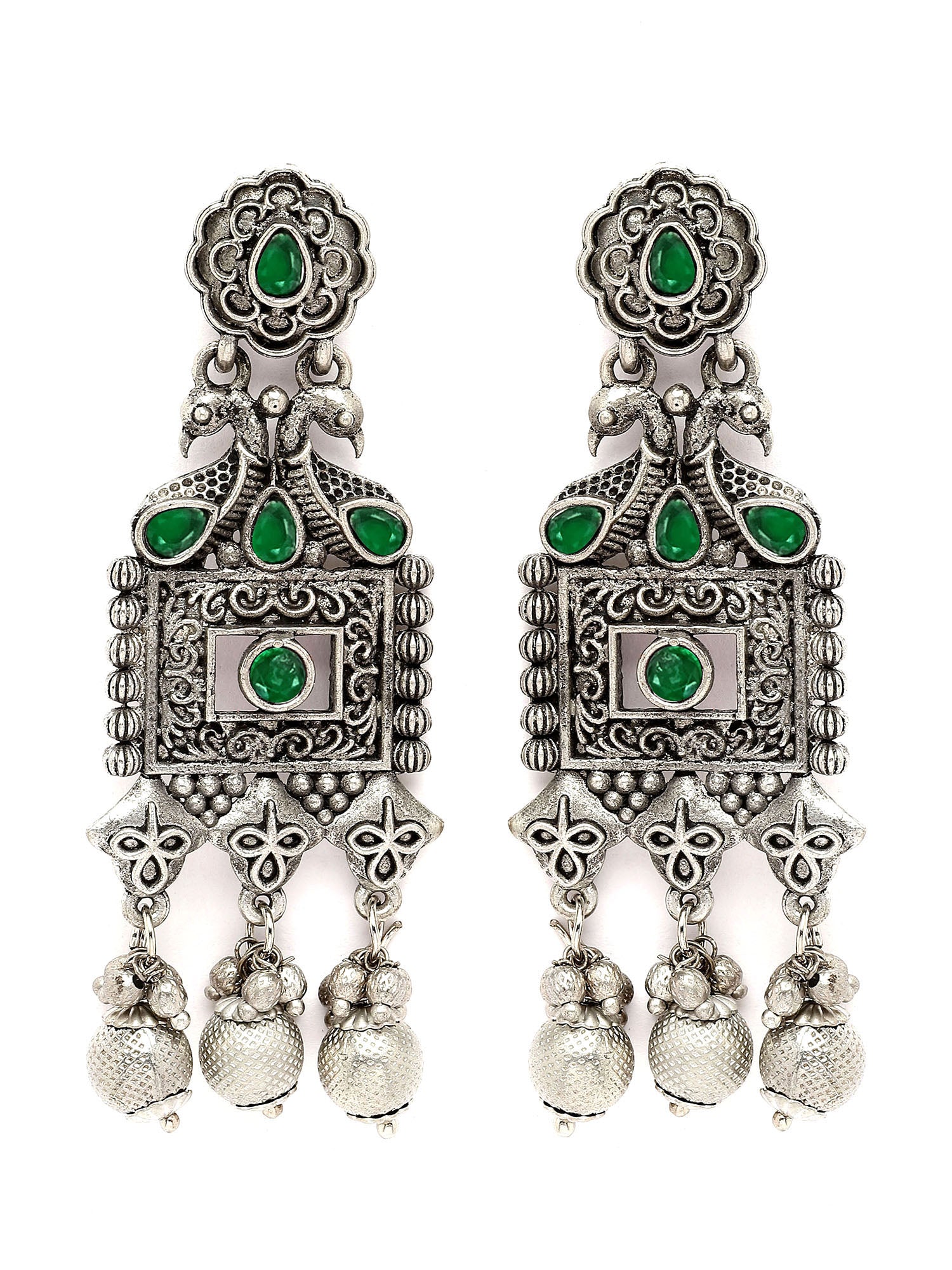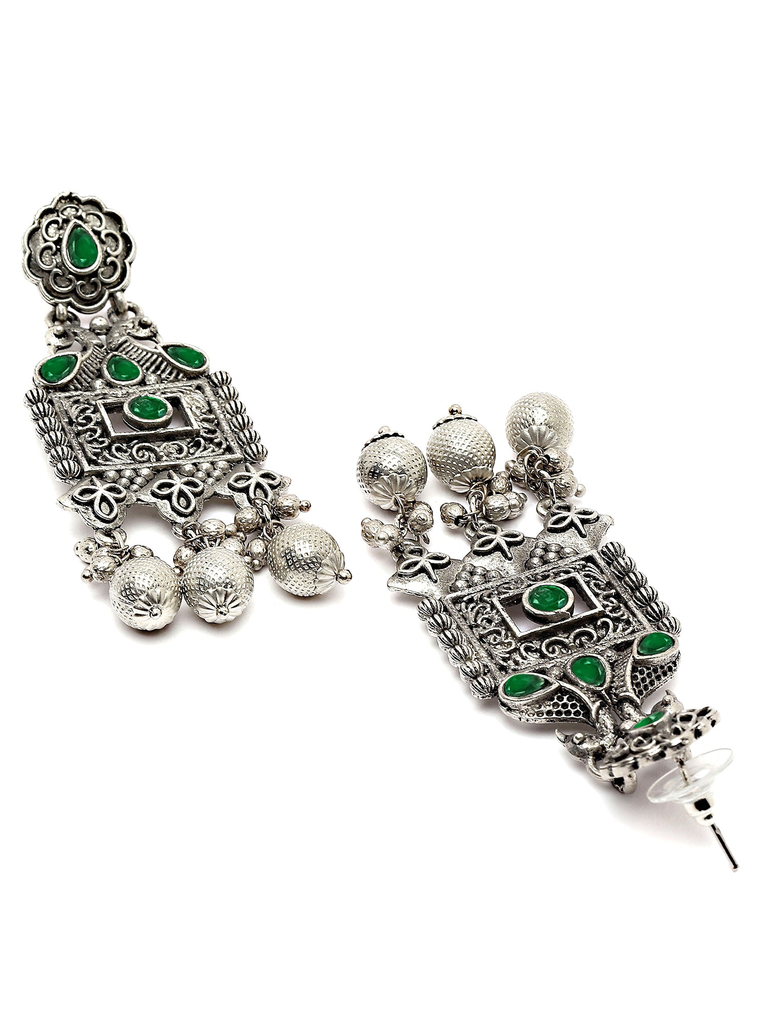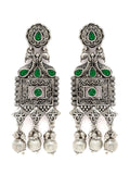 Karatcart Oxidised Silver Green Kundan Studded Drop Earrings for Women