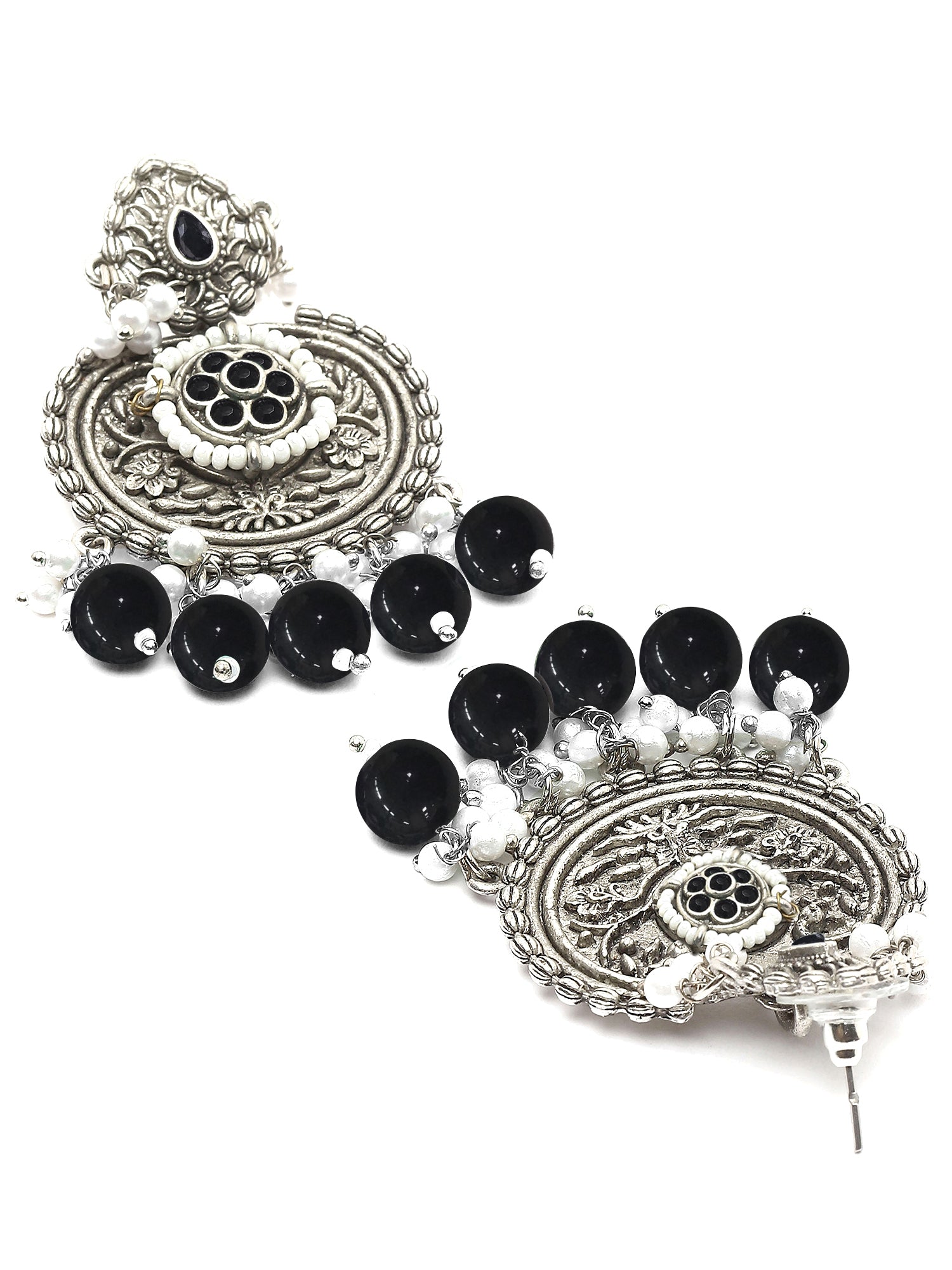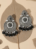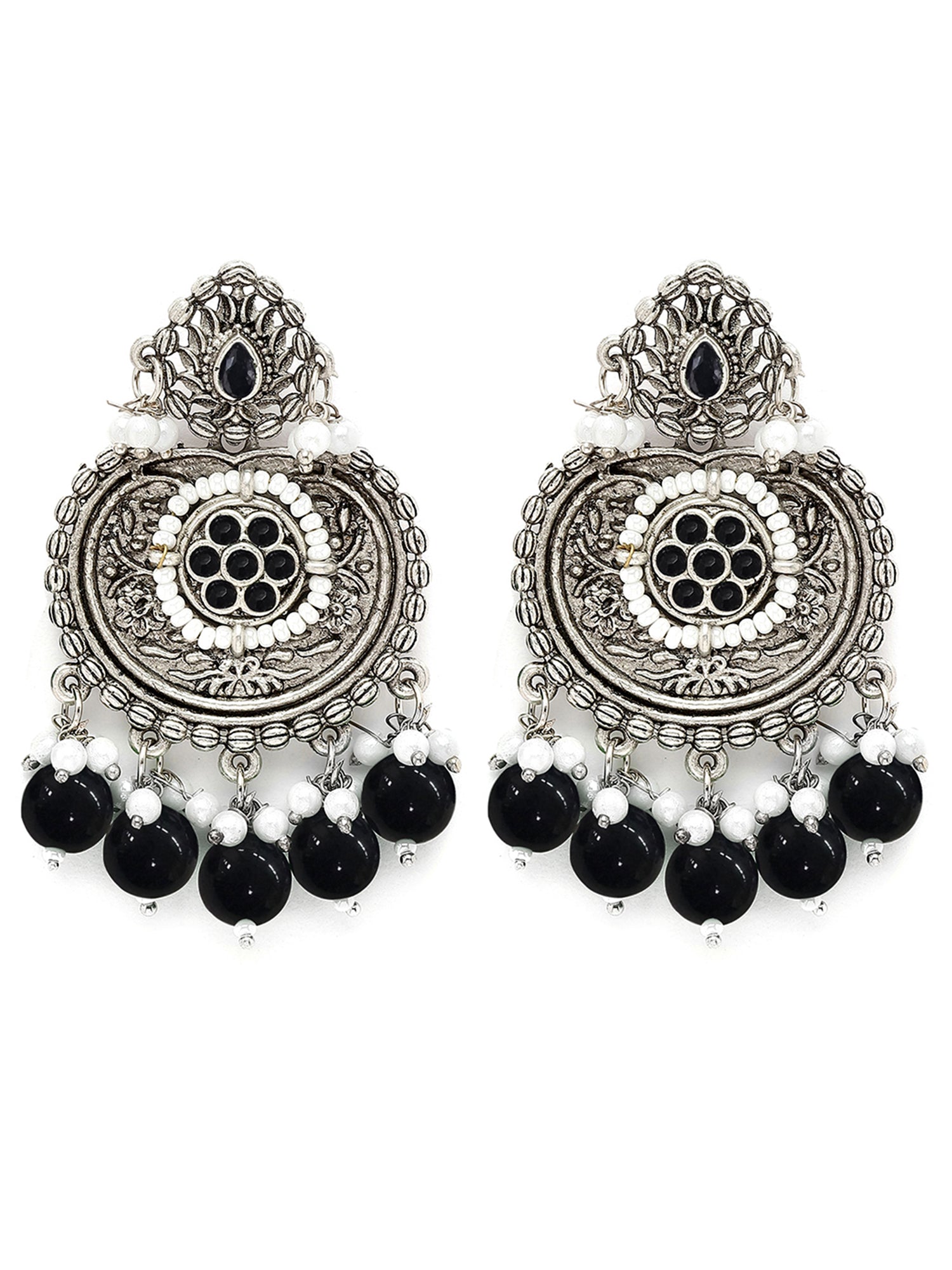 Karatcart Oxidised Silver Black Beads Floral Drop Earrings for Women