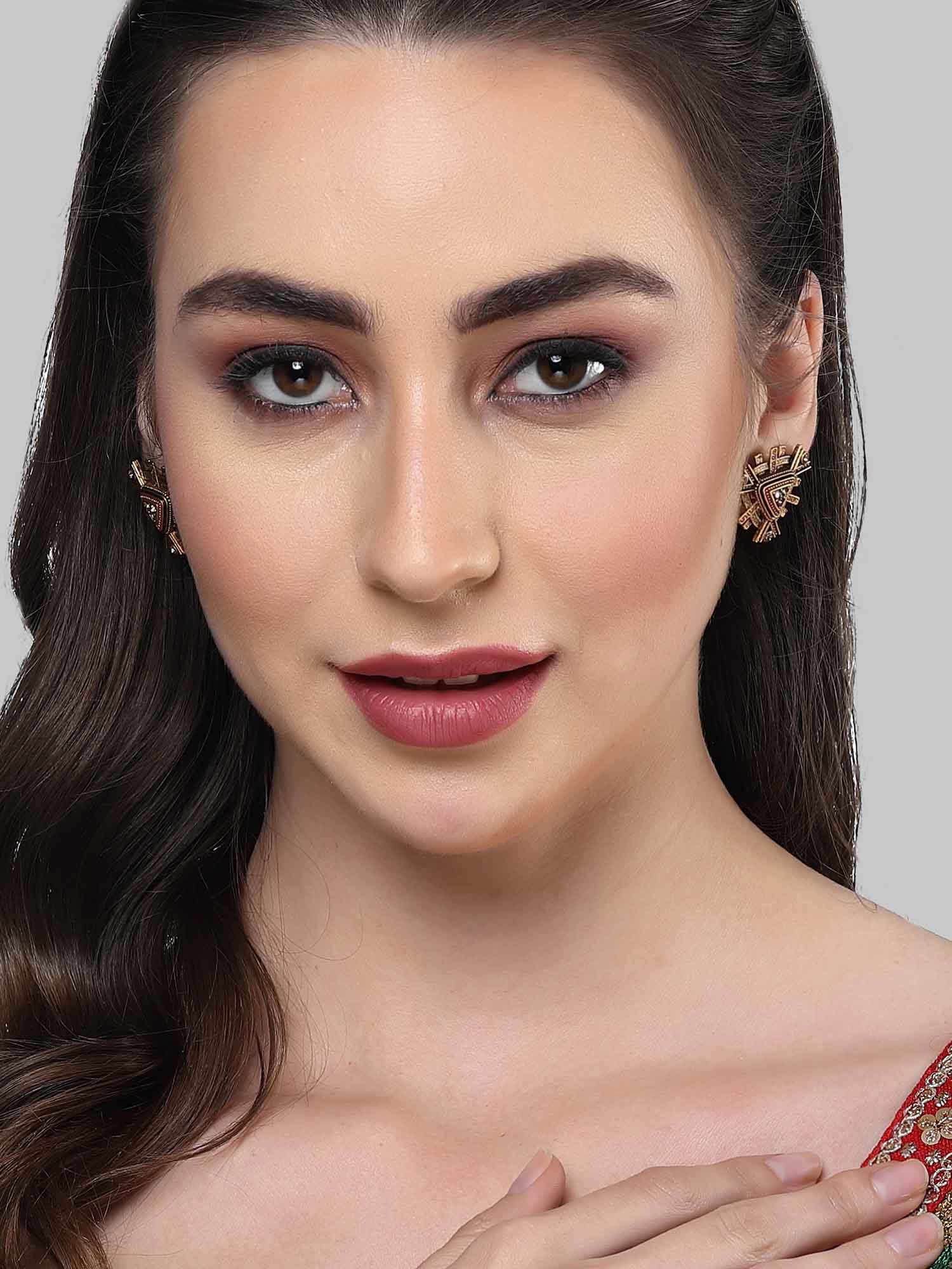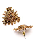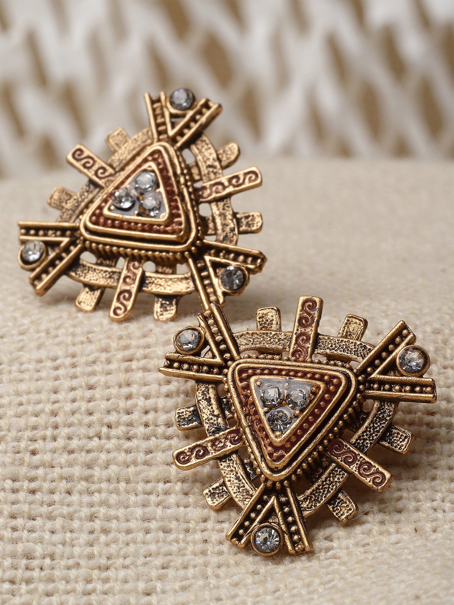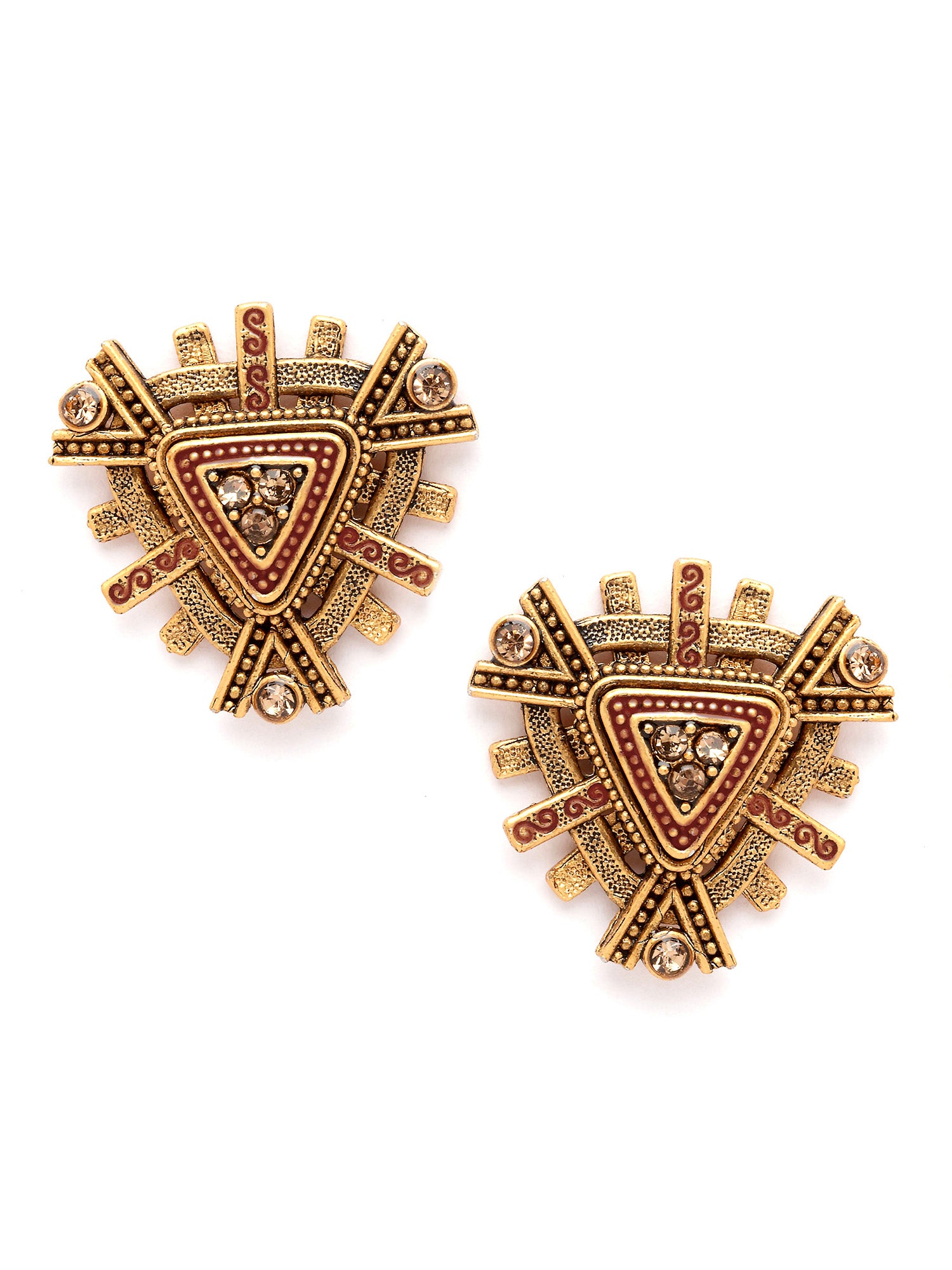 Karatcart Antique Gold Plated Maroon Meena Triangular Stud Earrings for Women