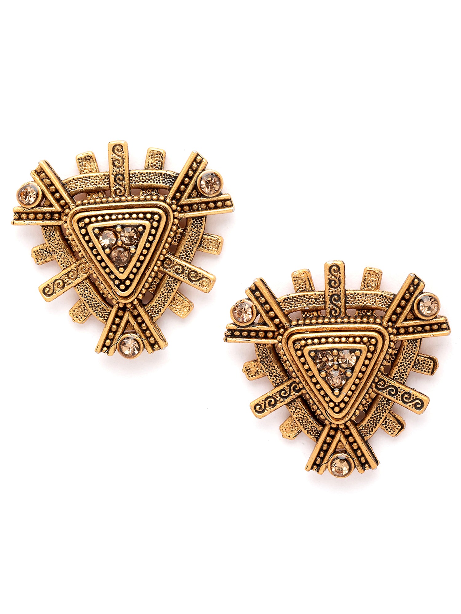 Karatcart Antique Gold Plated Triangular Stud Earrings for Women
