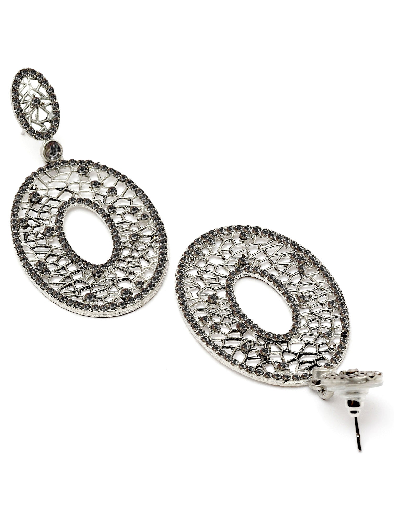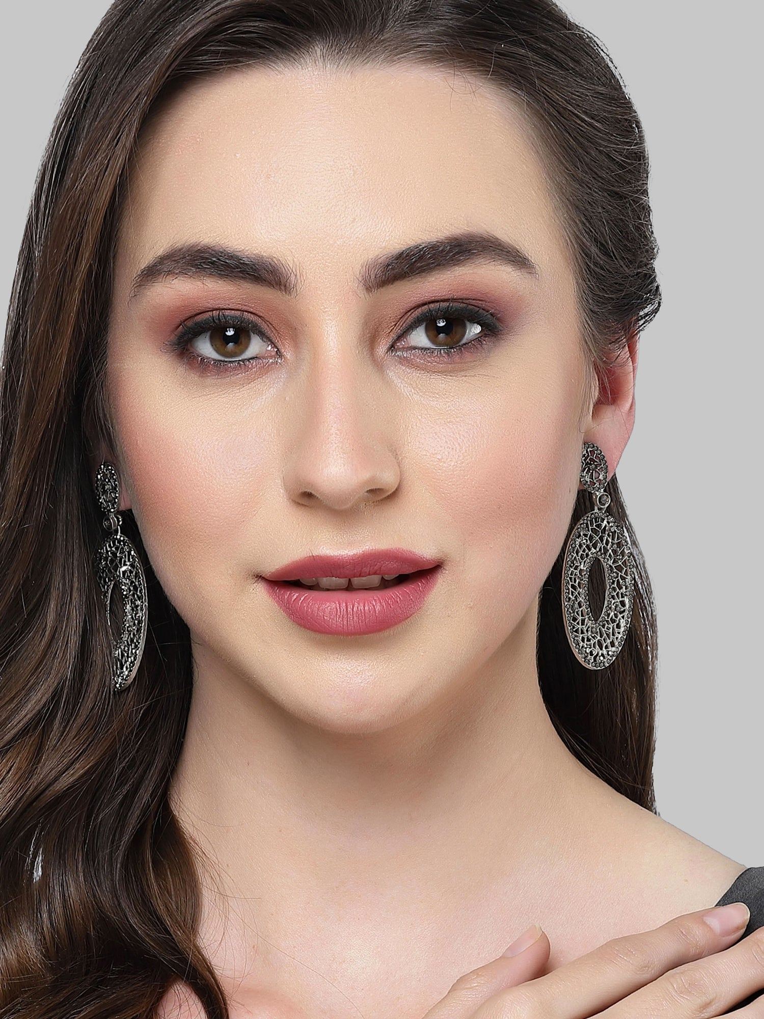 Karatcart Oxidised Silver Black Stone Studded Drop Earring for Women
