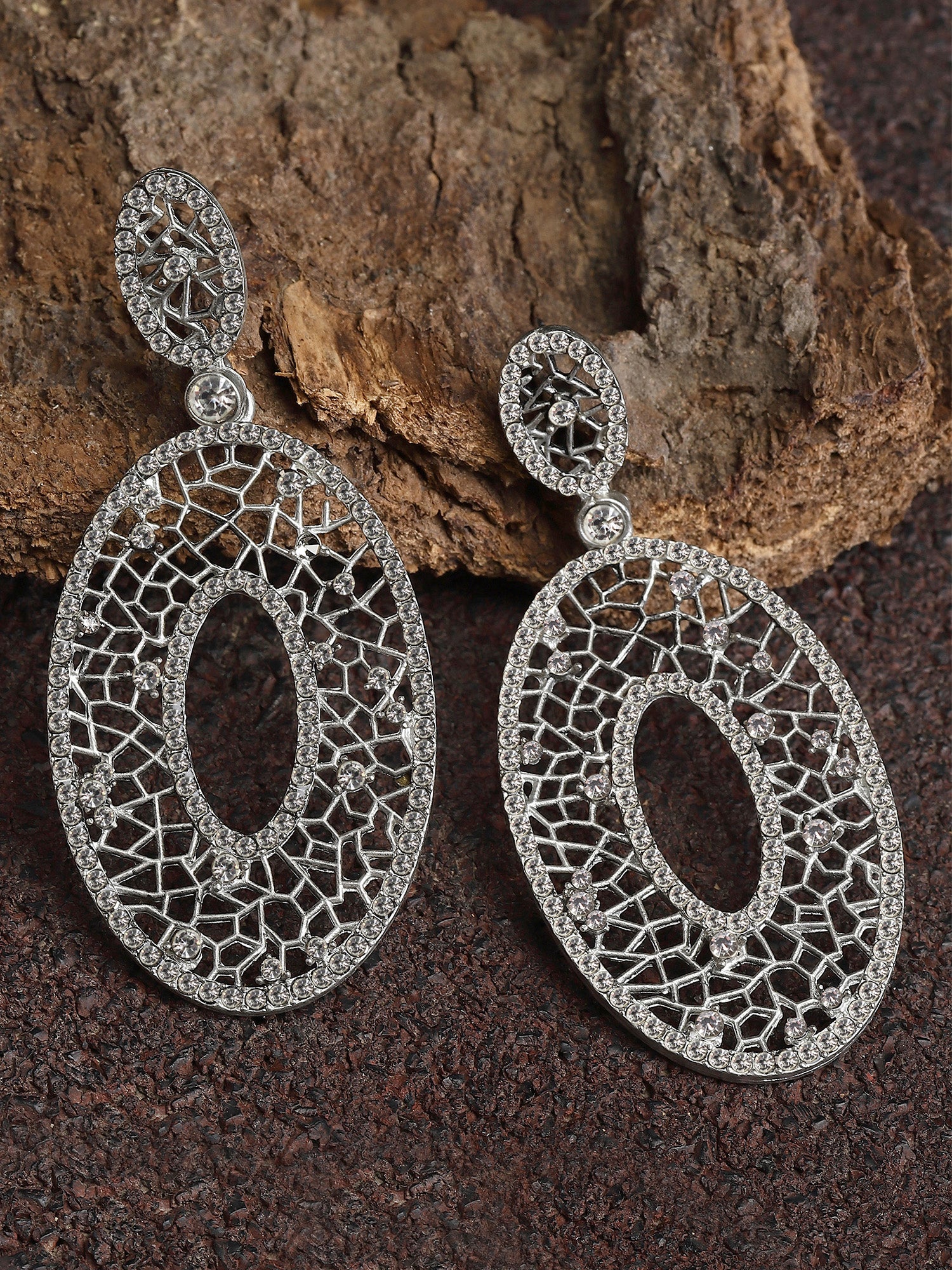 Karatcart Oxidised Silver Stone Studded Drop Earring for Women