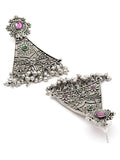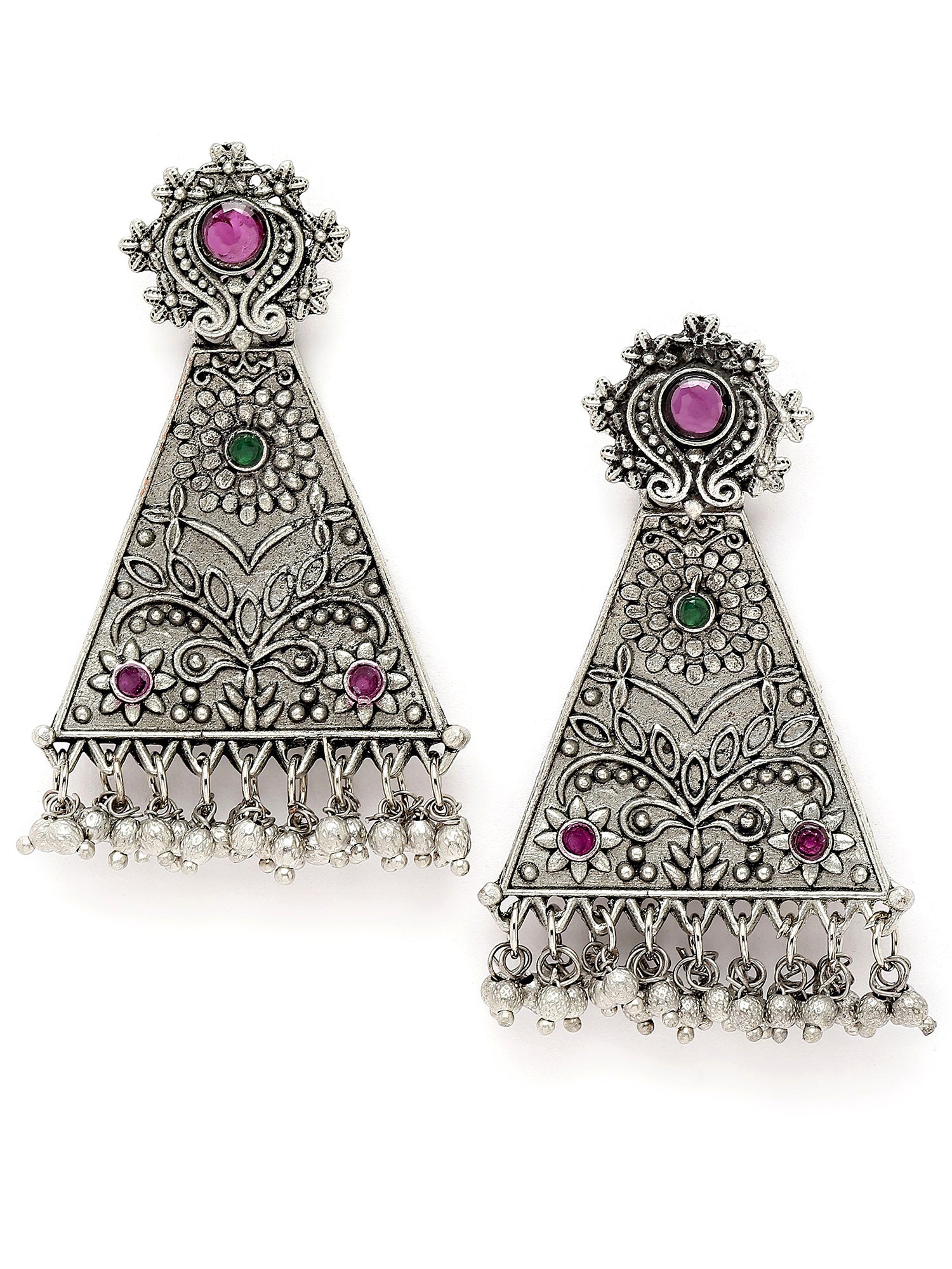 Karatcart Oxidised Silver Red and Green Stone Floral Design Drop Earring for Women