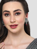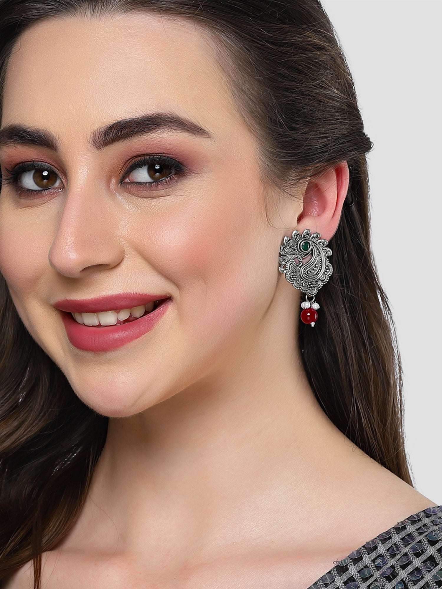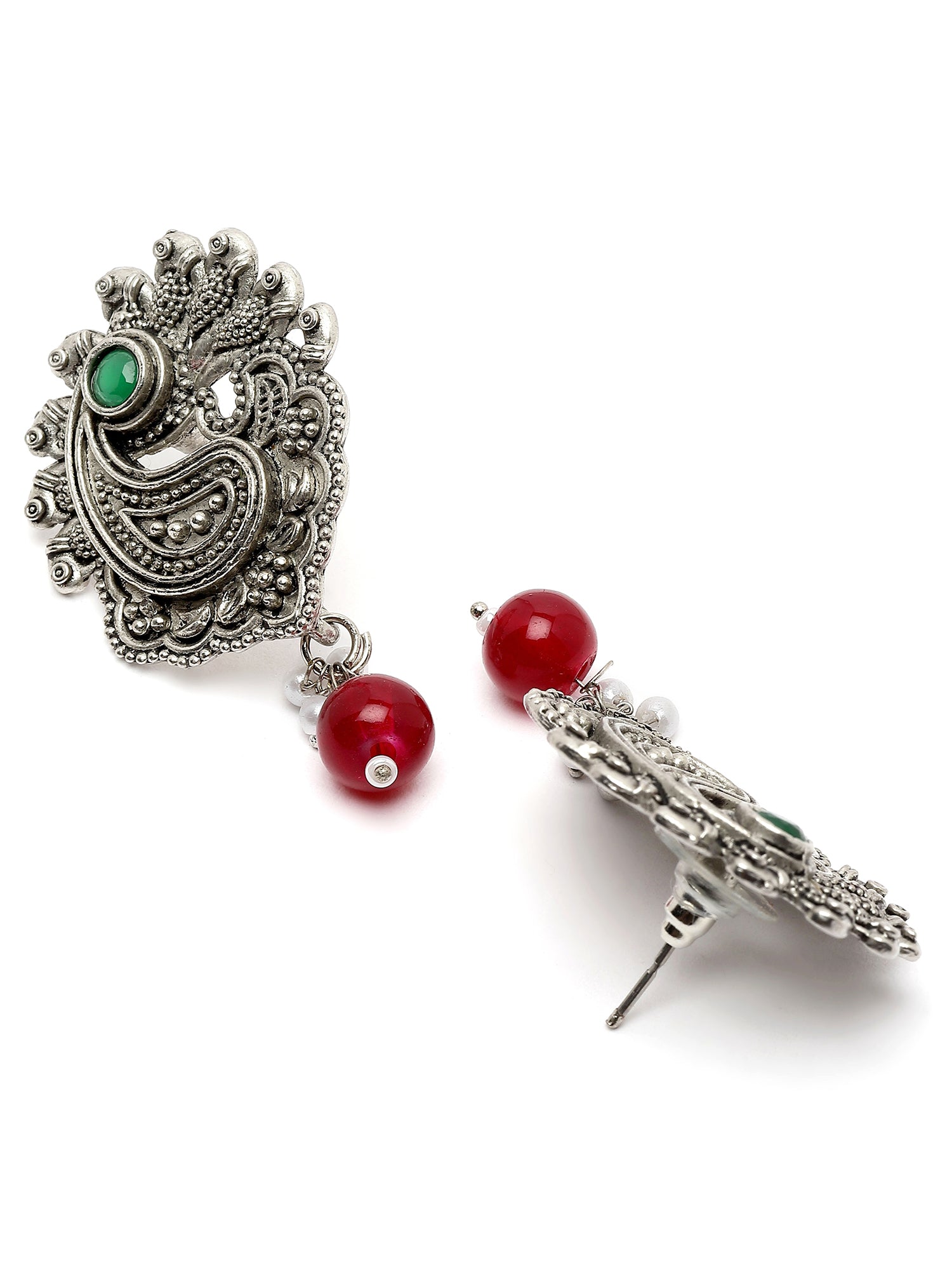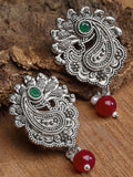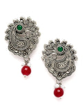 Karatcart Oxidised Silver Green Stone Red Bead Drop Earring for Women