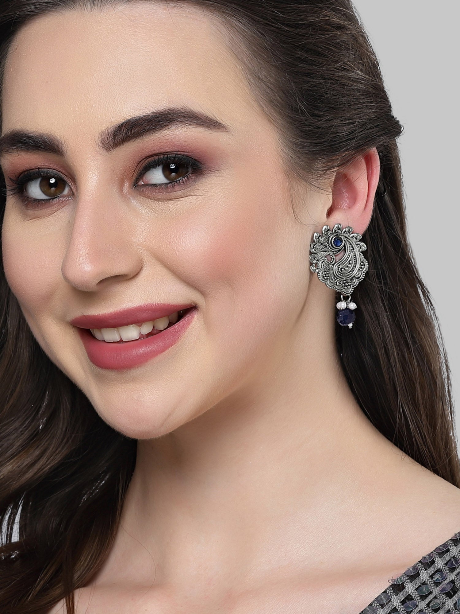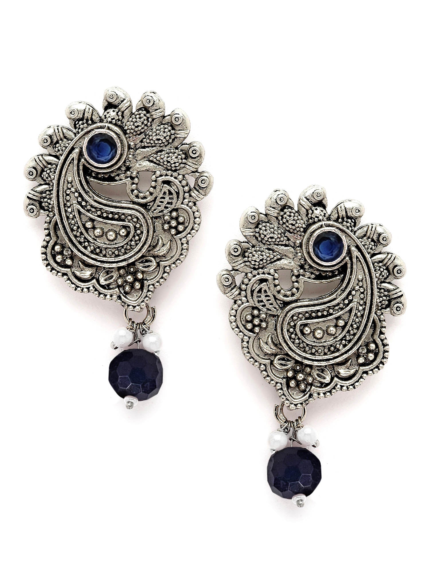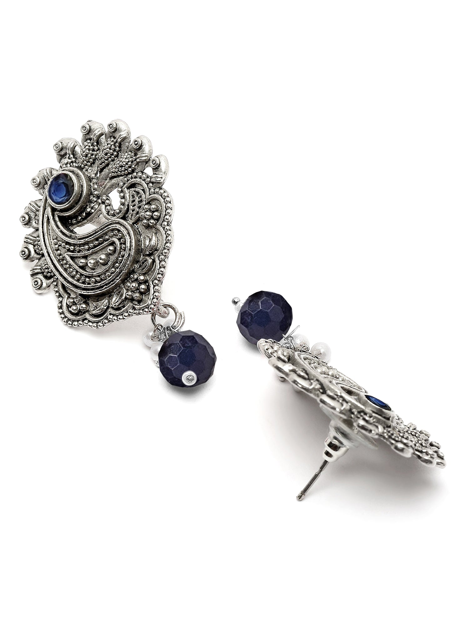Karatcart Oxidised Silver Blue Bead Drop Earring for Women