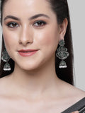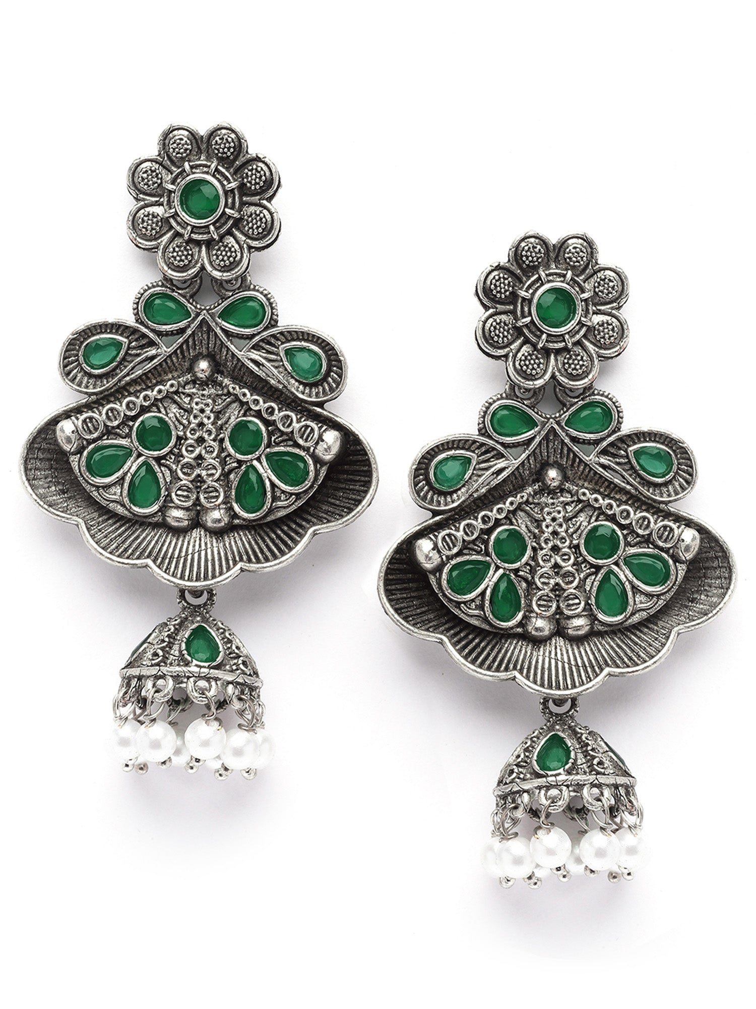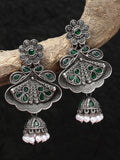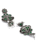 Karatcart Floral Oxidised Silver Green Stone Dangler Earring for Women