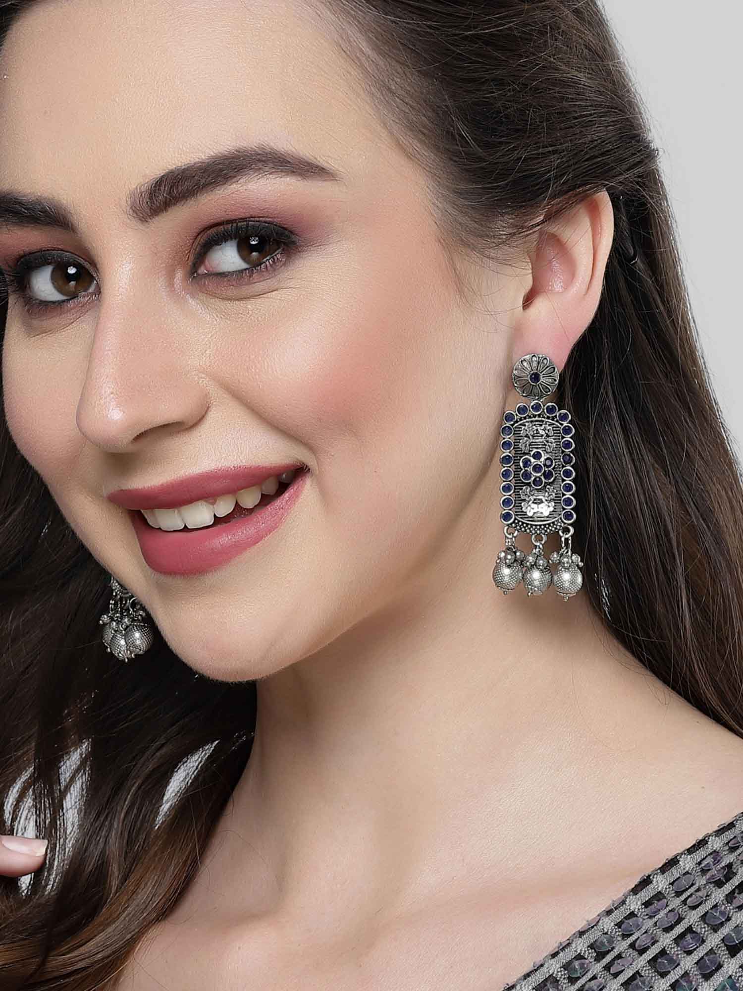 - This is a Blue Earrings by Brand Karatcart which has Kundan stones.This is Oxidised Silver. We at KARATCART understand your desire to look the best on any day & we thrive in making any day an occasion. Every individual at Karatcart carries a passion for jewellery and it reflects in our beautiful designs as well as in our breathtaking craftsmanship. We create unique jewellery so you can make heads turn..