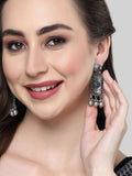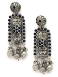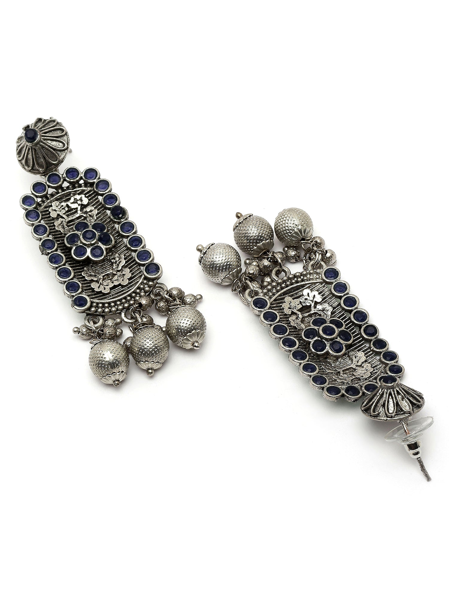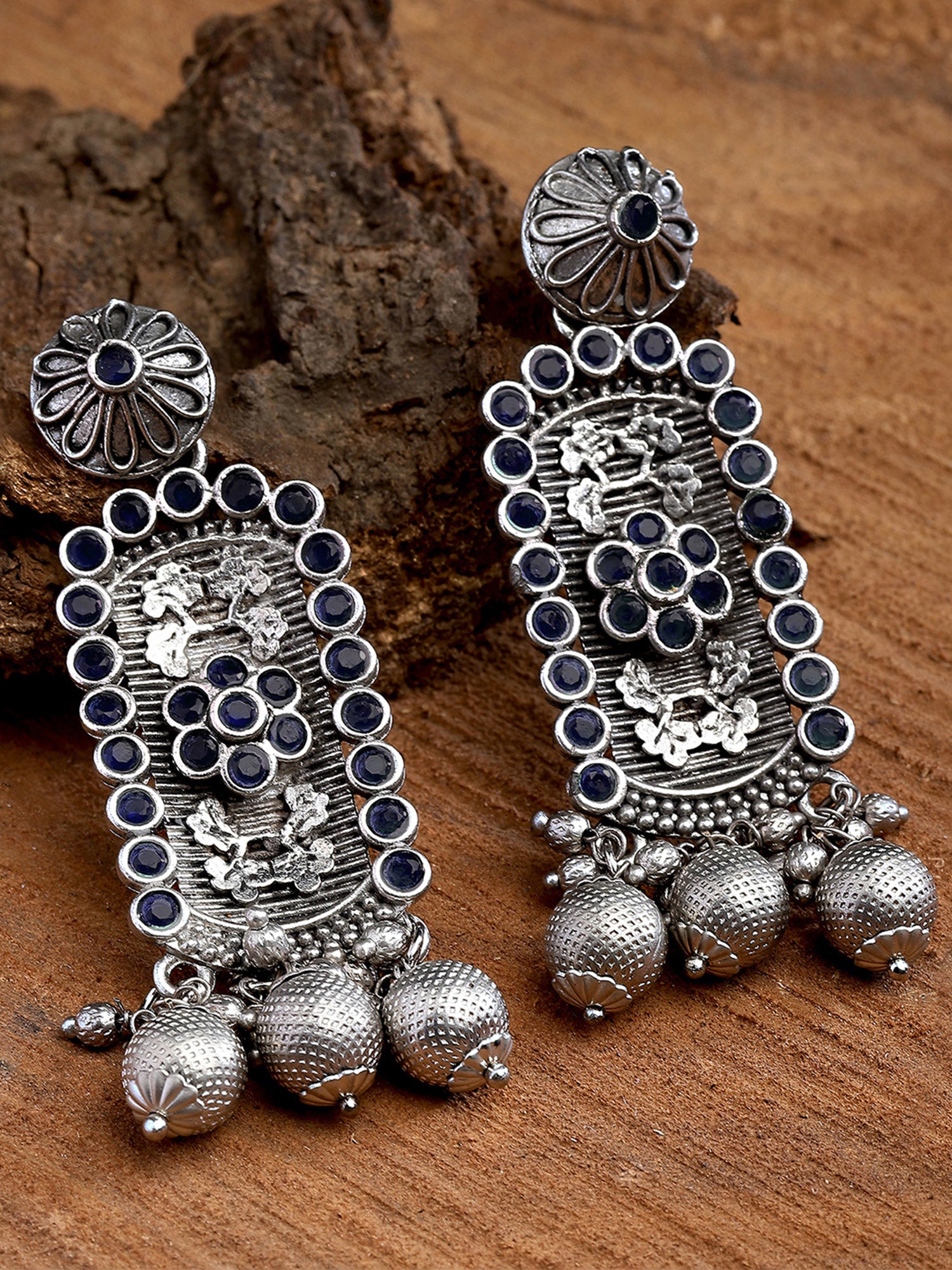 Karatcart Oxidised Silver Floral Blue Stone Drop Earring for Women