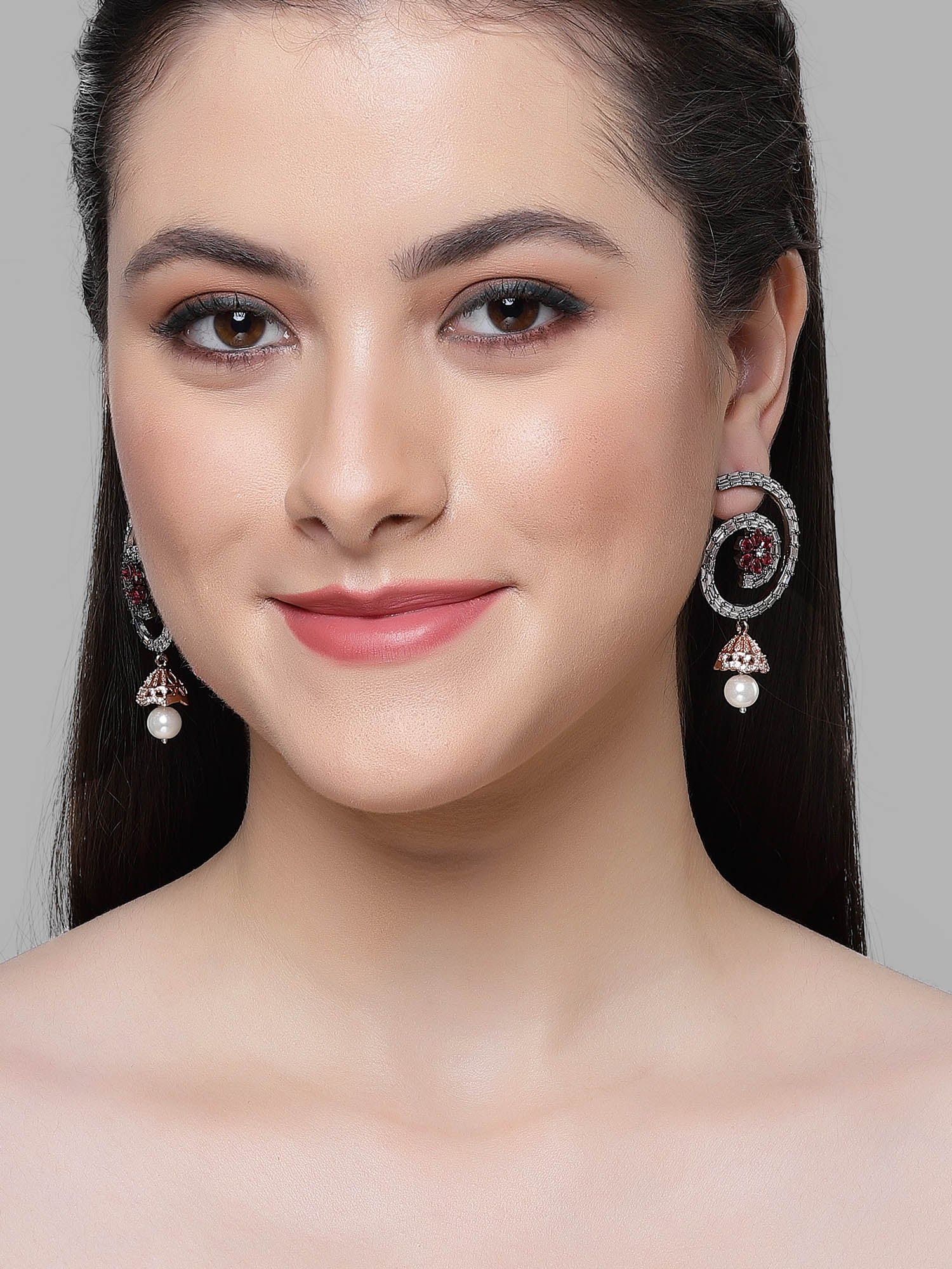 - This is a Pink Earrings by Brand Karatcart which has American Diamond stones.This is Black Silver Plated. We at KARATCART understand your desire to look the best on any day & we thrive in making any day an occasion. Every individual at Karatcart carries a passion for jewellery and it reflects in our beautiful designs as well as in our breathtaking craftsmanship. We create unique jewellery so you can make heads turn..