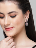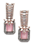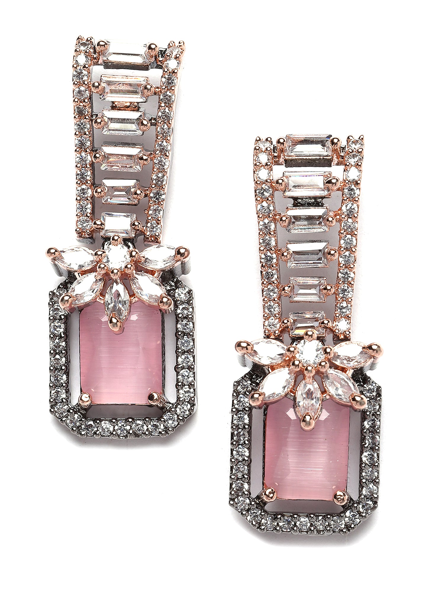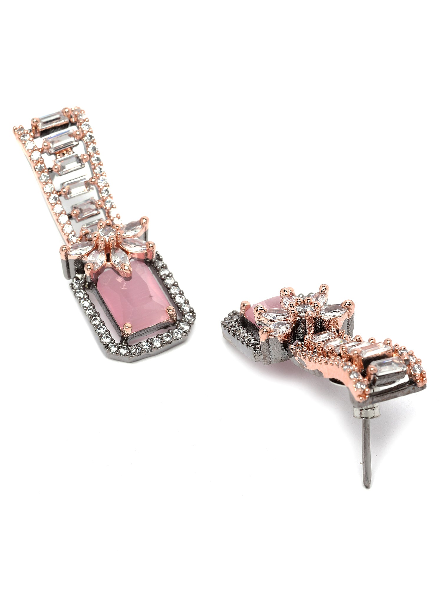 Karatcart Black Rose Gold Plated Pink Cubic Zirconia Drop Earrings for Women