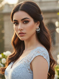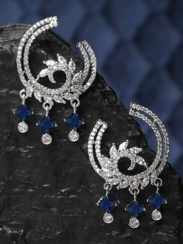 Karatcart Silver Plated Blue Cubic Zirconia Drop Earrings for Women
