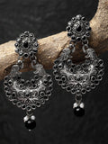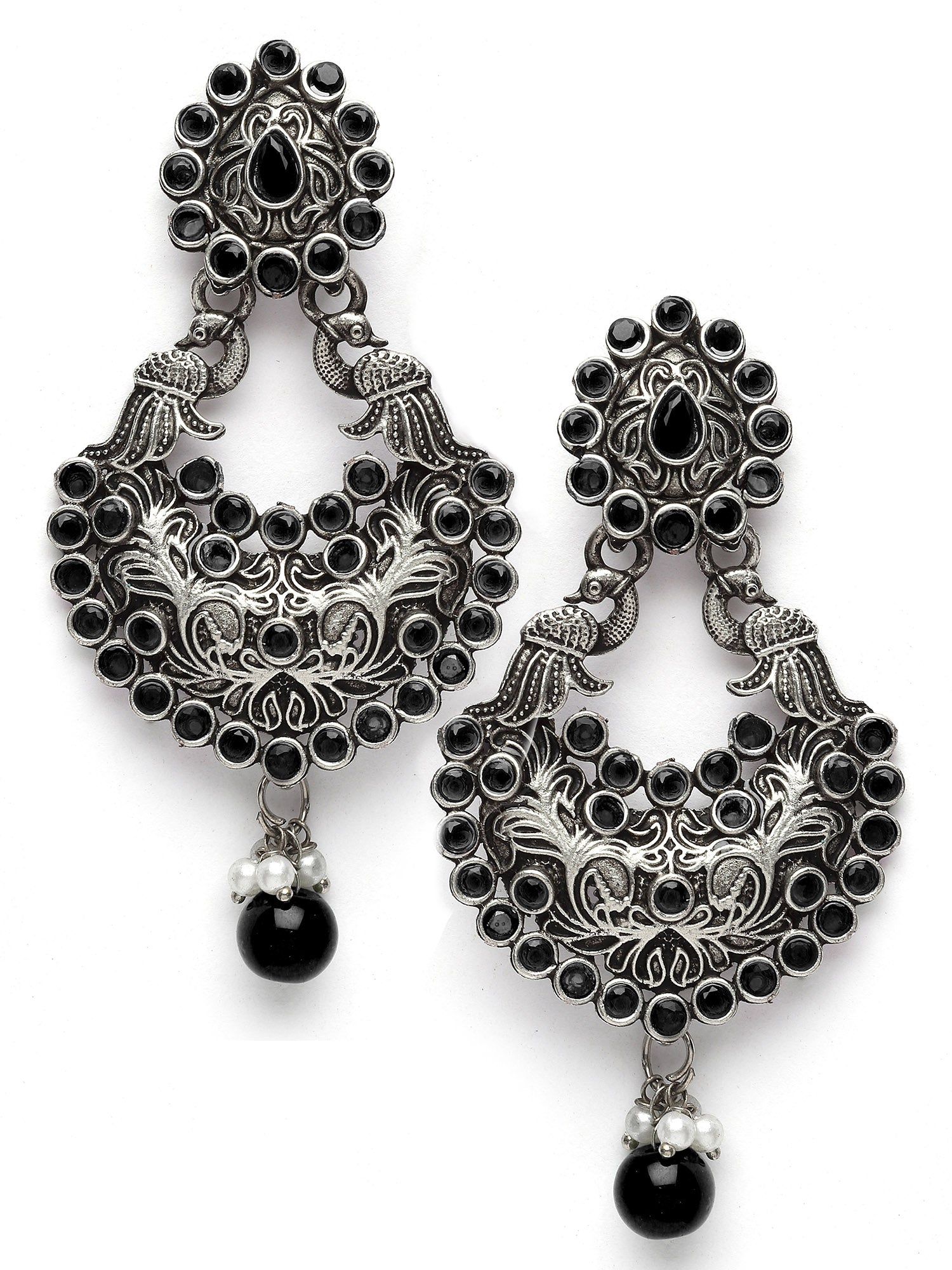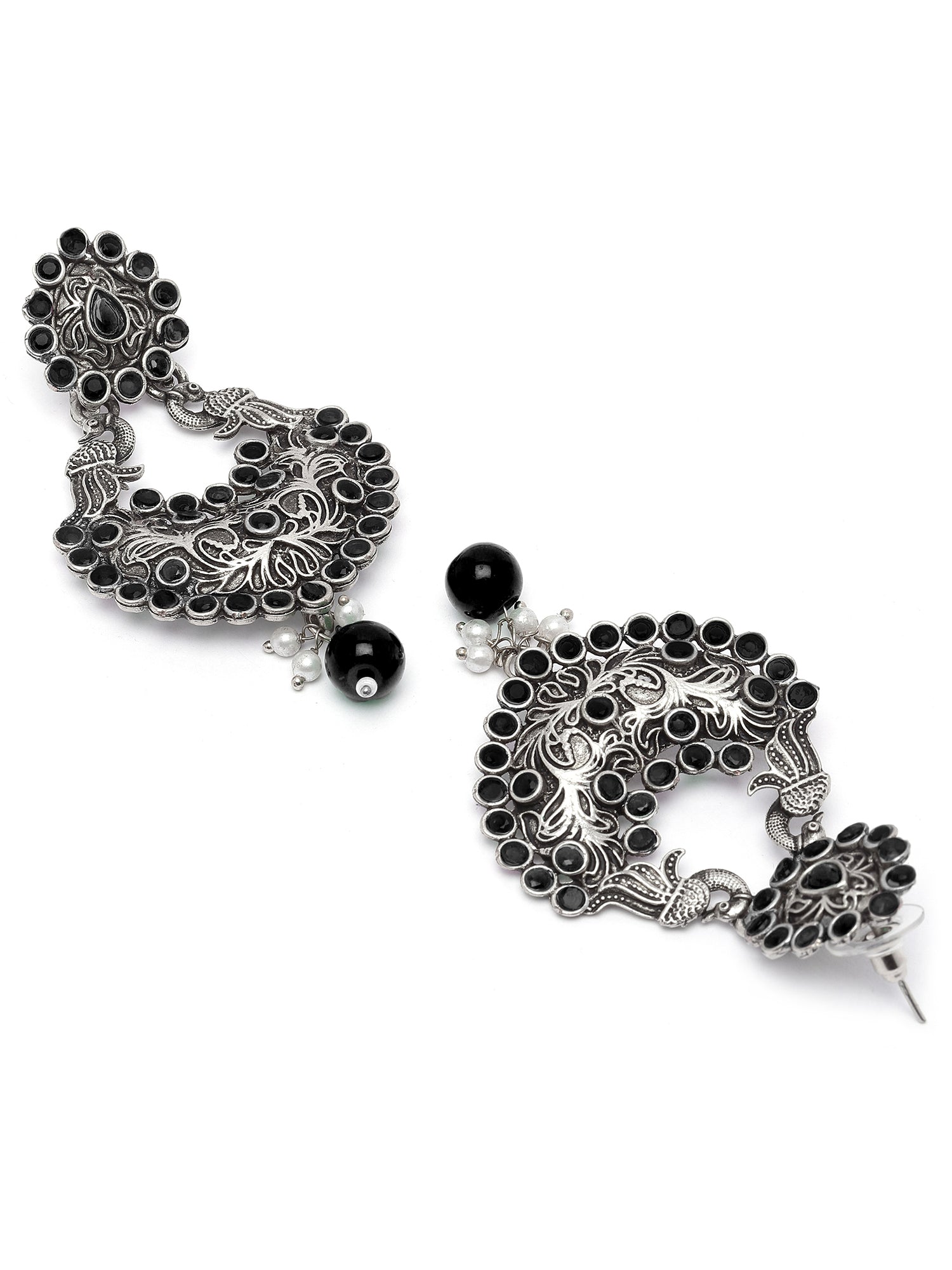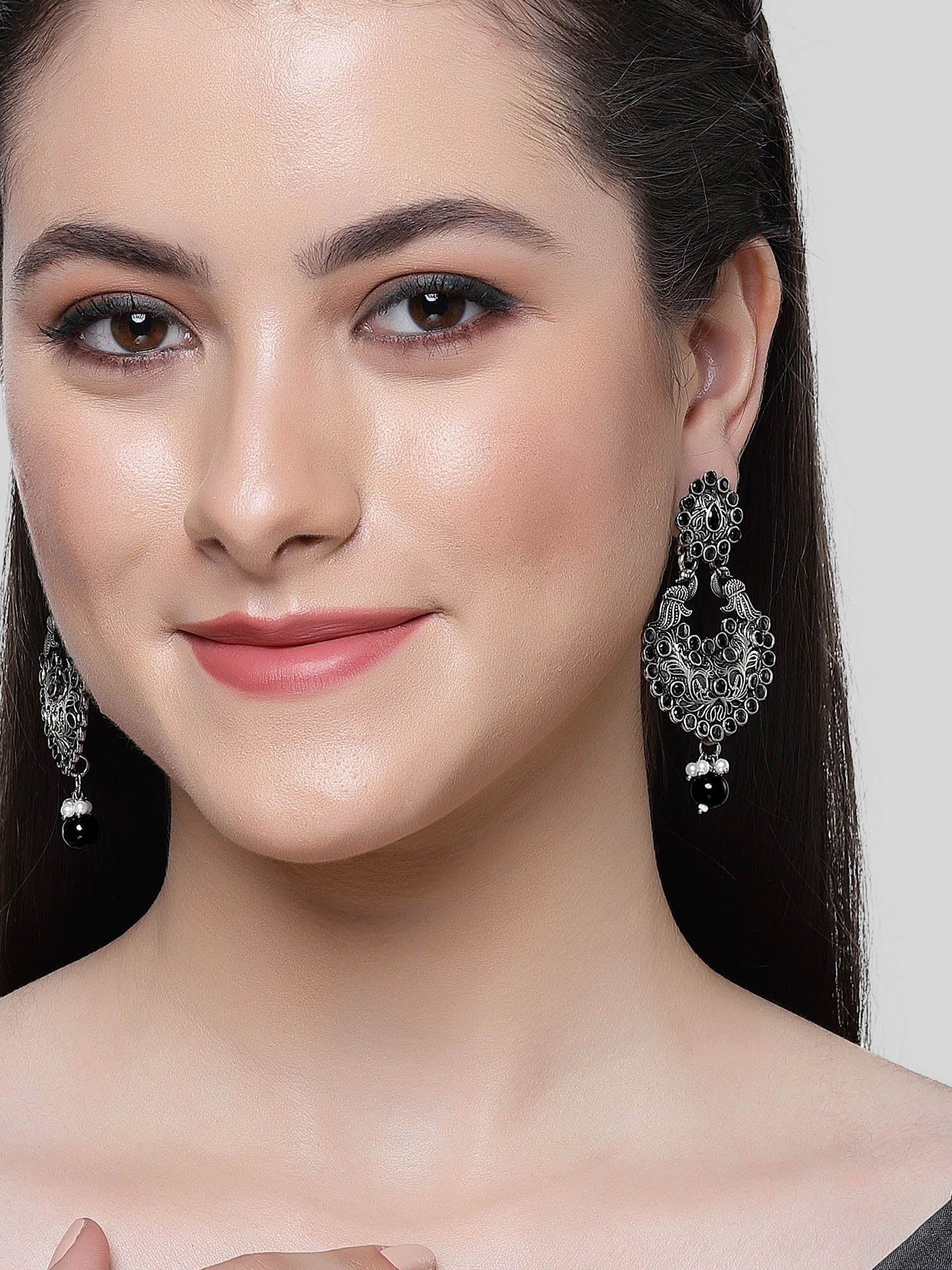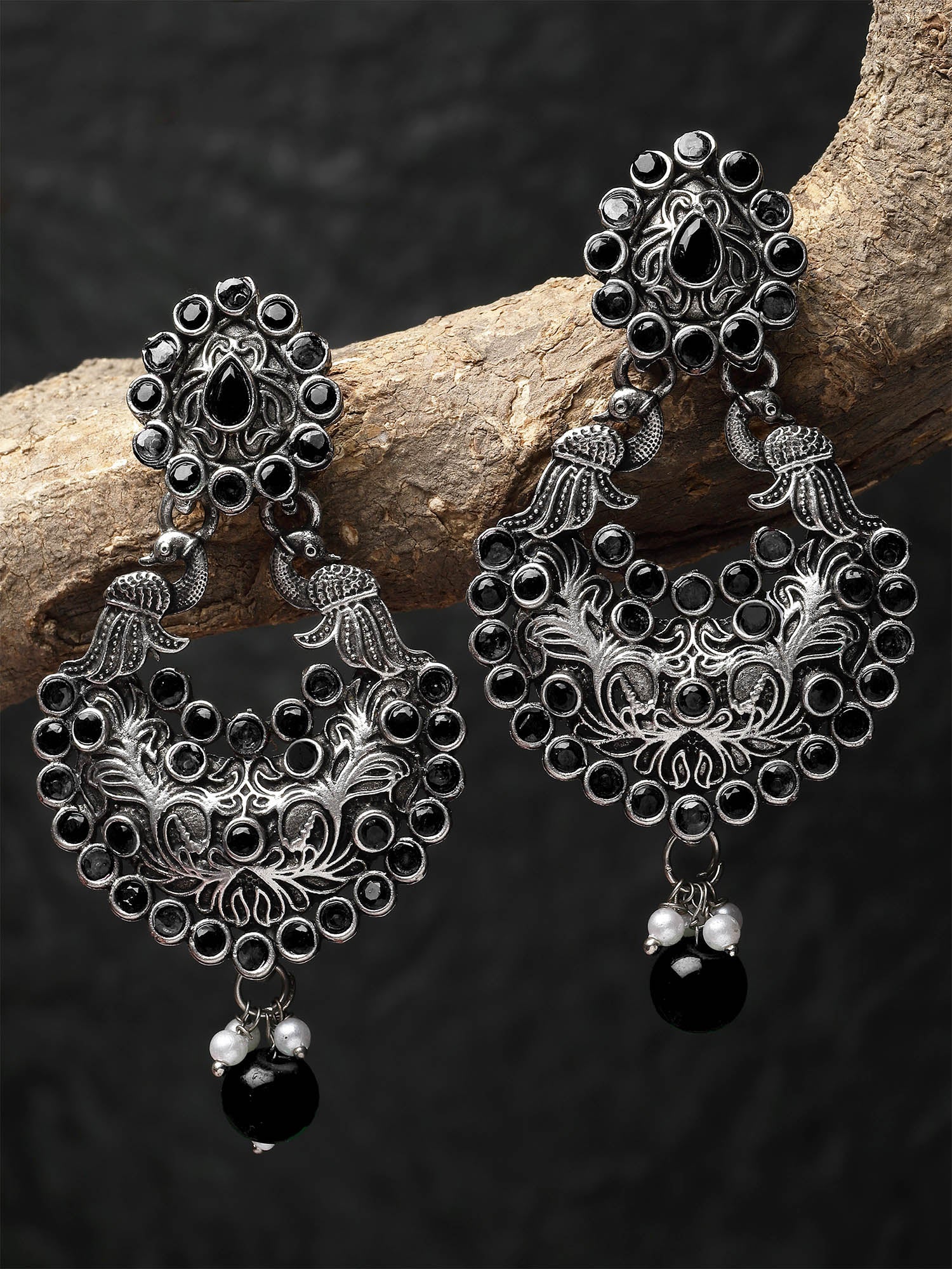 Karatcart Oxidised Silver Drop Shape Peacock Black Stone Dangler Earring for Women