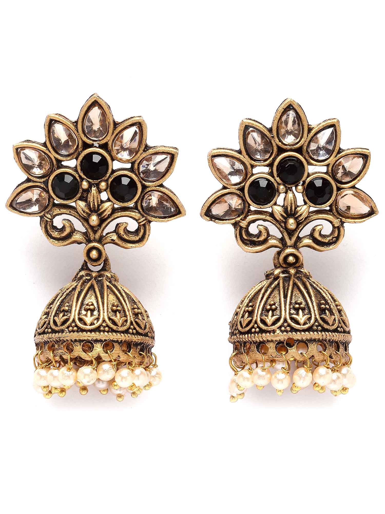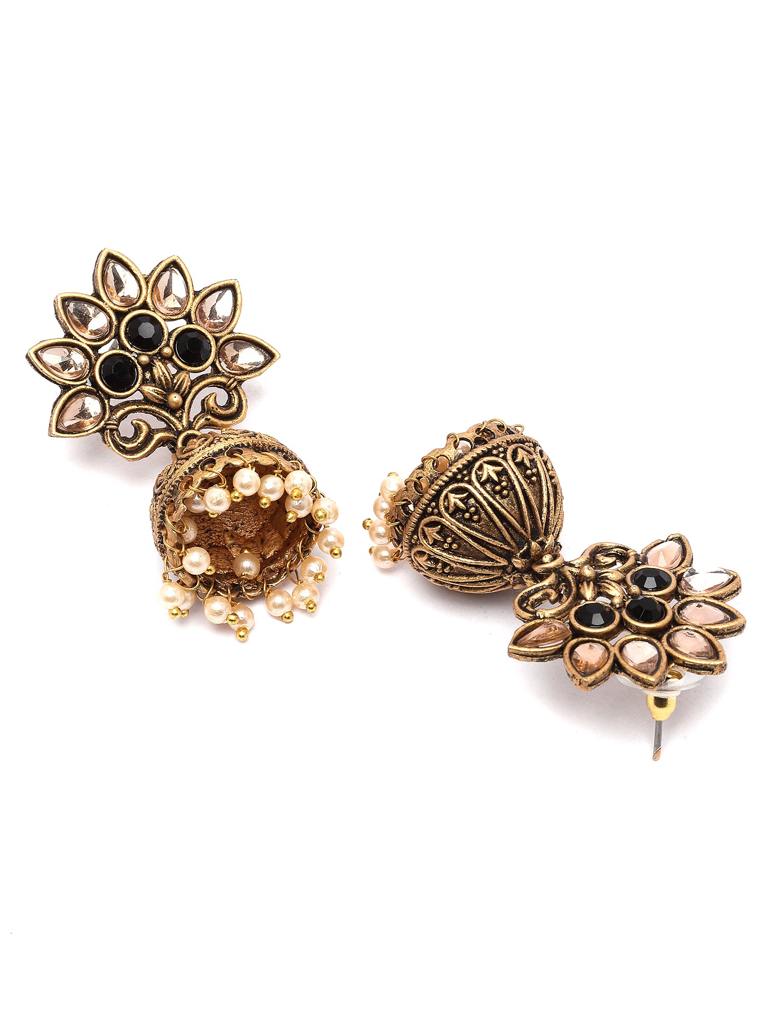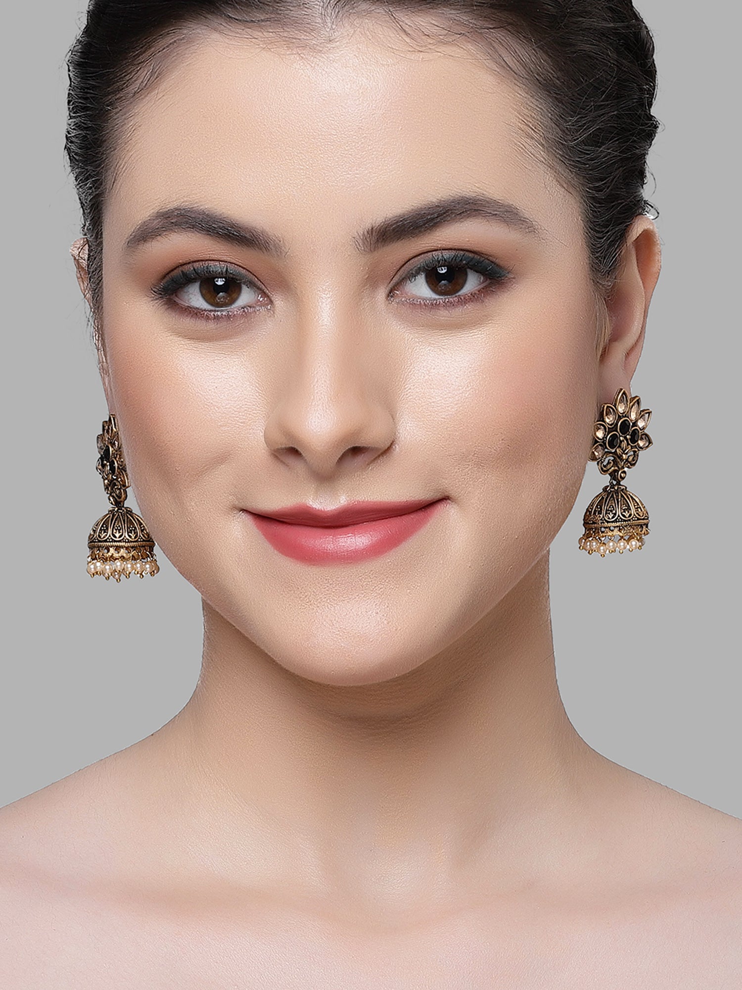 Karatcart Antique Gold Plated Black Kundan Jhumki Earrings for Women
